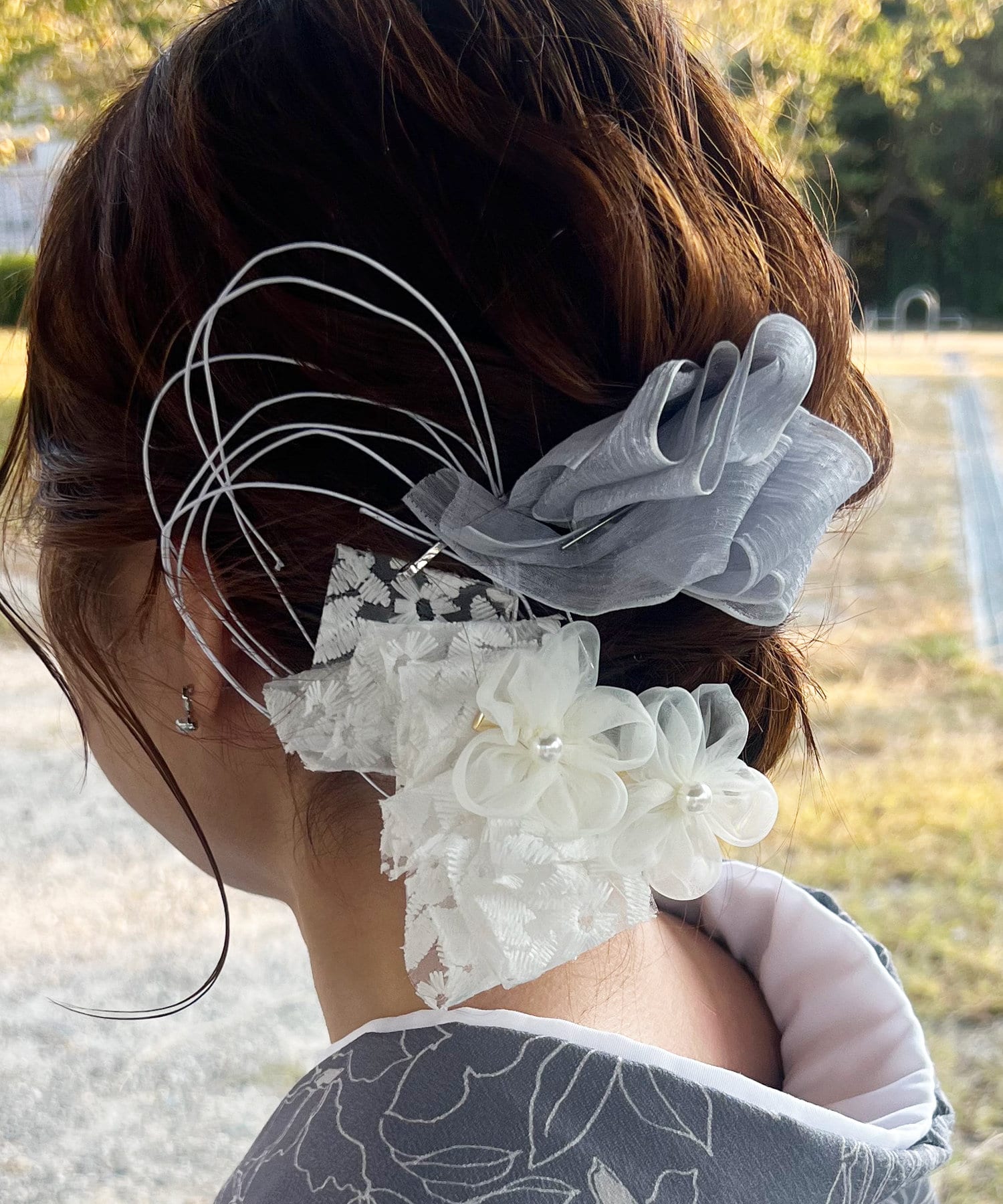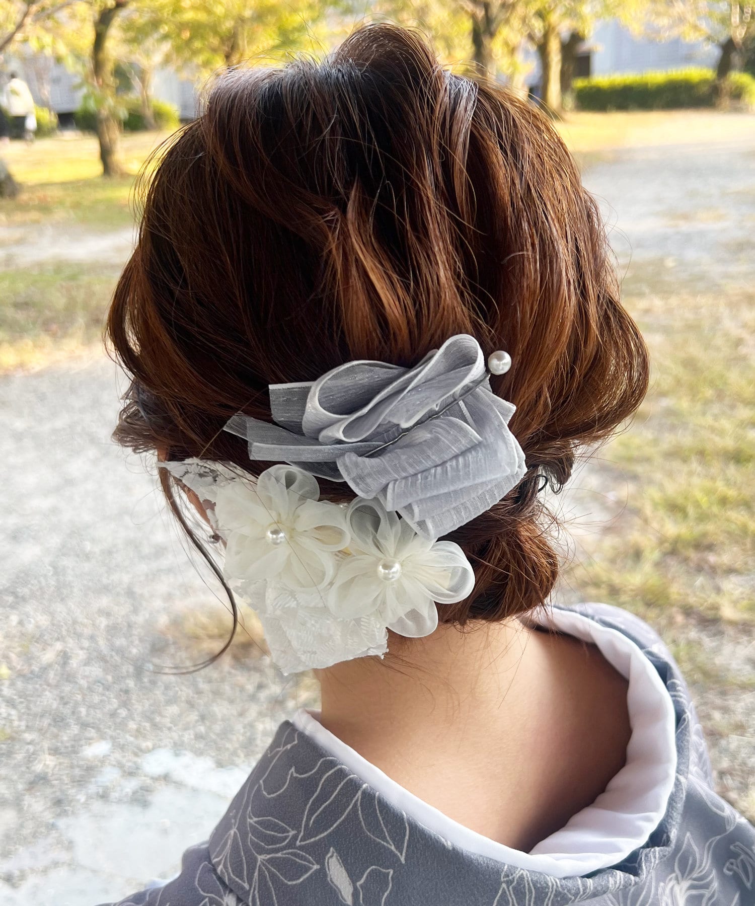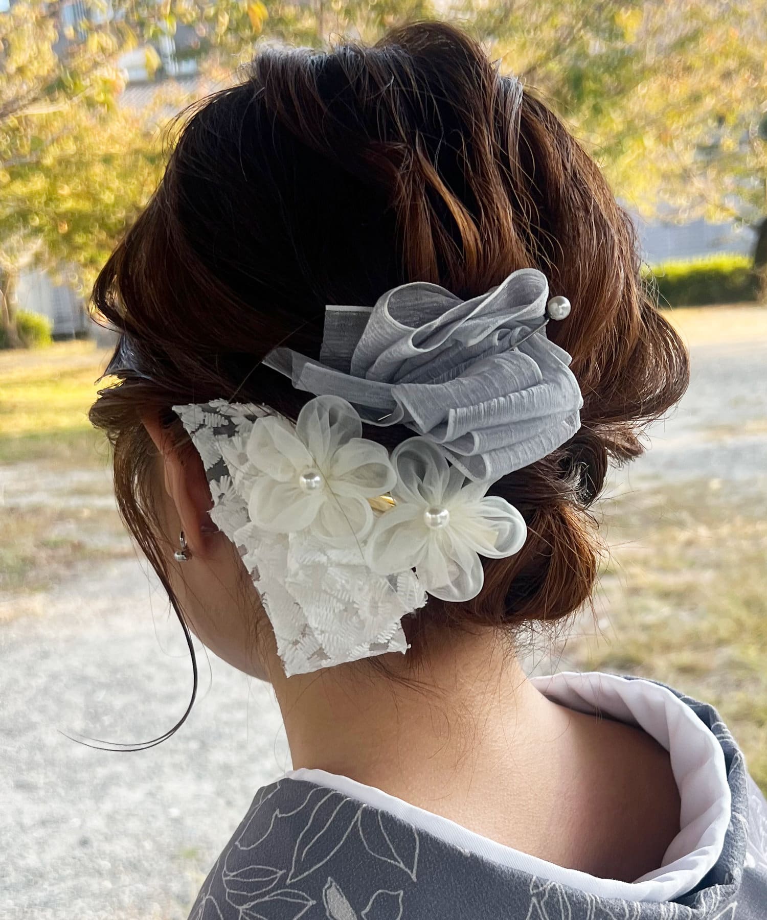 シルバーとパールの組み合わせが髪型をワンランクグレードアップしてくれます。