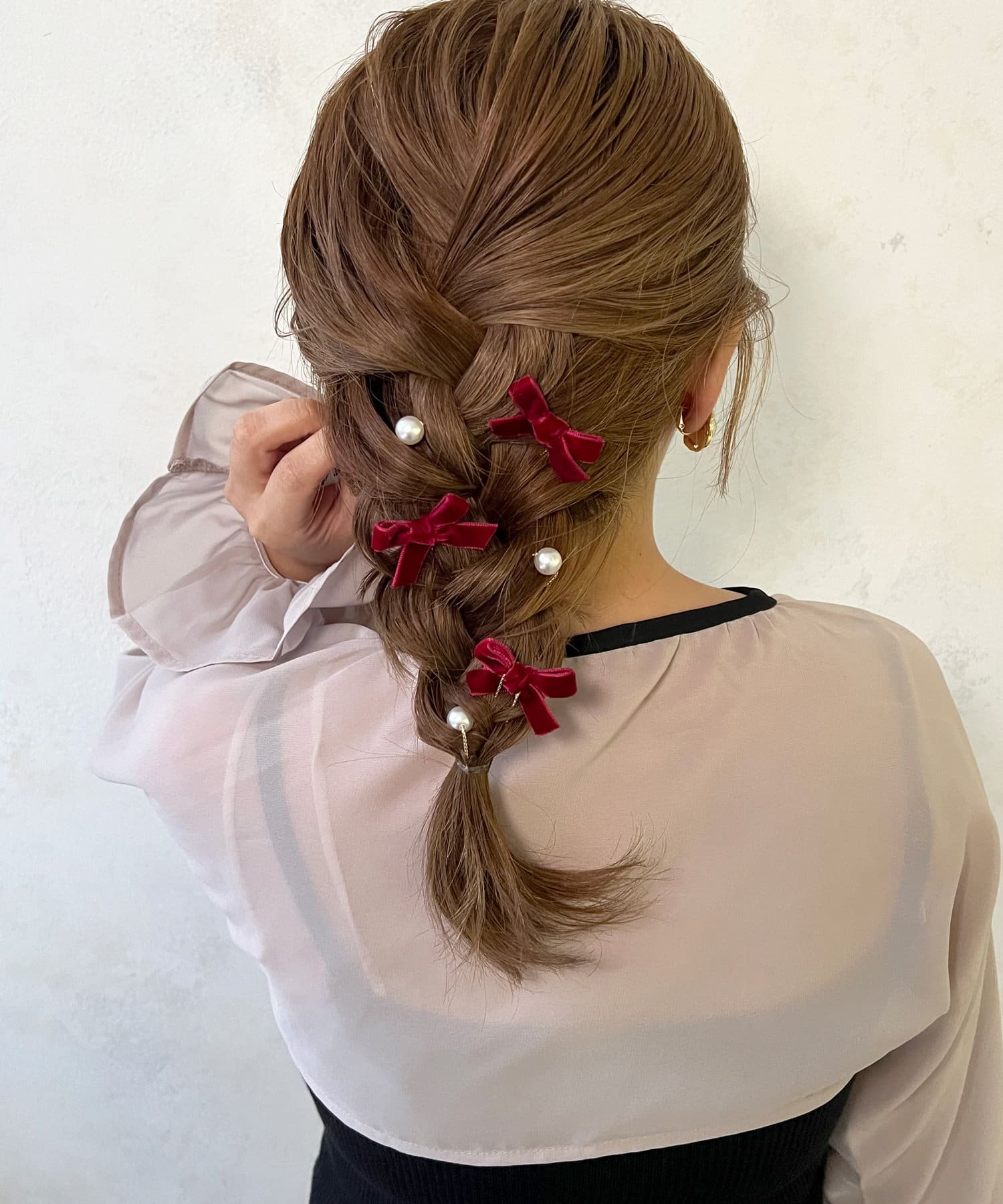 【オケージョン】パールベロアリボンUピンSET(6P)