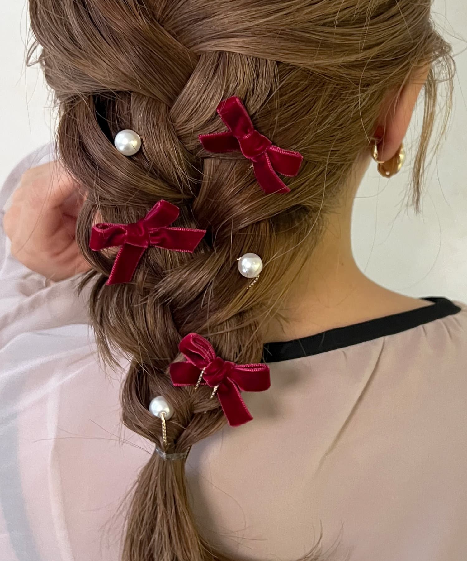 TOP > Lattice > レディース > ヘアアクセサリー > ヘアピン > 【オケージョン】パールベロアリボンUピンSET(6P)