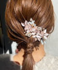 上品なピンクのフラワーモチーフが華やかな後ろ姿を演出するコーム。