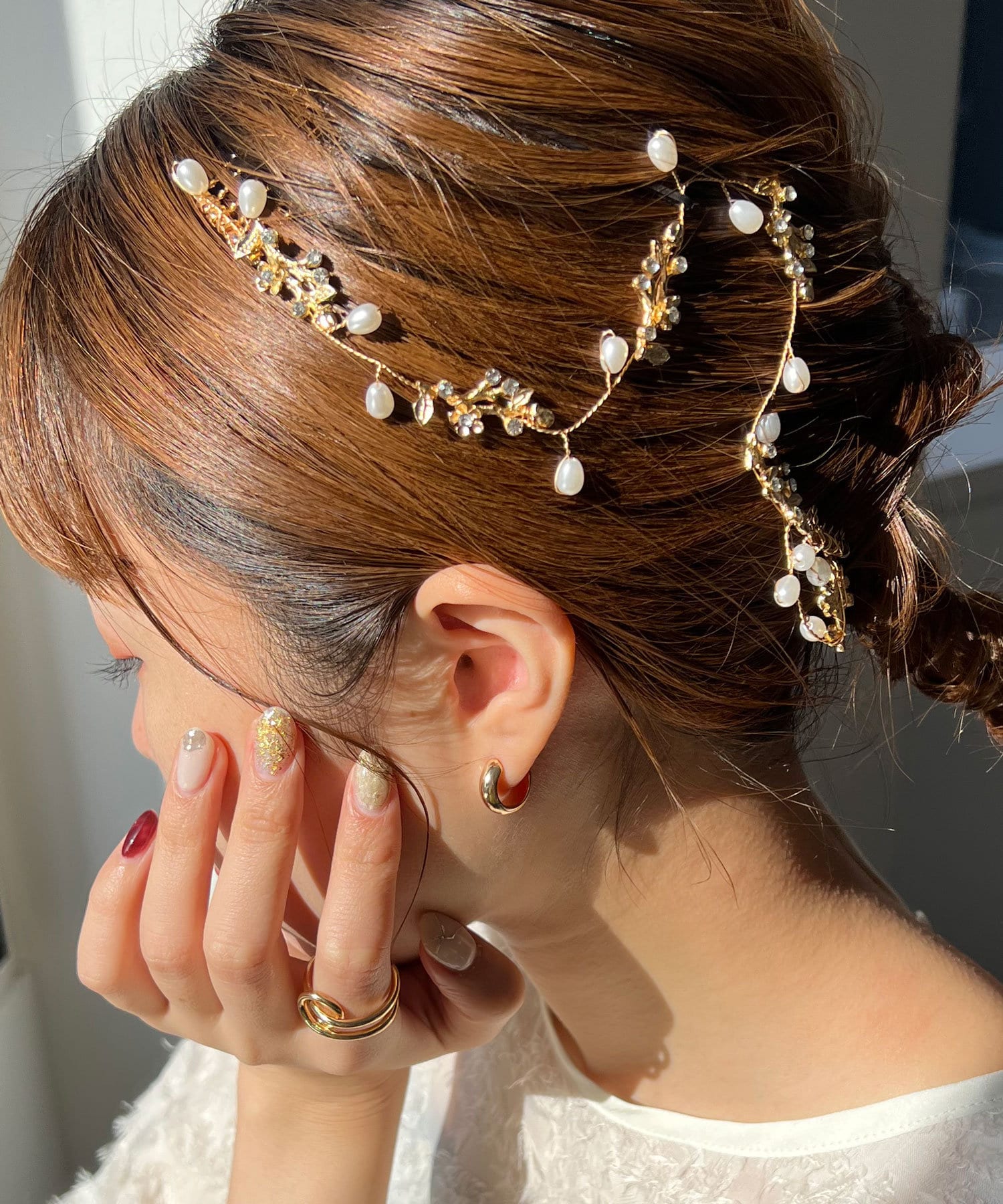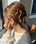 髪に沿わせて付け留めるだけで簡単に華やかヘアに仕上がります。