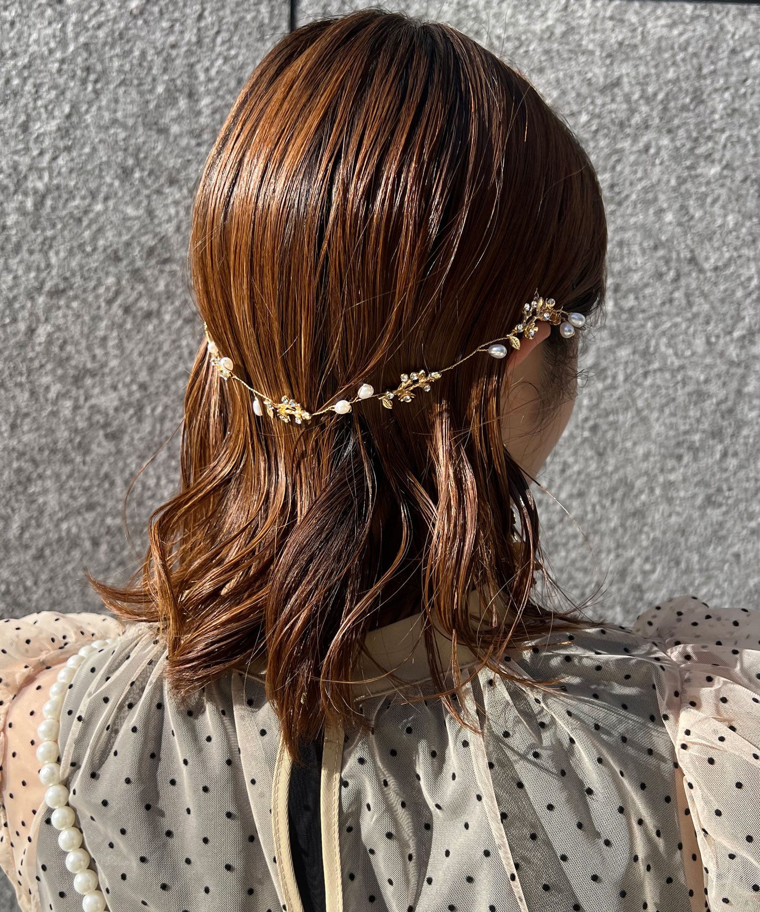 シンプルかつ洗練されたデザインが可憐な印象を与えるヘッドアクセ。