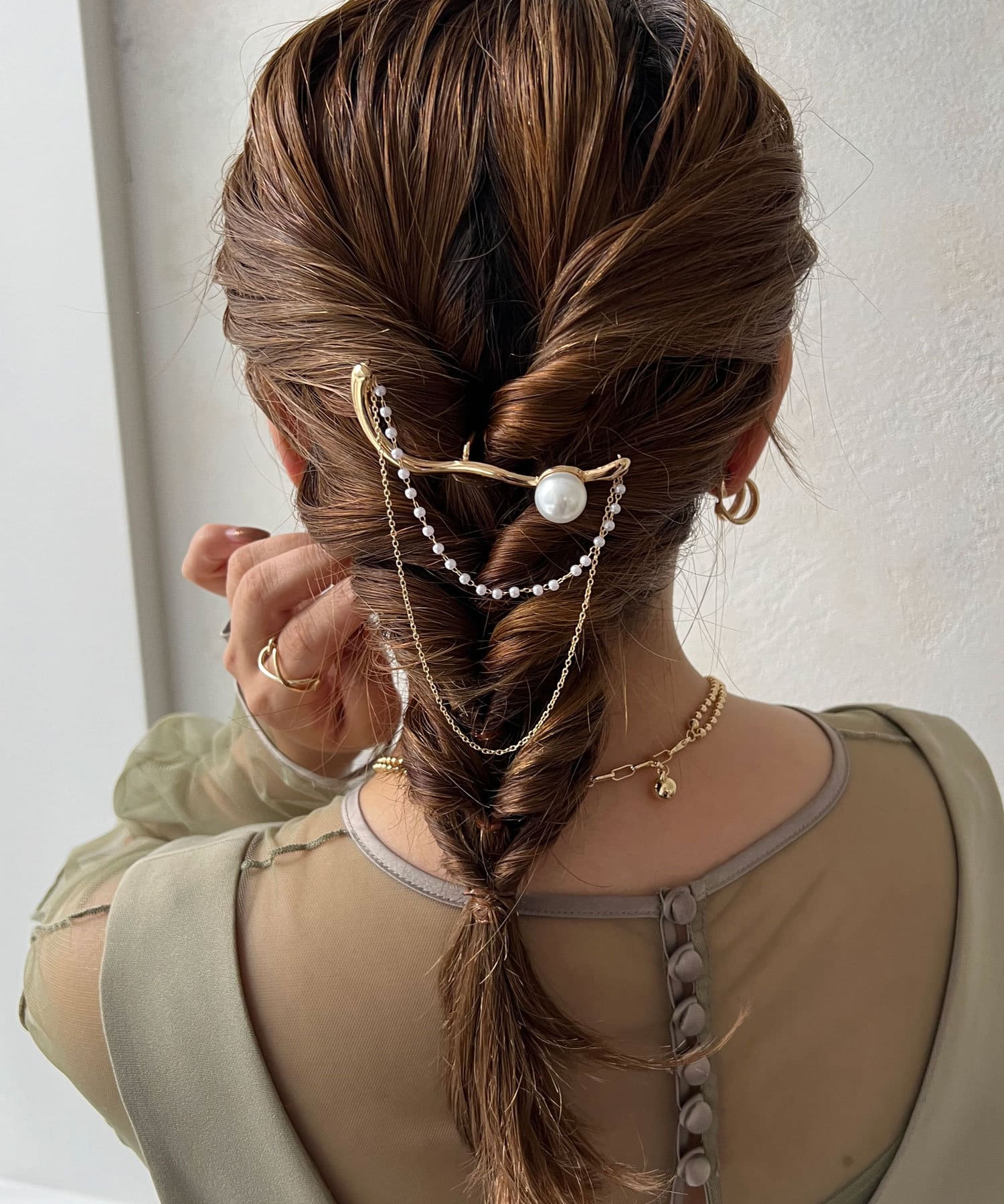 ポニーテールや編みおろしに差し込むだけで簡単にドレスに合う上品な雰囲気に♪
