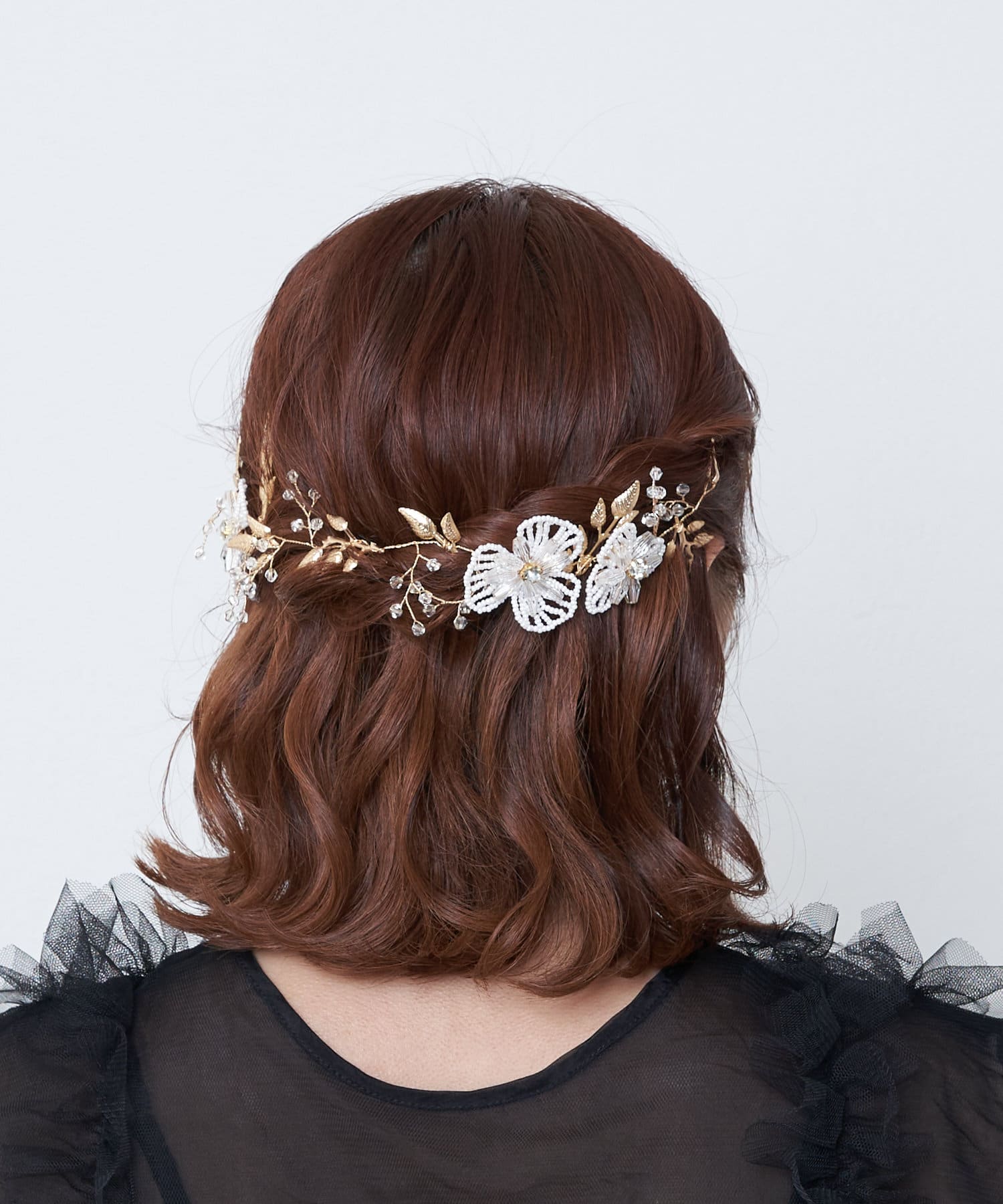 髪に沿わせて留めるだけで簡単に華やかヘアに仕上がります。