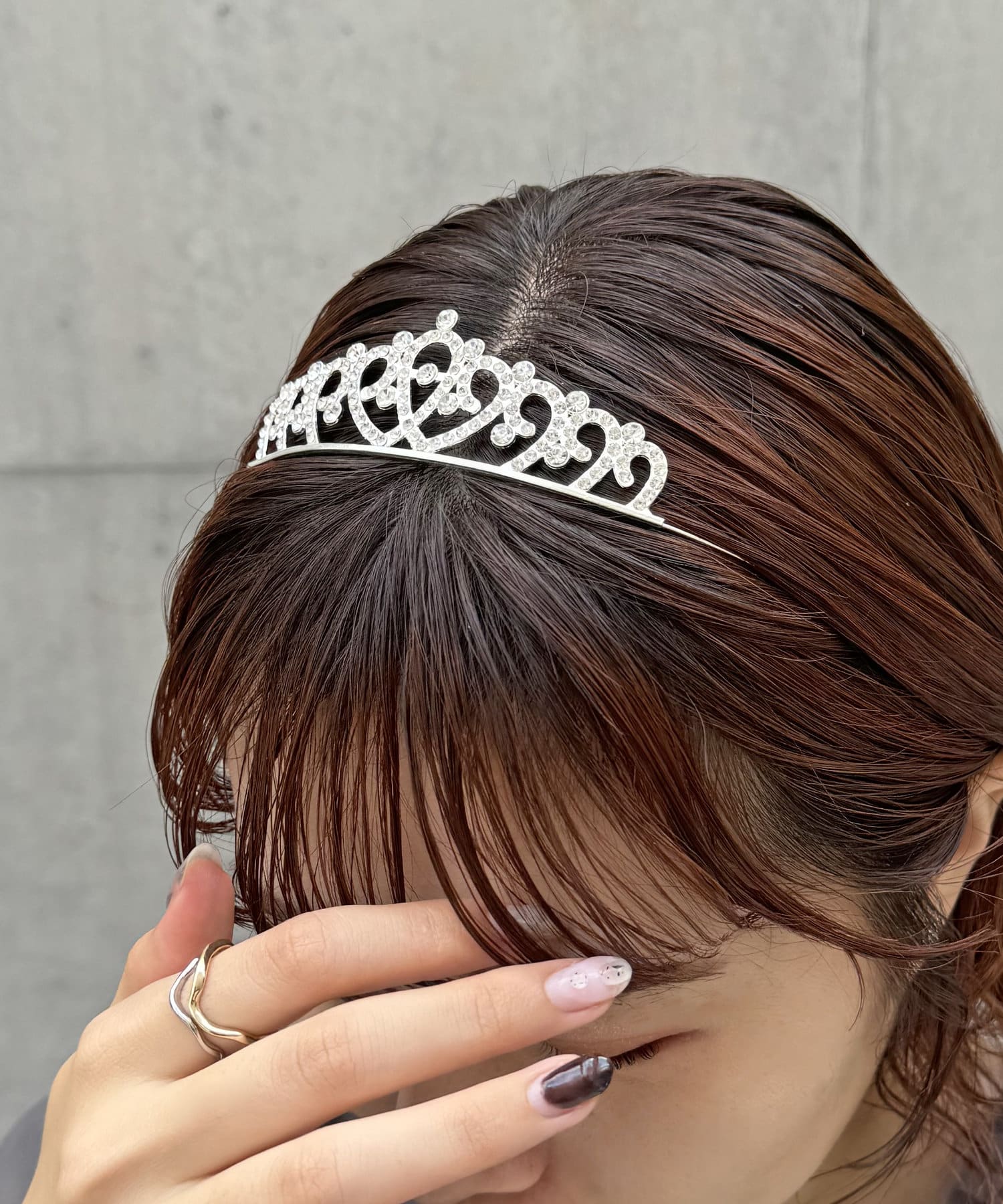 ビジューがキラキラと輝くカチューシャタイプのティアラです。