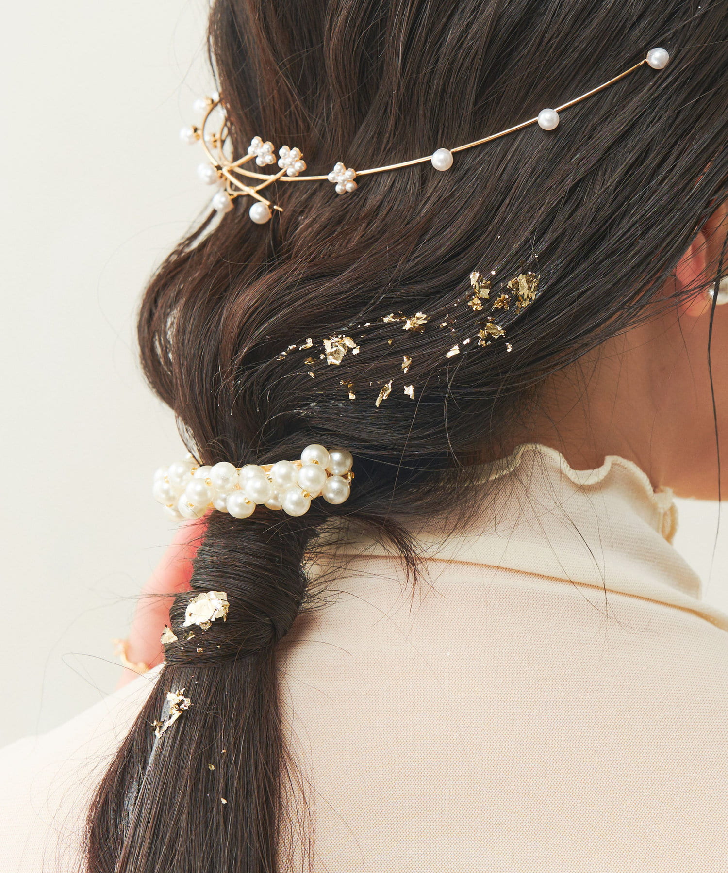 ヘアスタイルを豪華に彩るホイルフレークです。