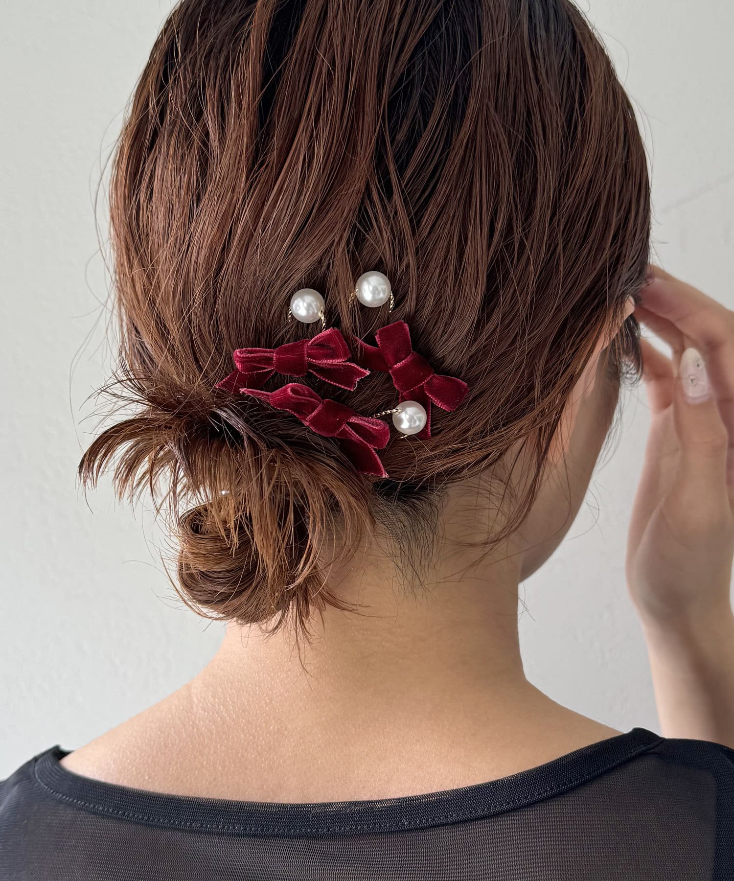 トレンドのリボン×ベロアの新作ヘアピンセット