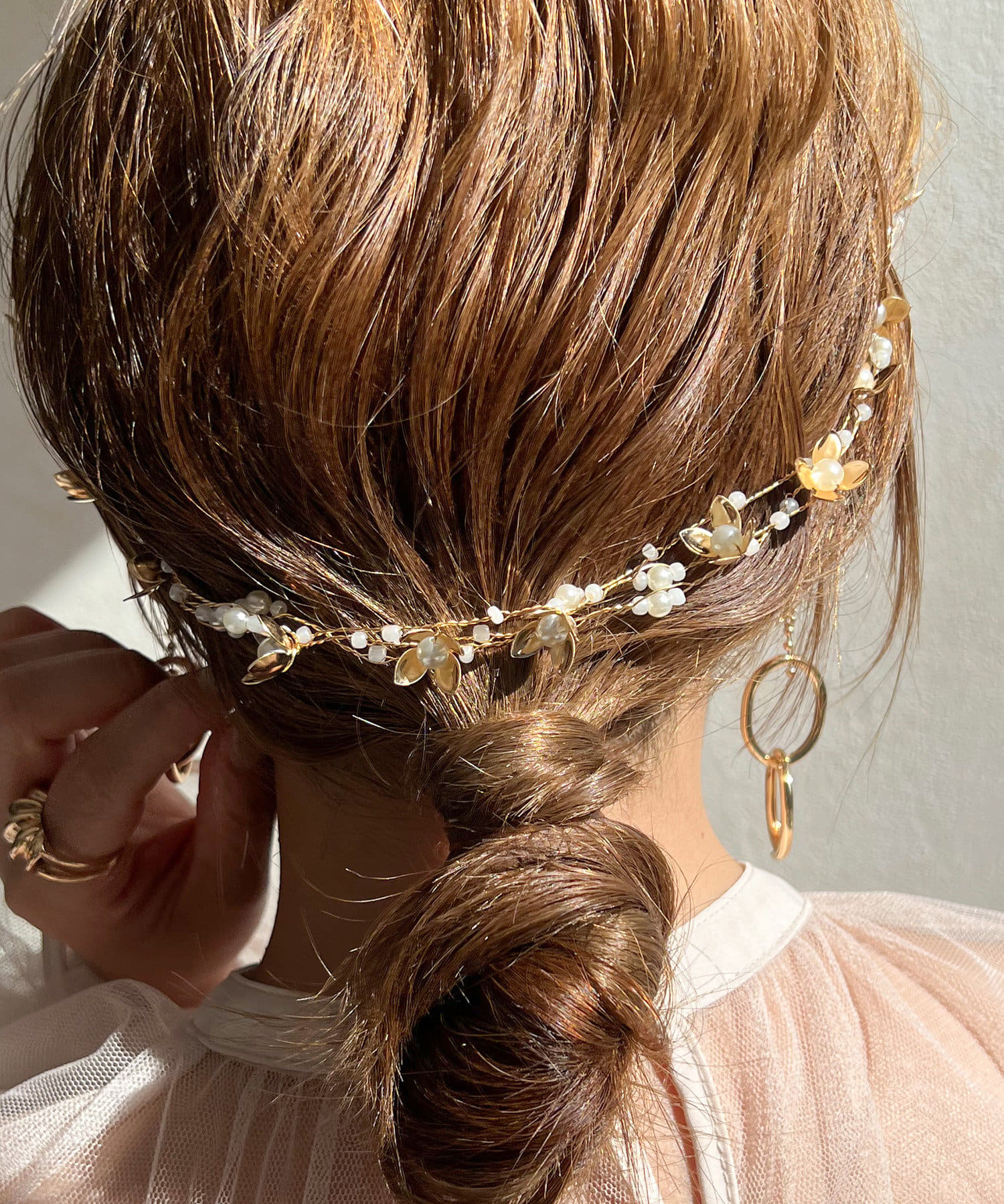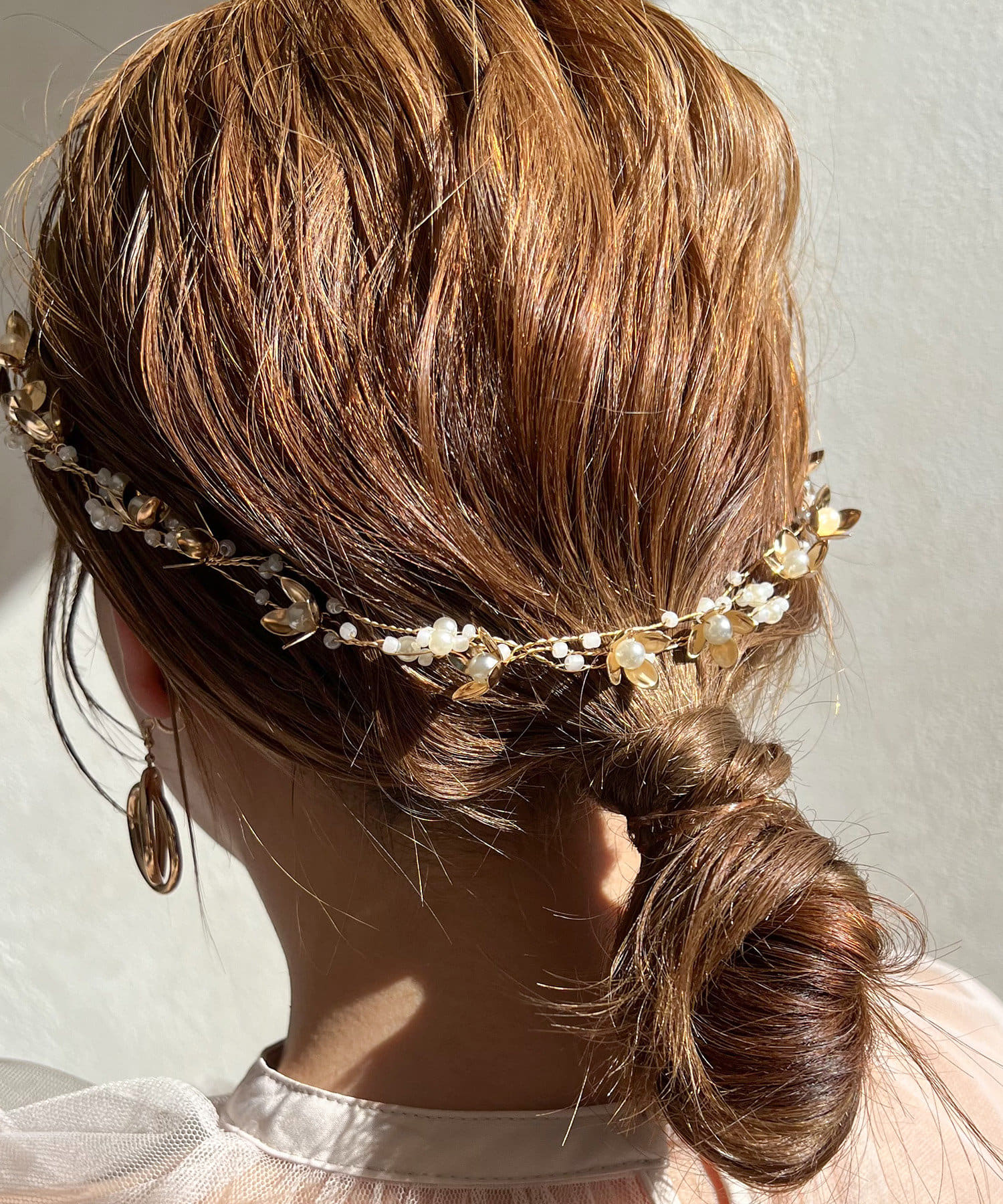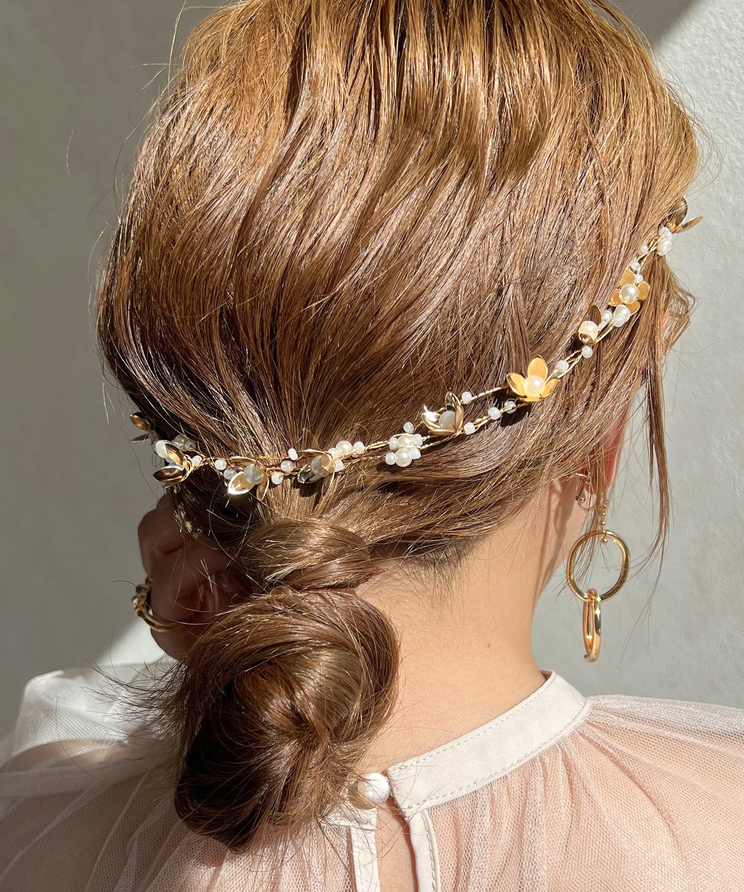 髪に沿わせて付け留めるだけで簡単に華やかヘアに仕上がります。