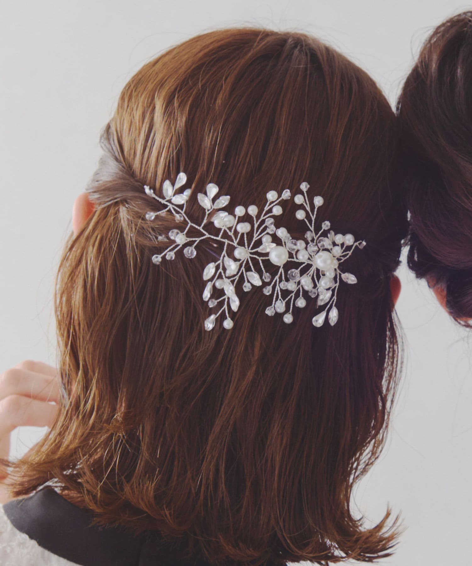 髪に沿わせて留めるだけで簡単に華やかヘアに仕上がります。