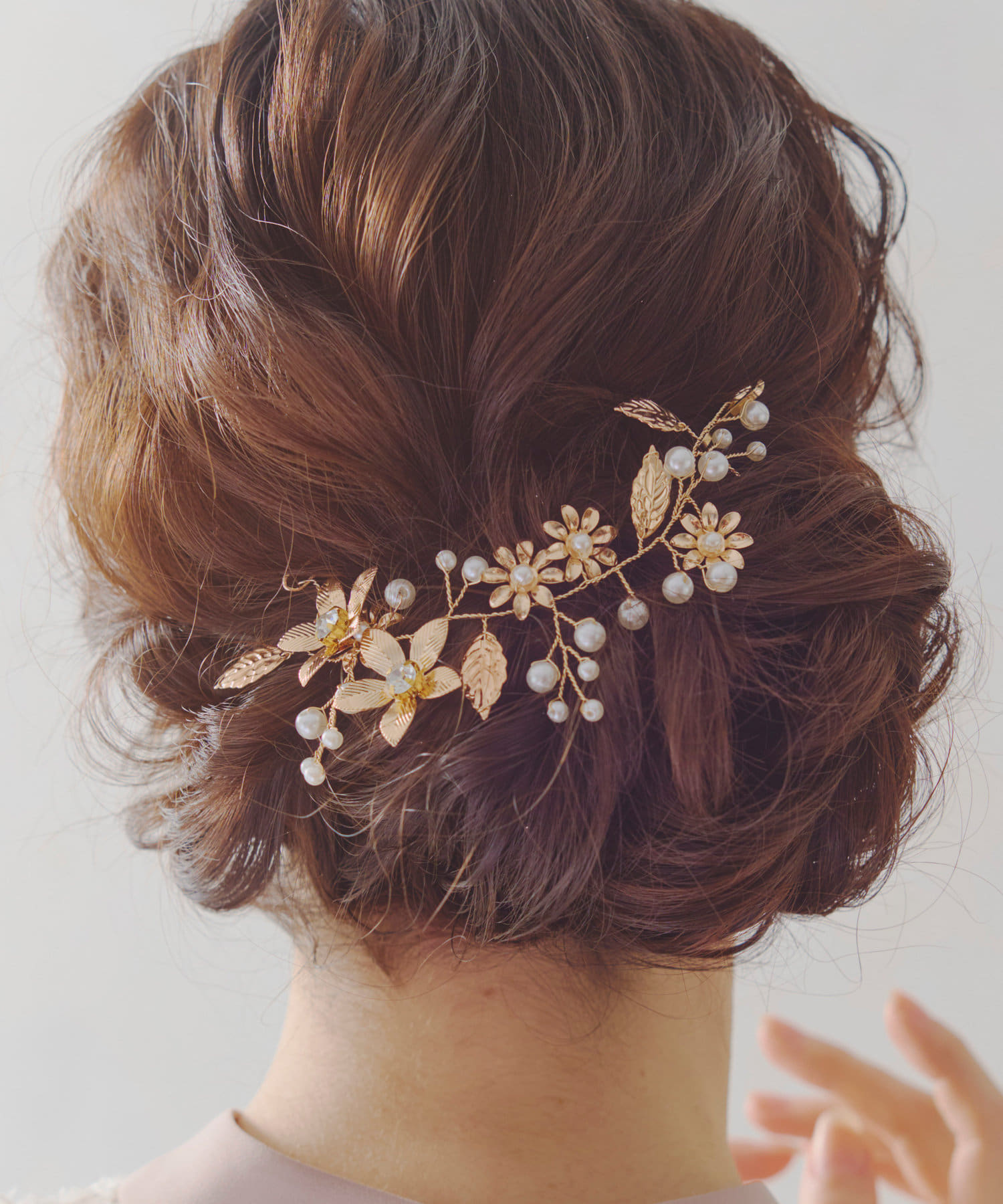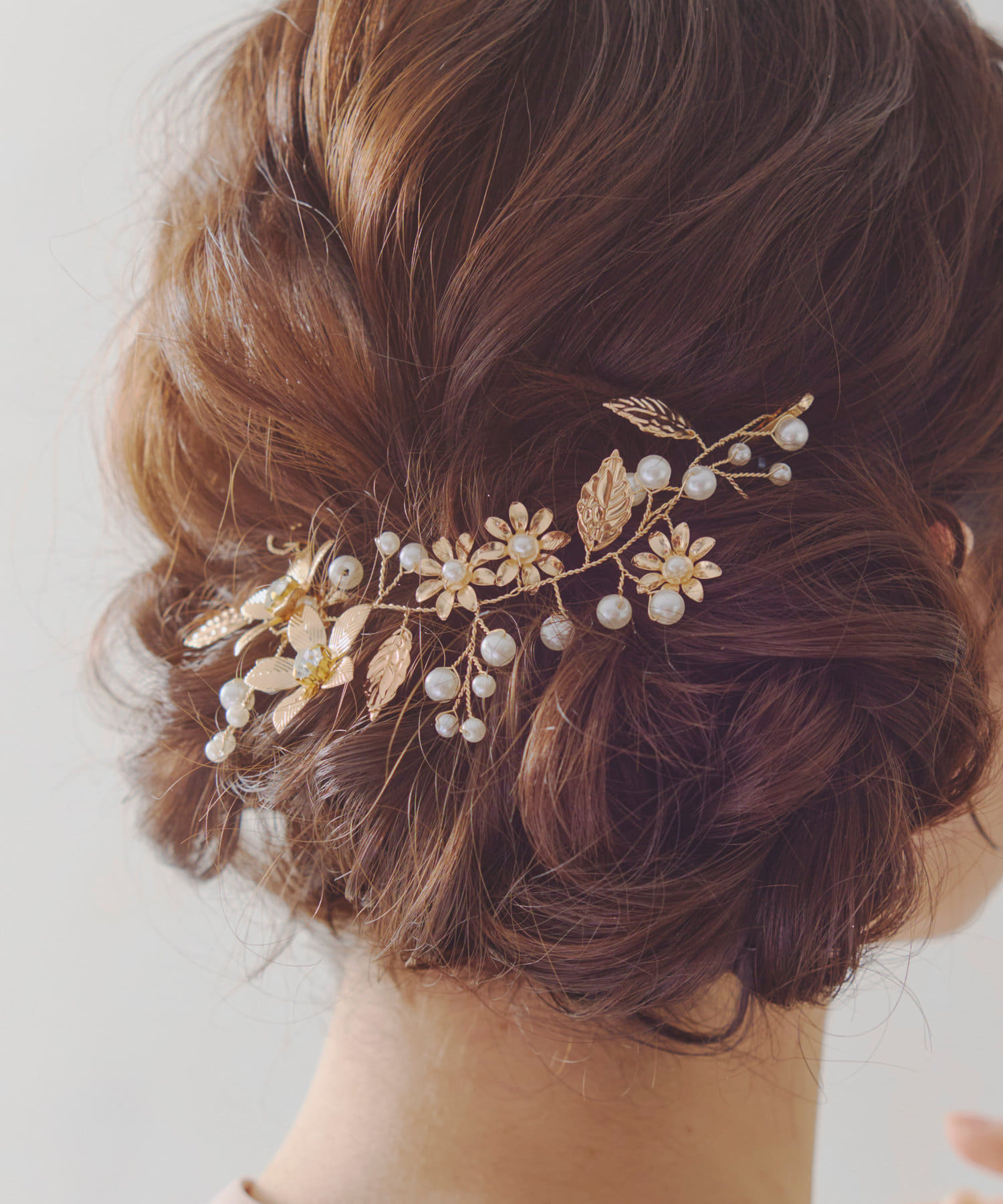髪に沿わせて留めるだけで簡単に華やかヘアに仕上がります。