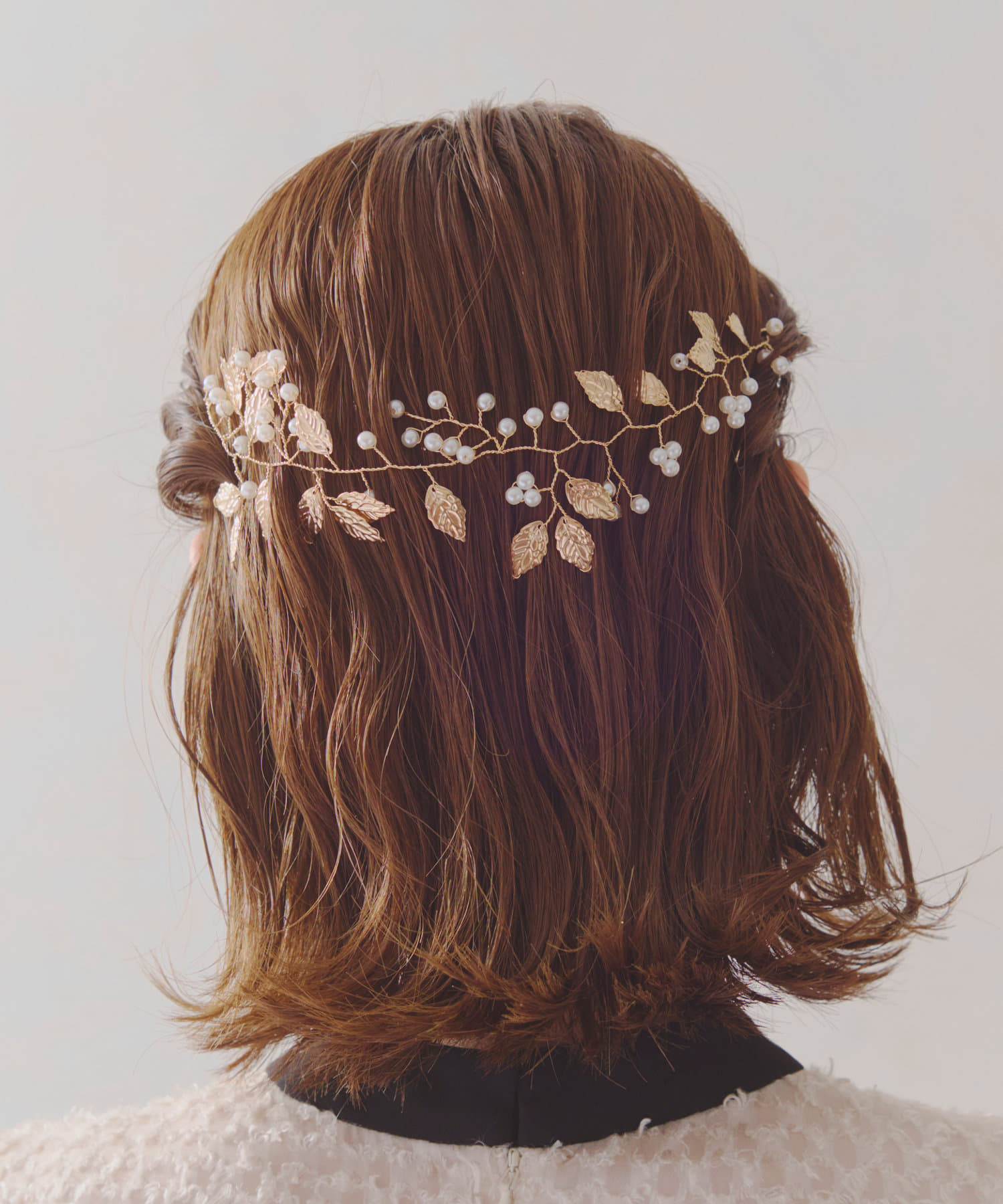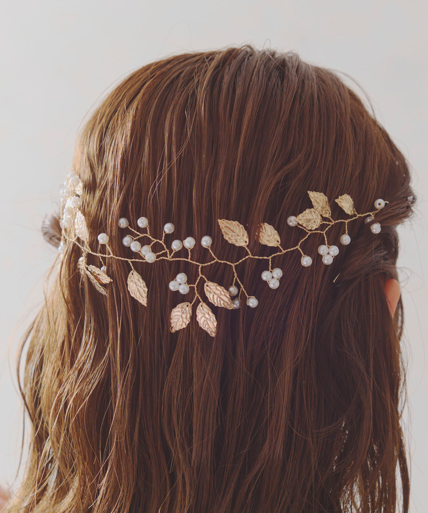 高級感のあるリーフモチーフがポイントのヘッドアクセ。
