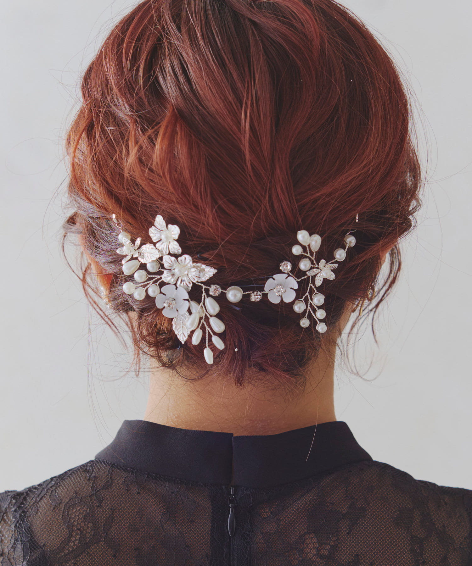 髪に沿わせて付け留めるだけで簡単に華やかヘアに仕上がります。