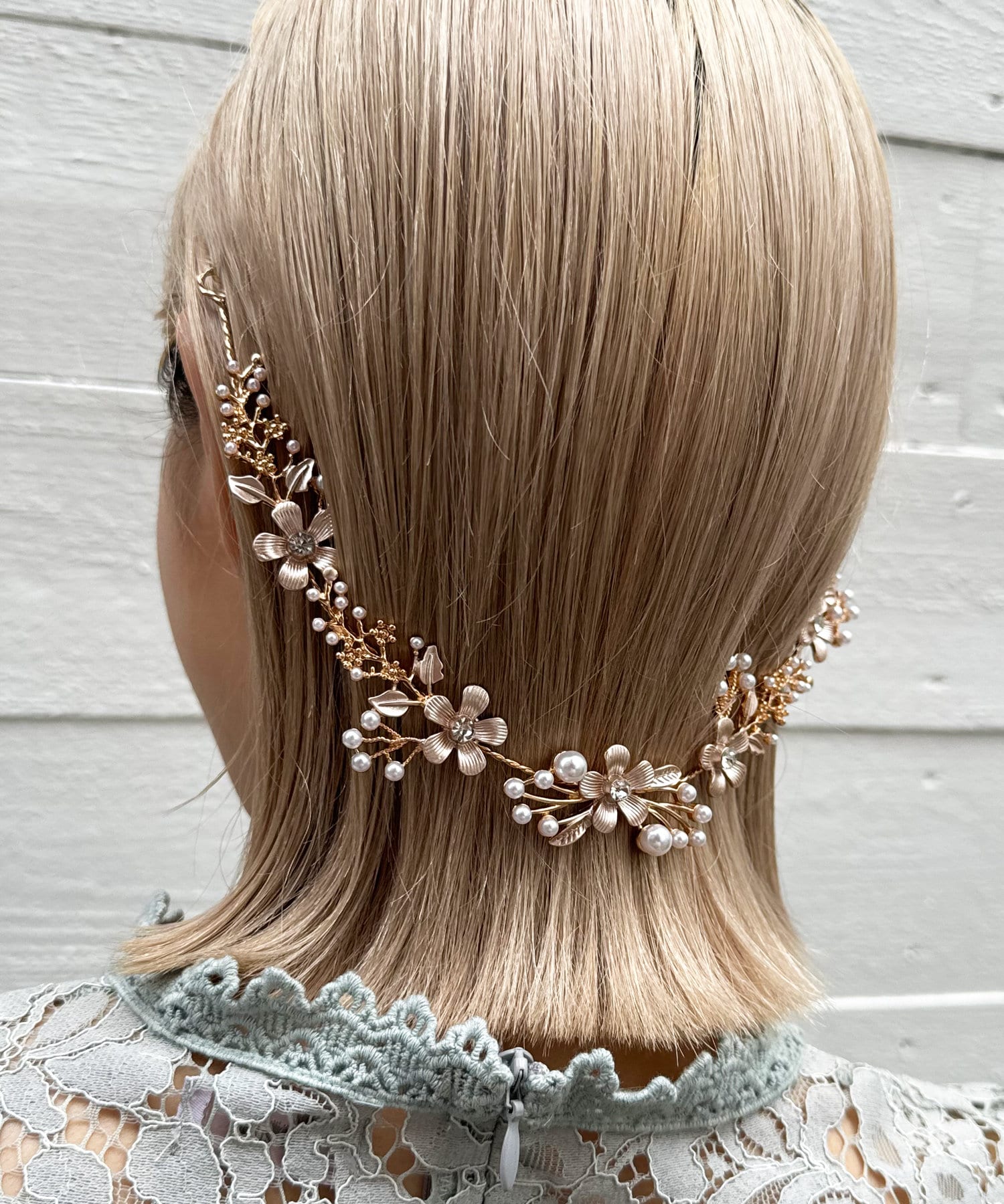 髪に沿わせて留めるだけで簡単に華やかヘアに仕上がります。
