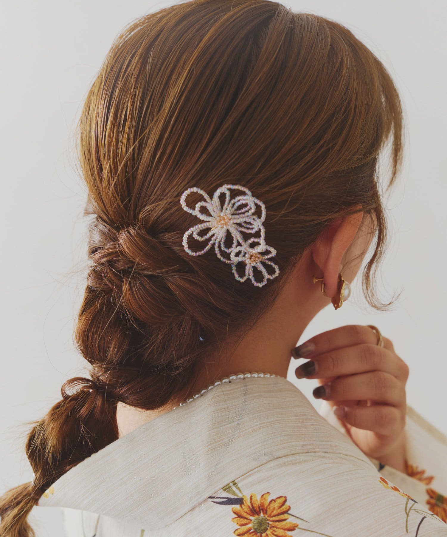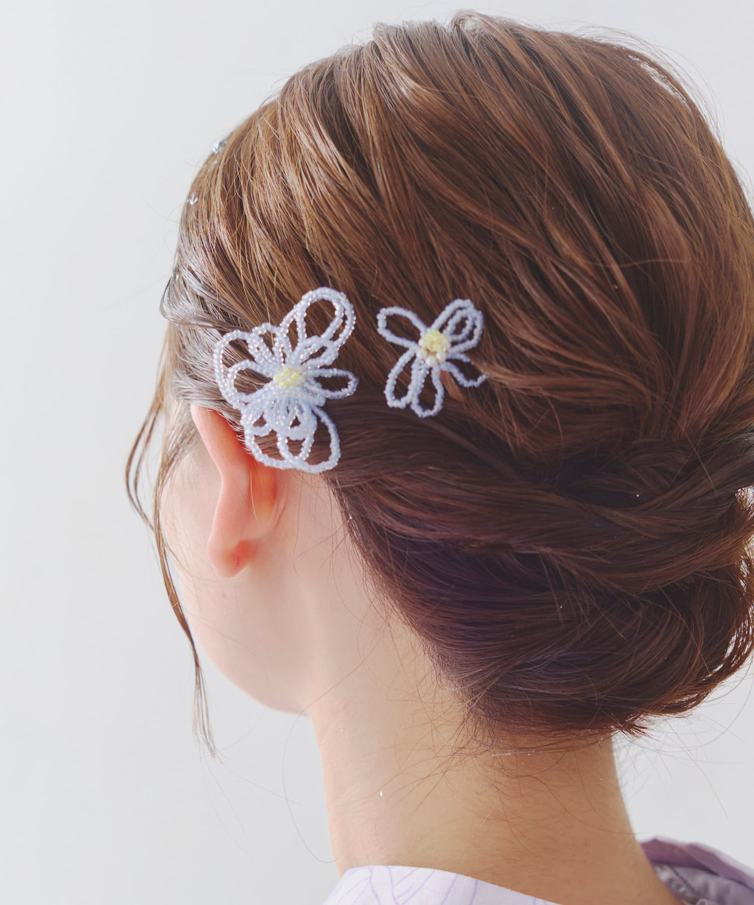 つけるだけでおしゃれなお花ビーズヘアピン。