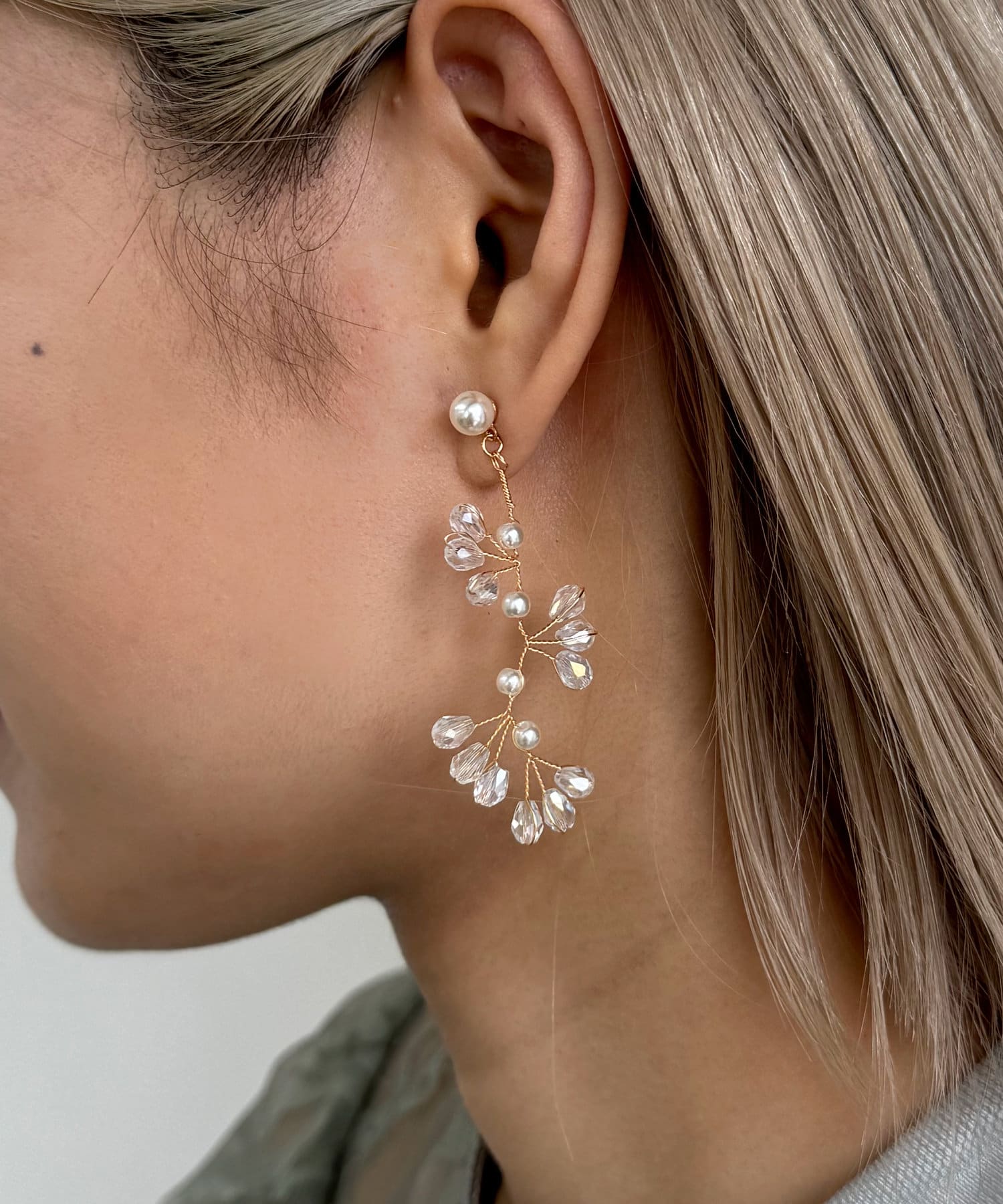 顔回りに華やかな印象を与えてくれる高見えピアス。