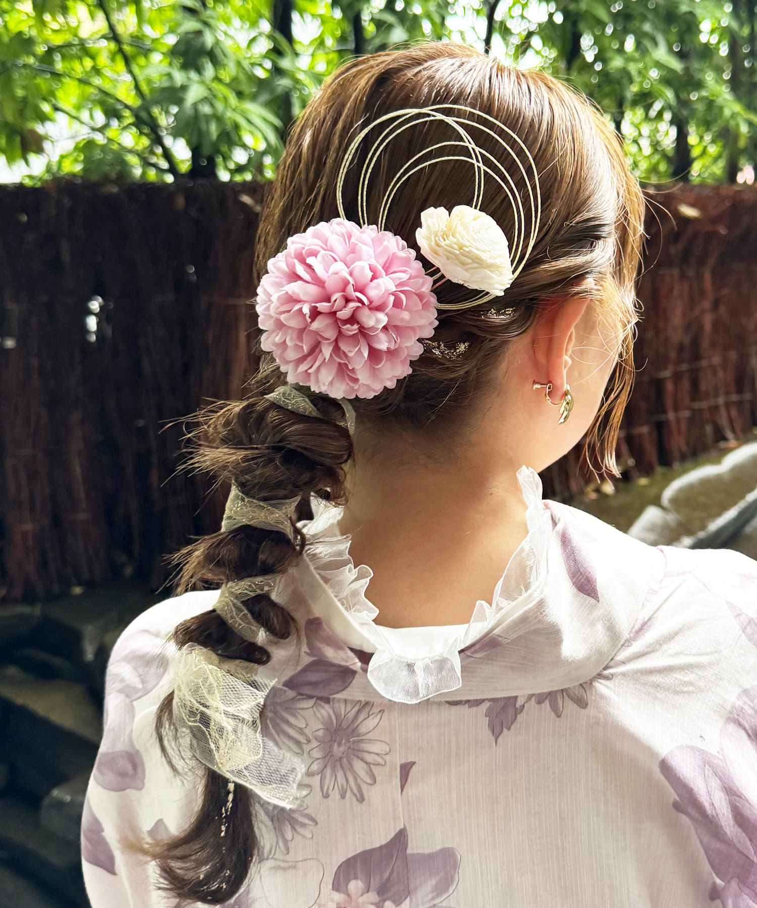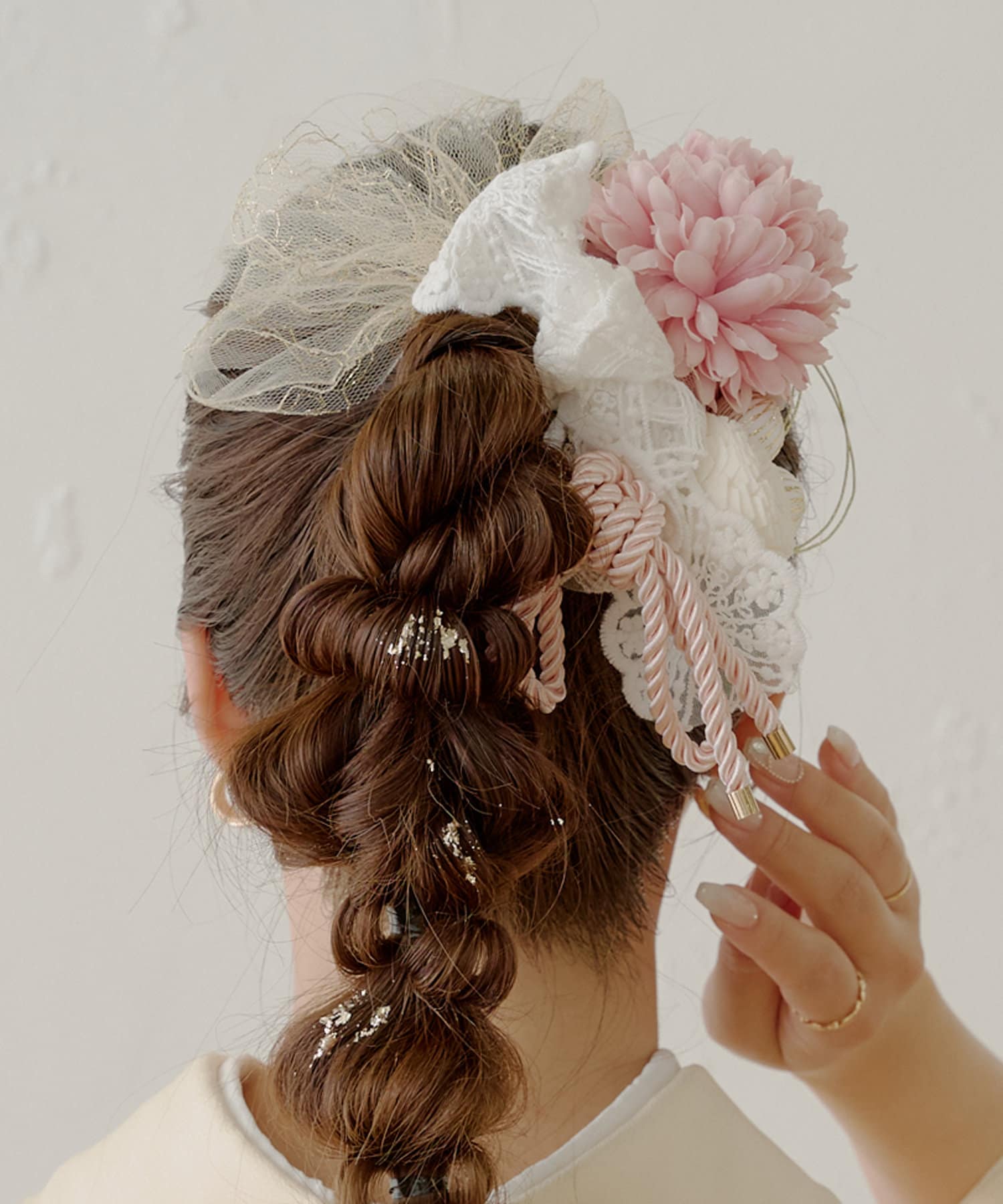 お好きな位置に付けることができ、どんなヘアスタイルにも使いやすい便利なアイテムです。
