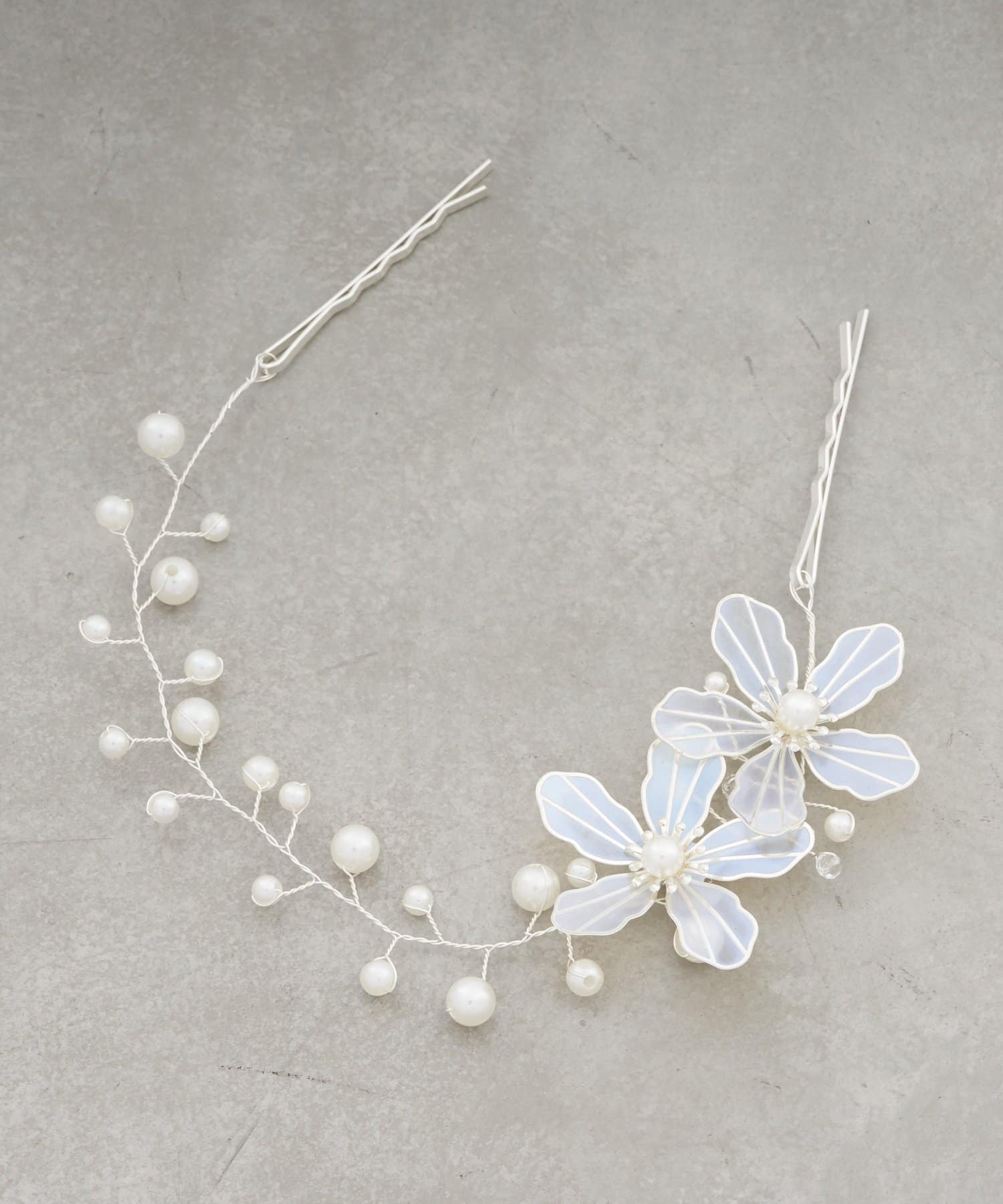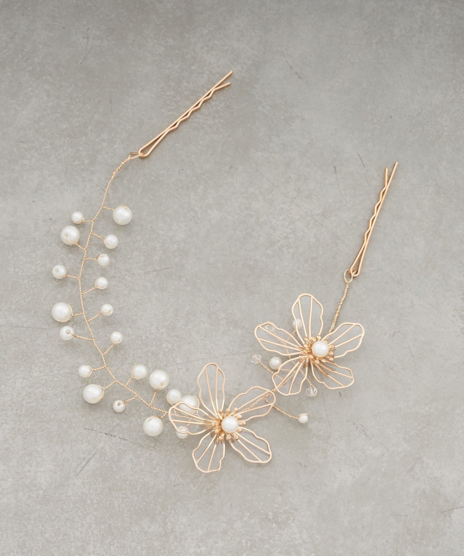 フラワーモチーフとパールが可憐な雰囲気に仕上げるアイテム。