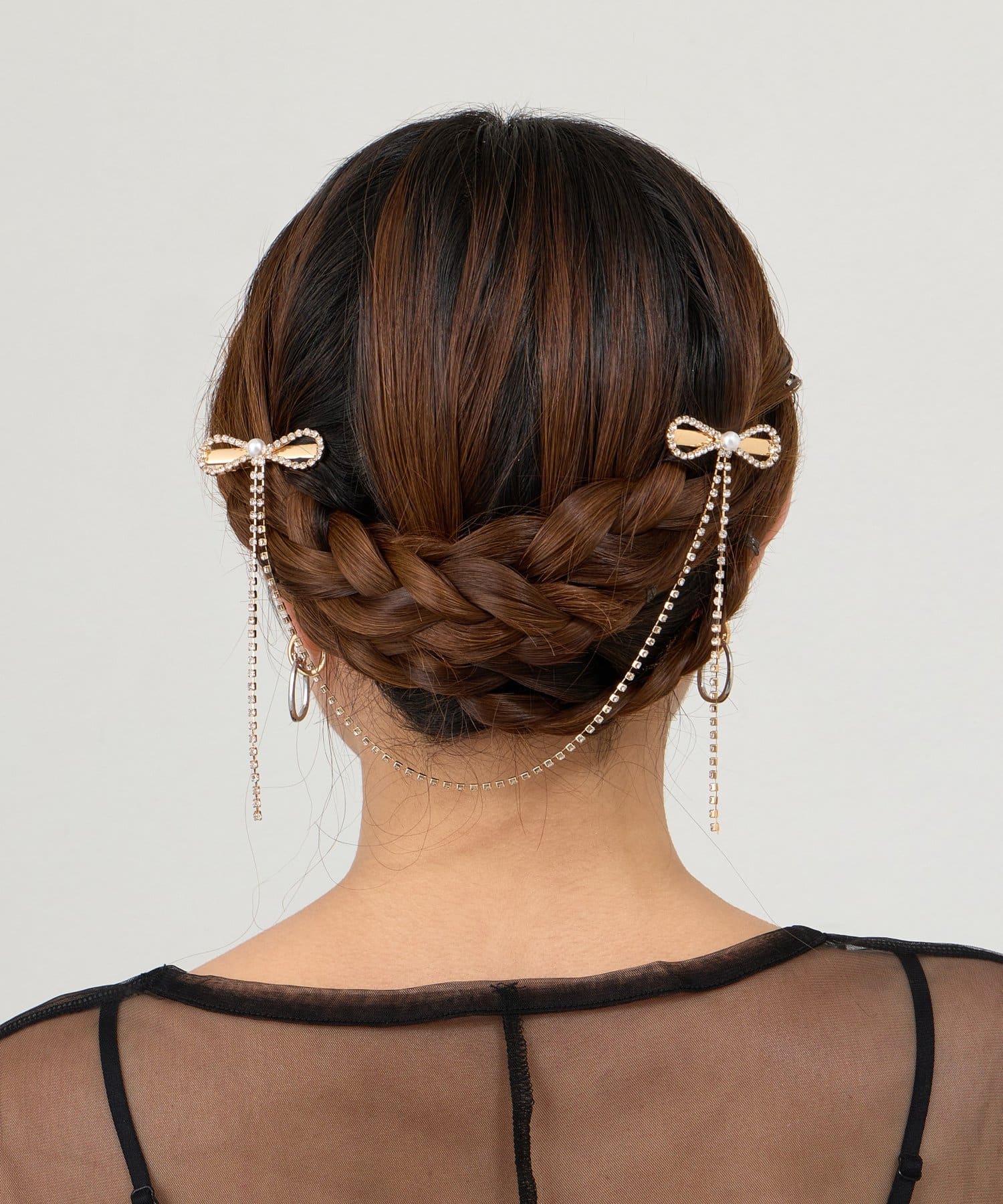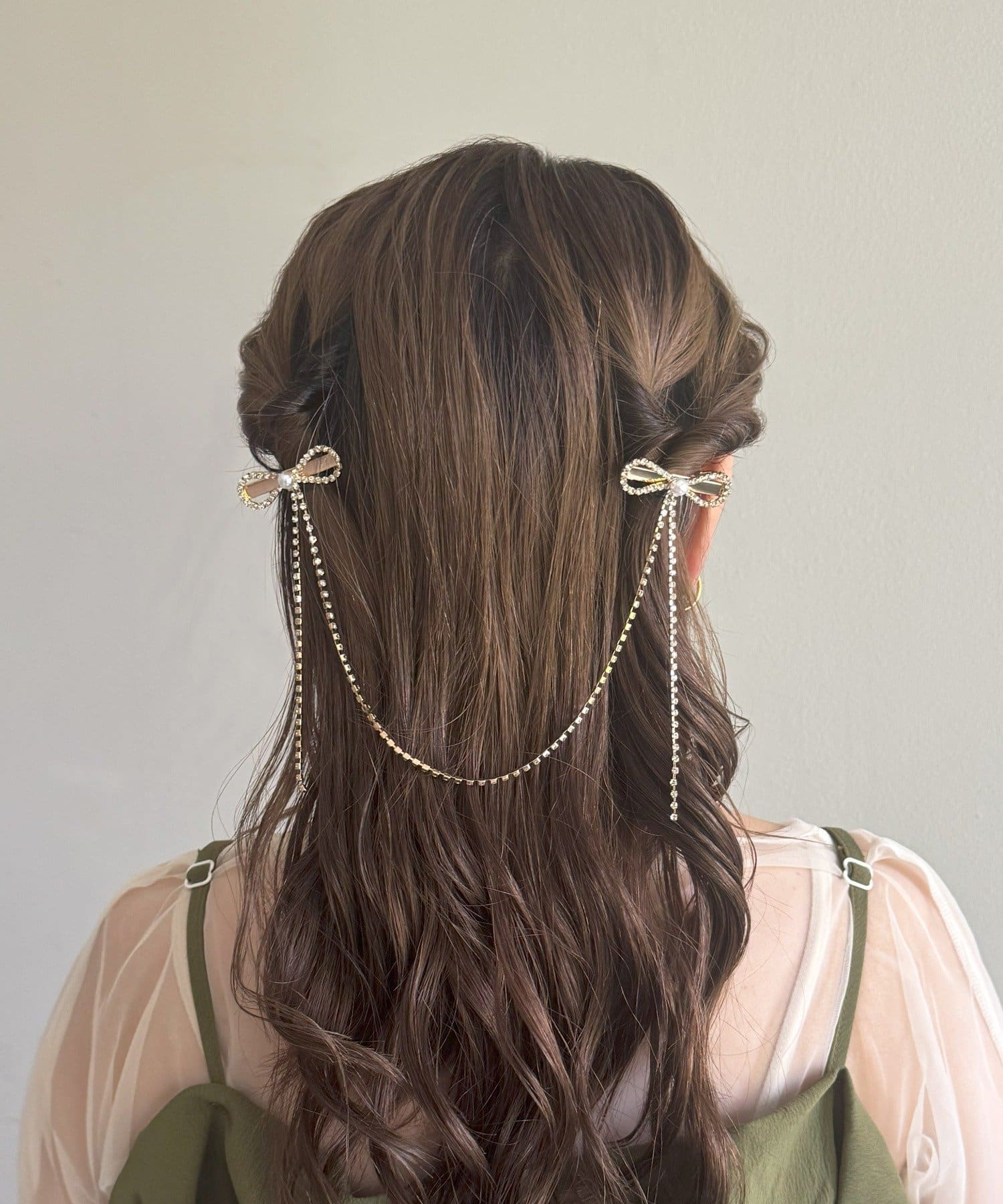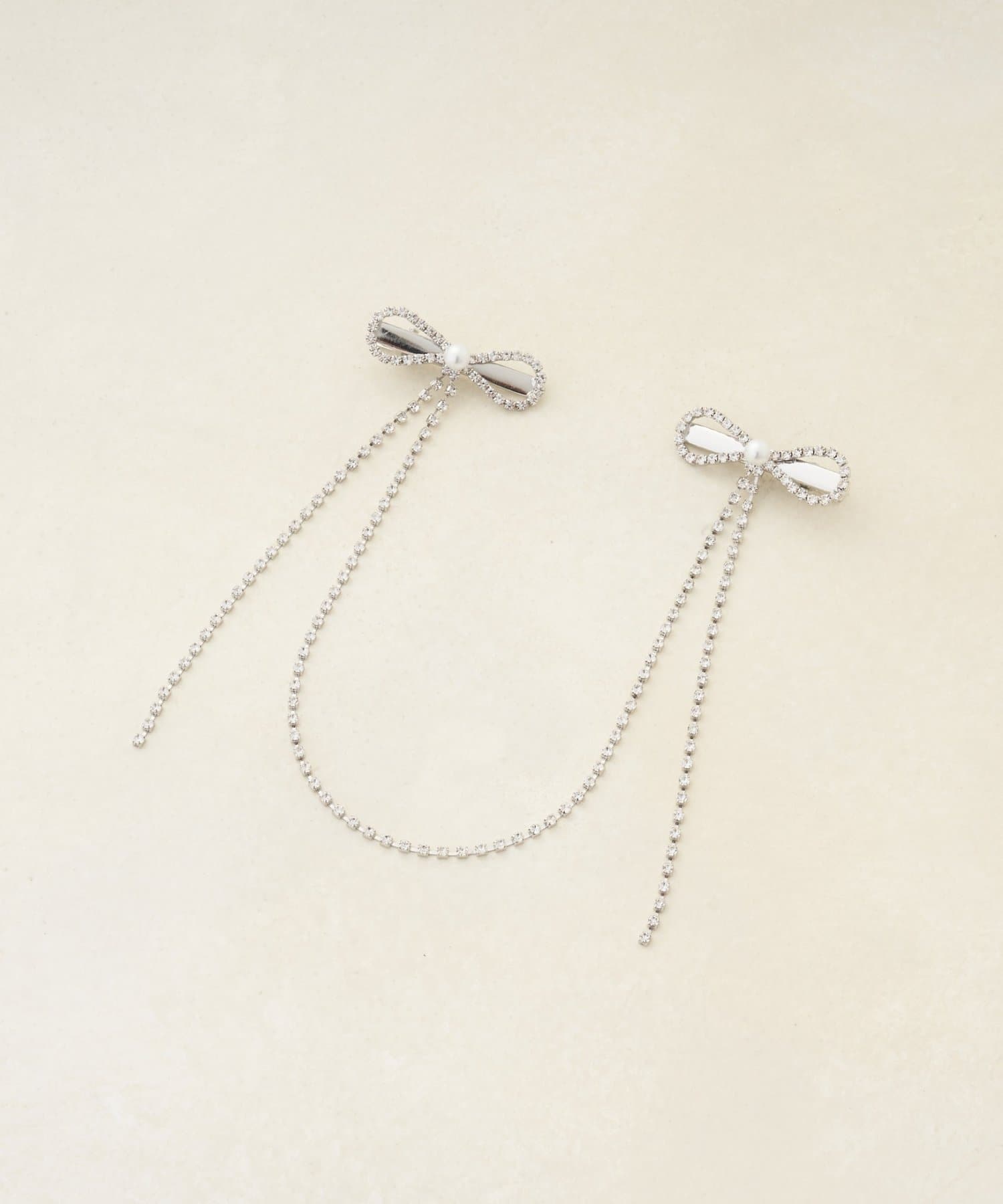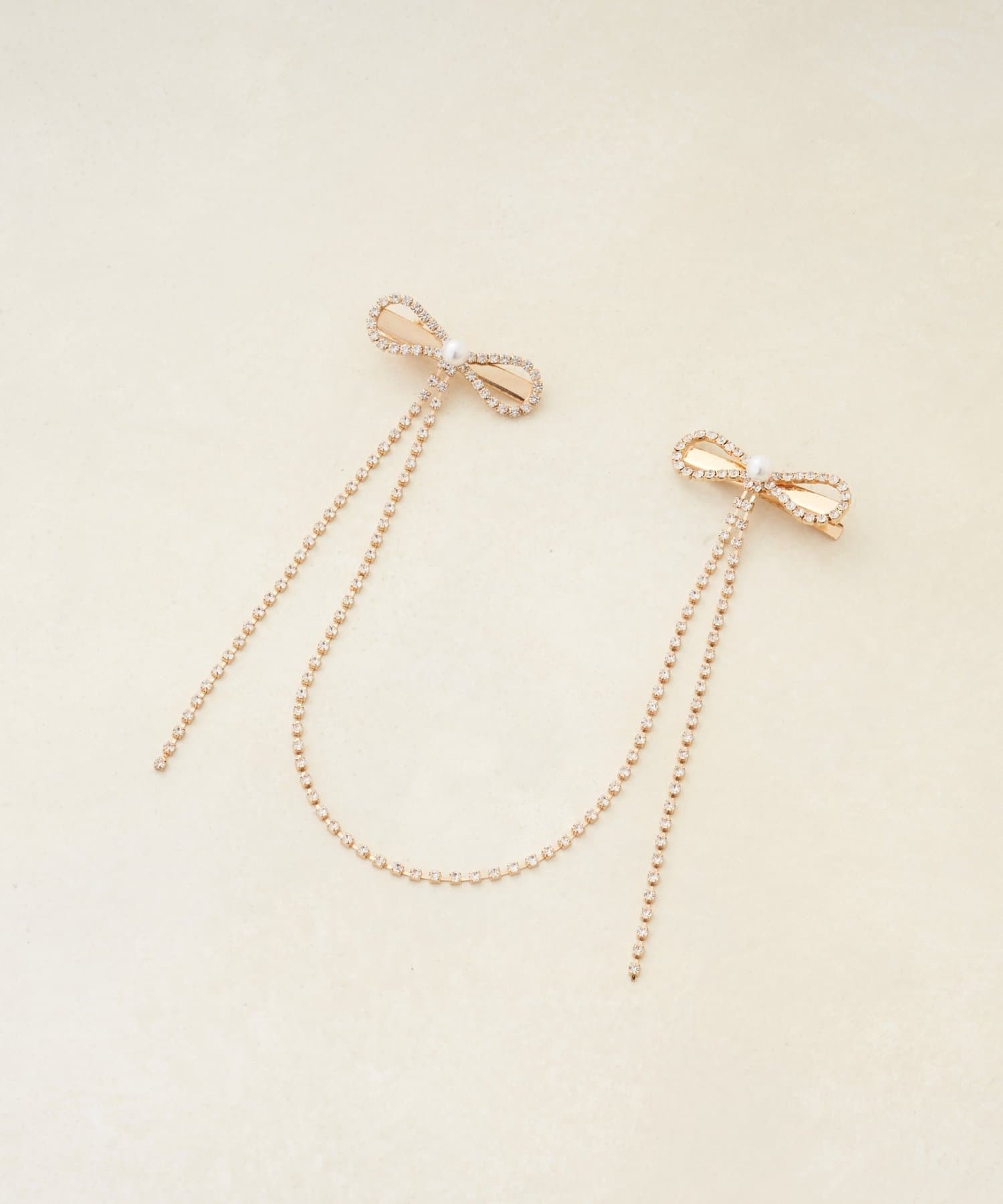 ミニサイズで使いやすいビジューリボンチェーンクリップ。