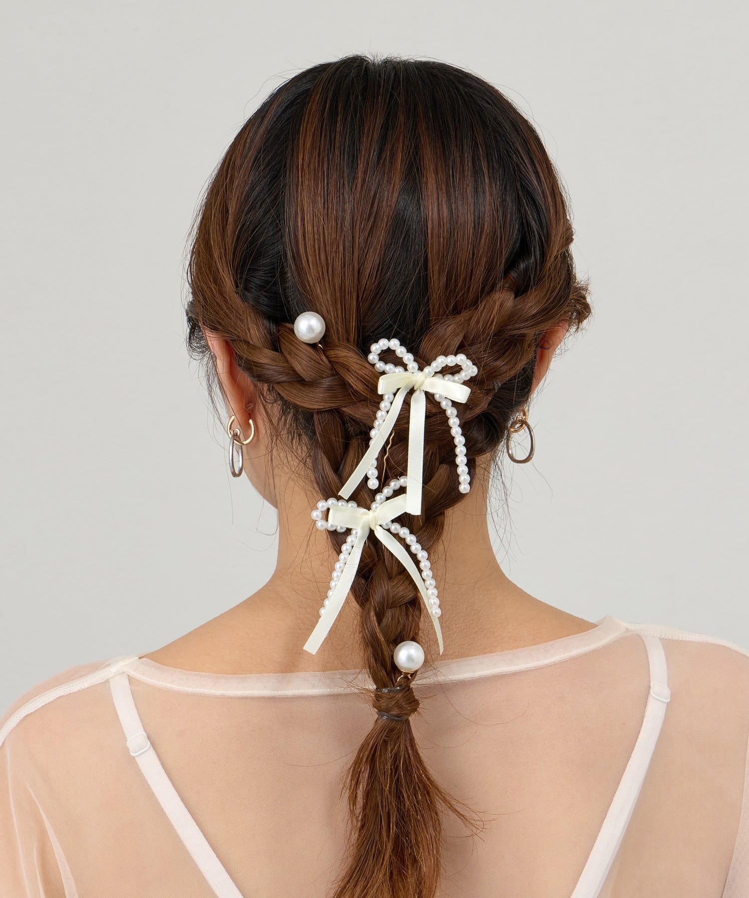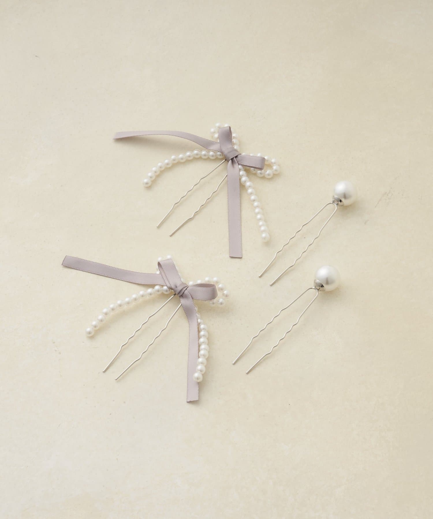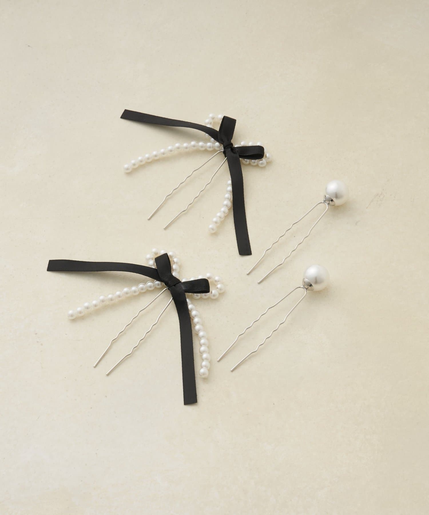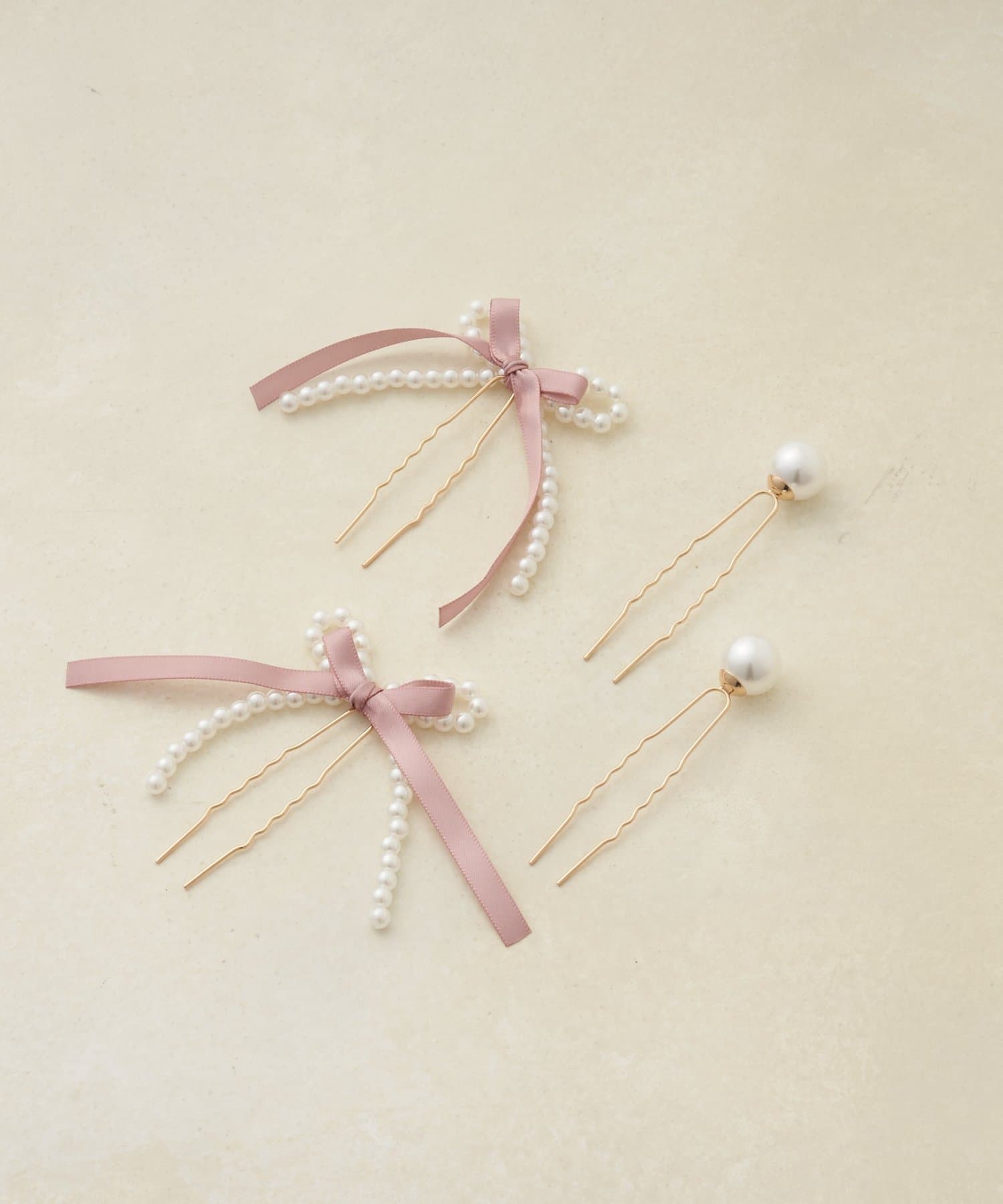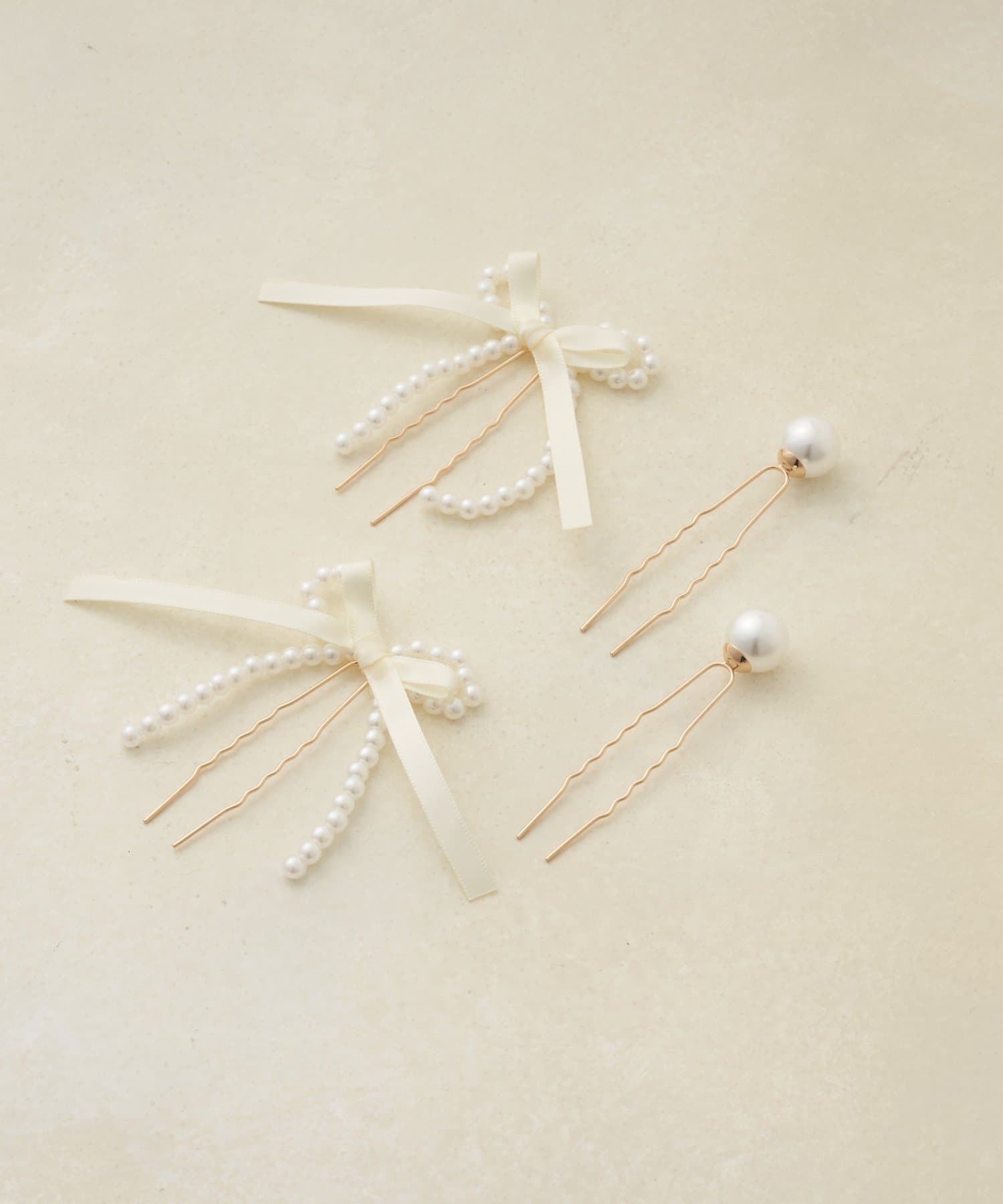 TOP > Lattice > レディース > ヘアアクセサリー > ヘアピン > 【オケージョン】サテンリボンUピンセット(4P)