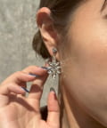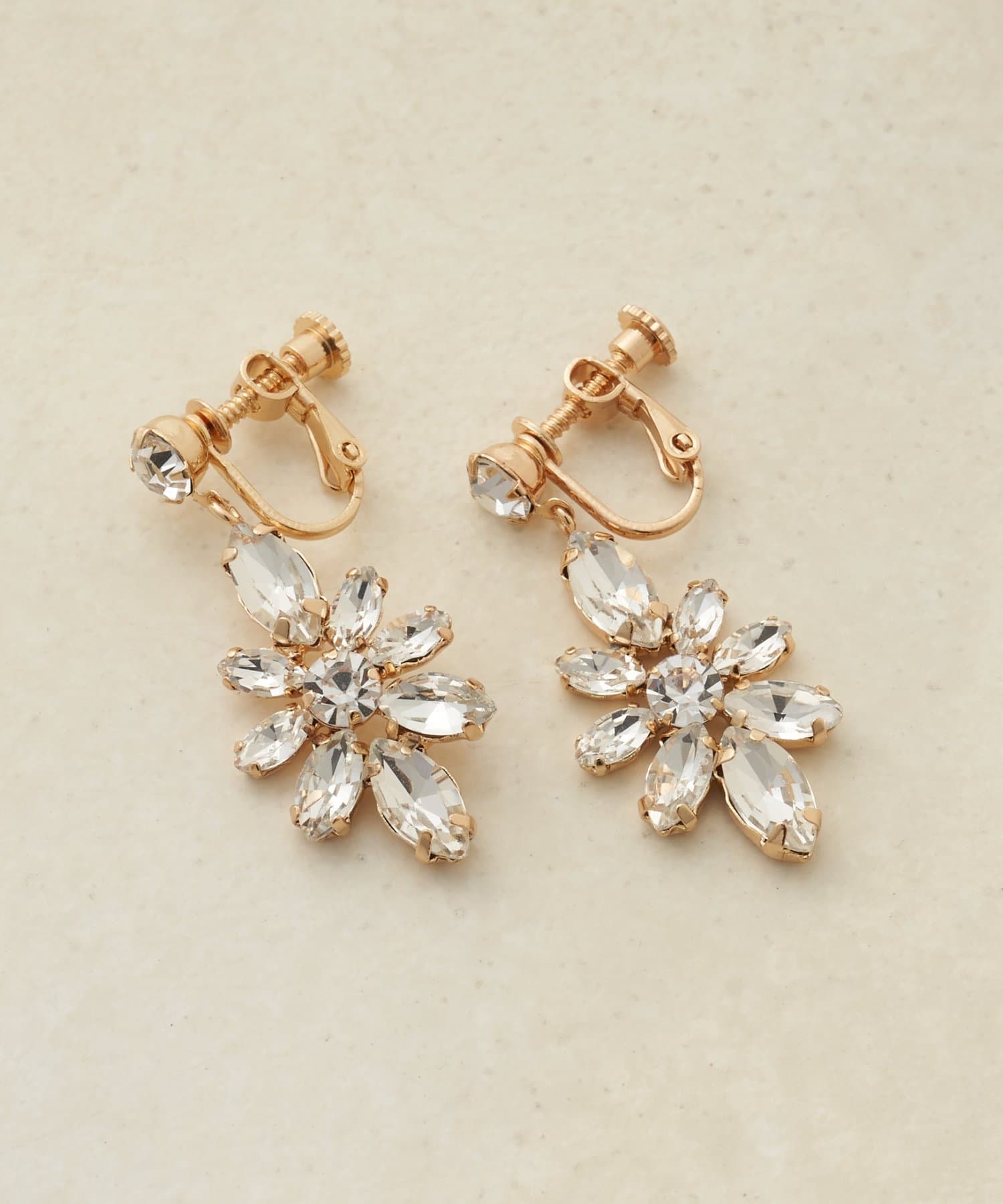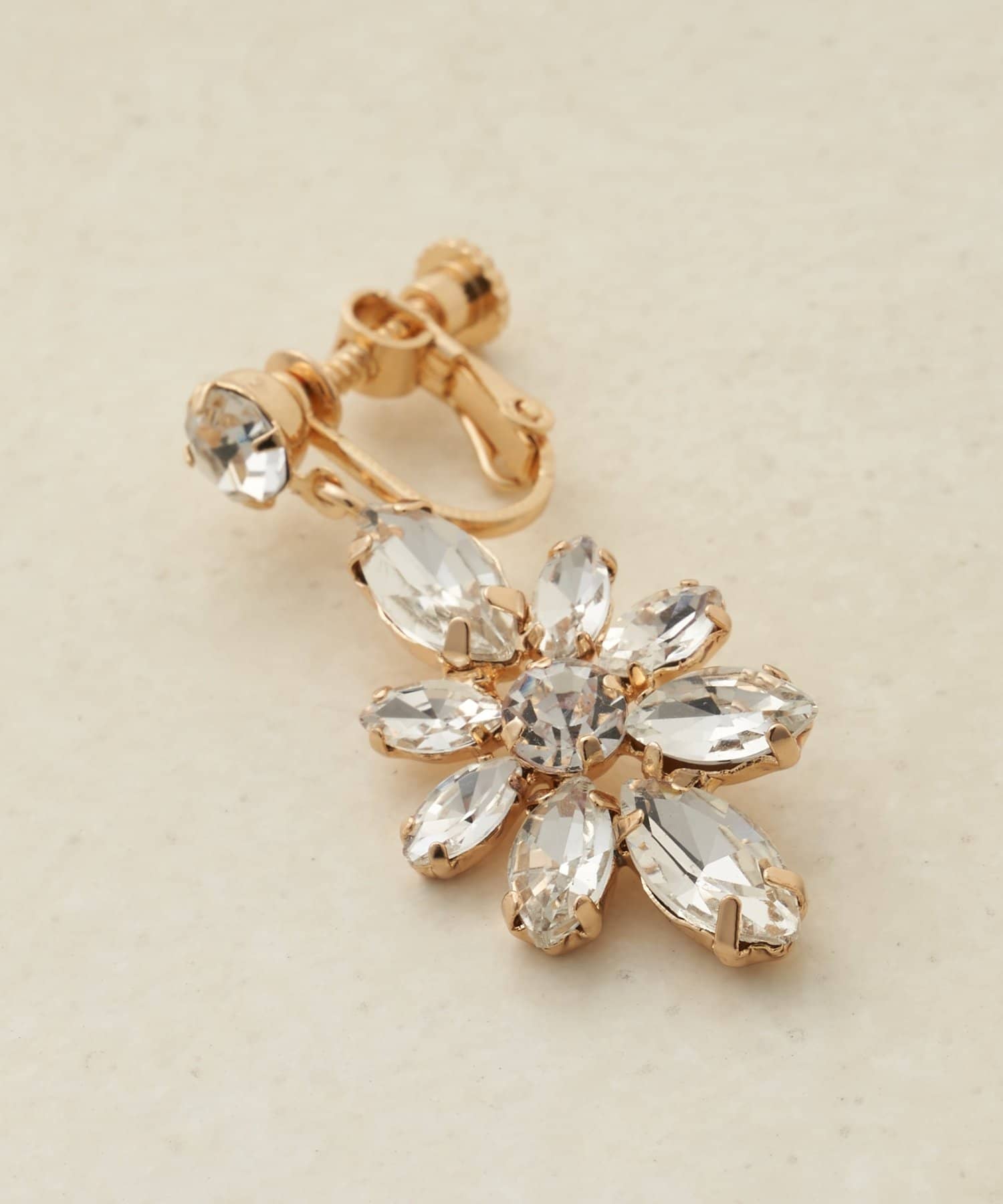 顔回りに華やかな印象を与えてくれる大ぶりなフラワーイヤリング。