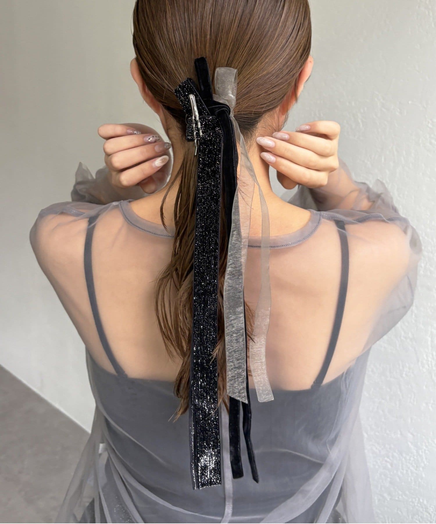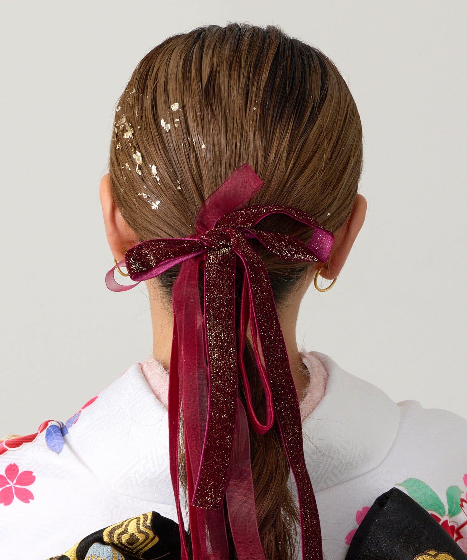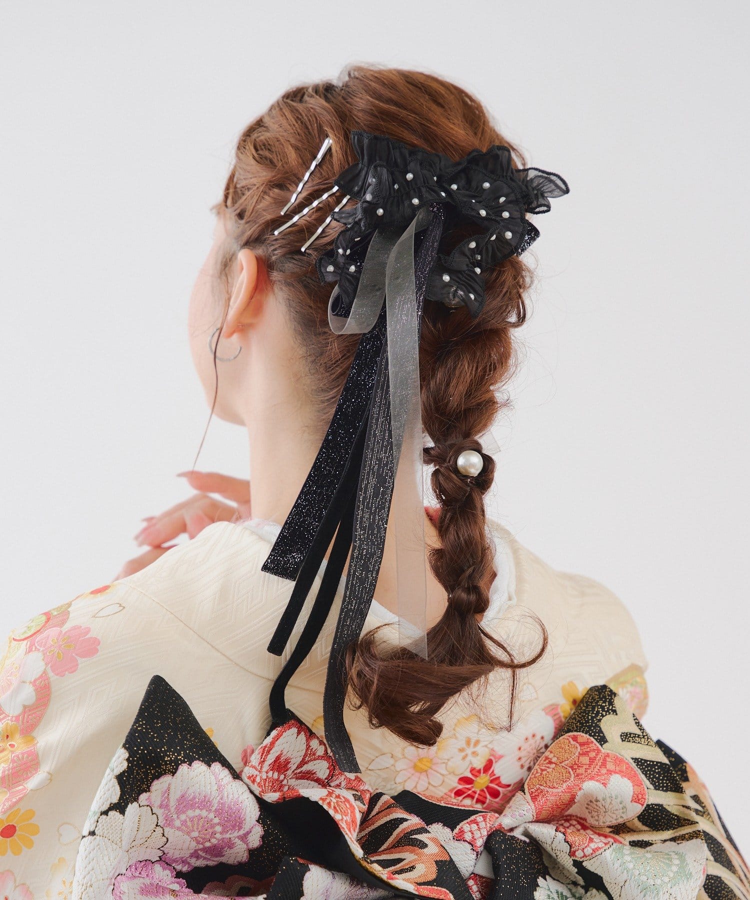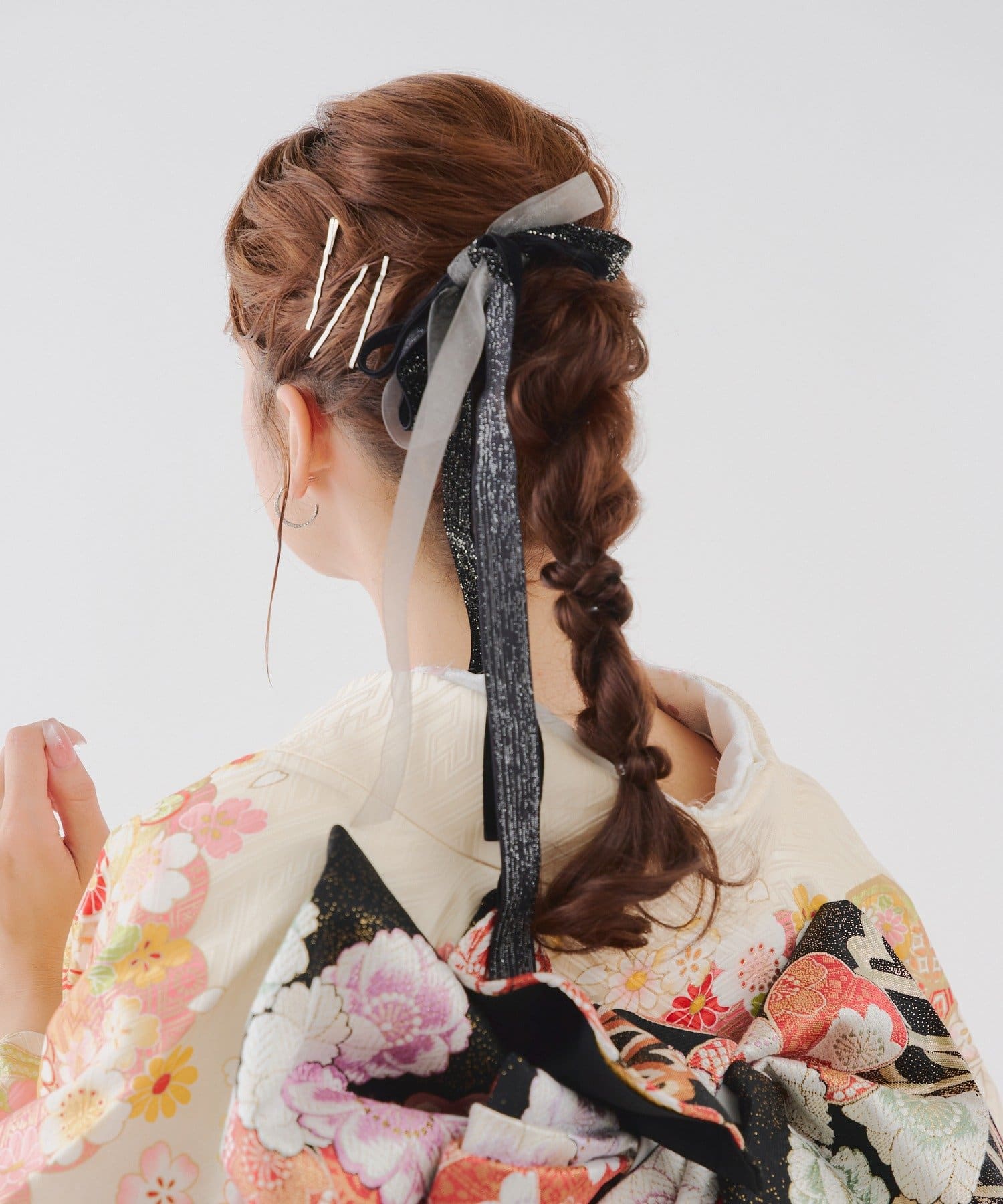 お好きな位置に付けることができ、どんなヘアスタイルにも使いやすい便利なアイテムです。