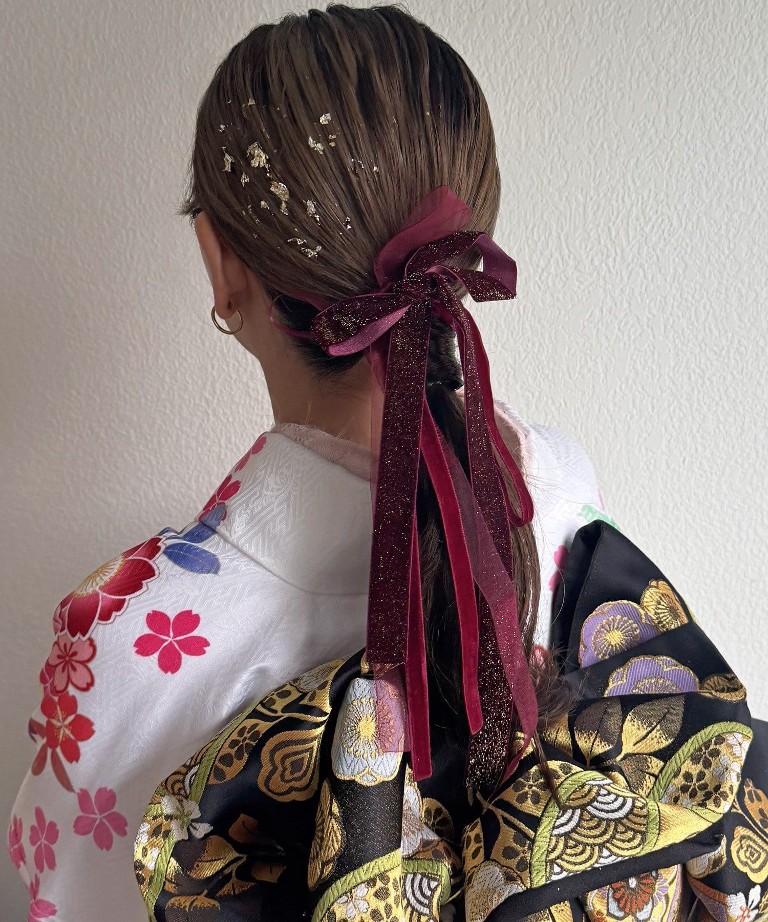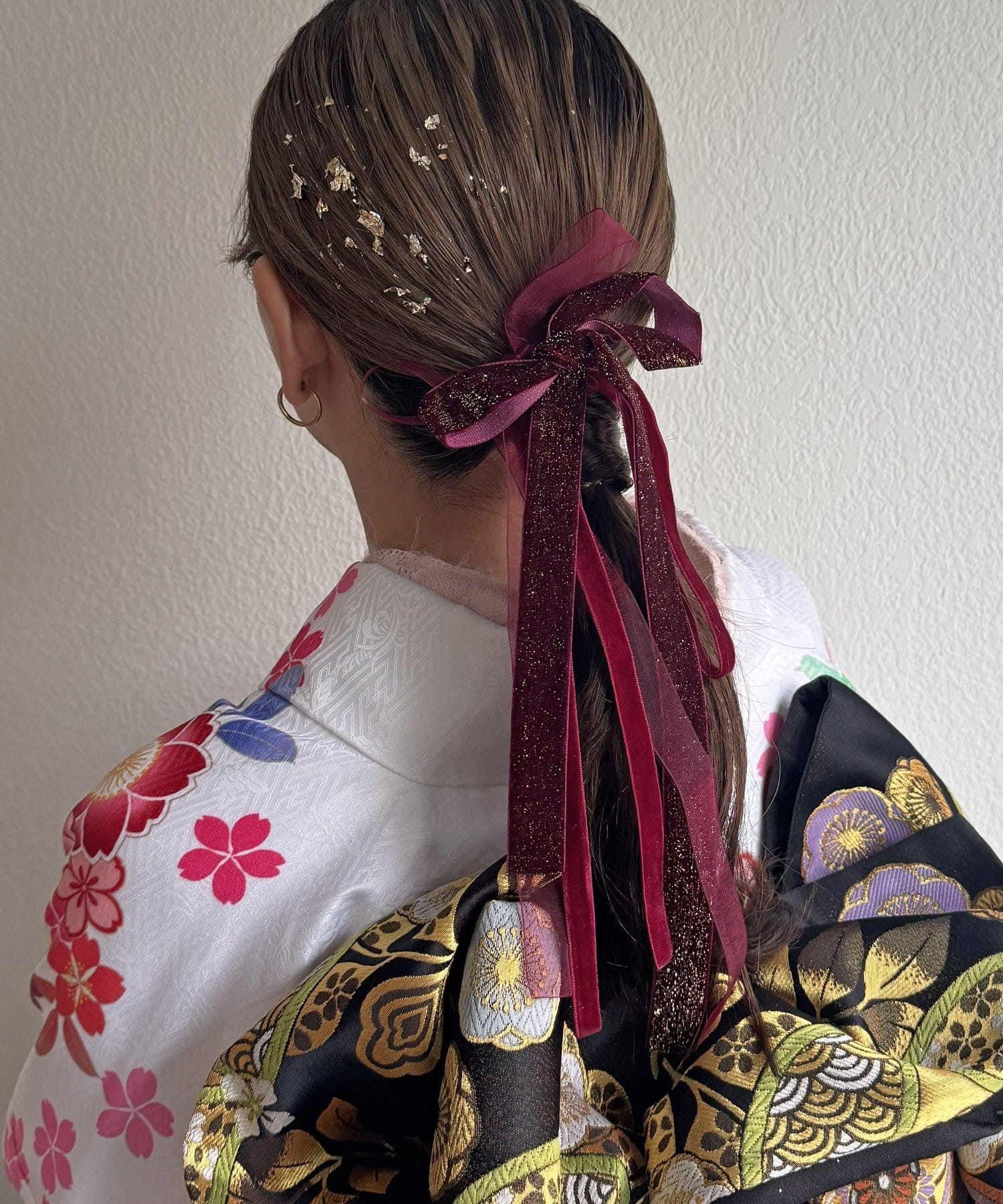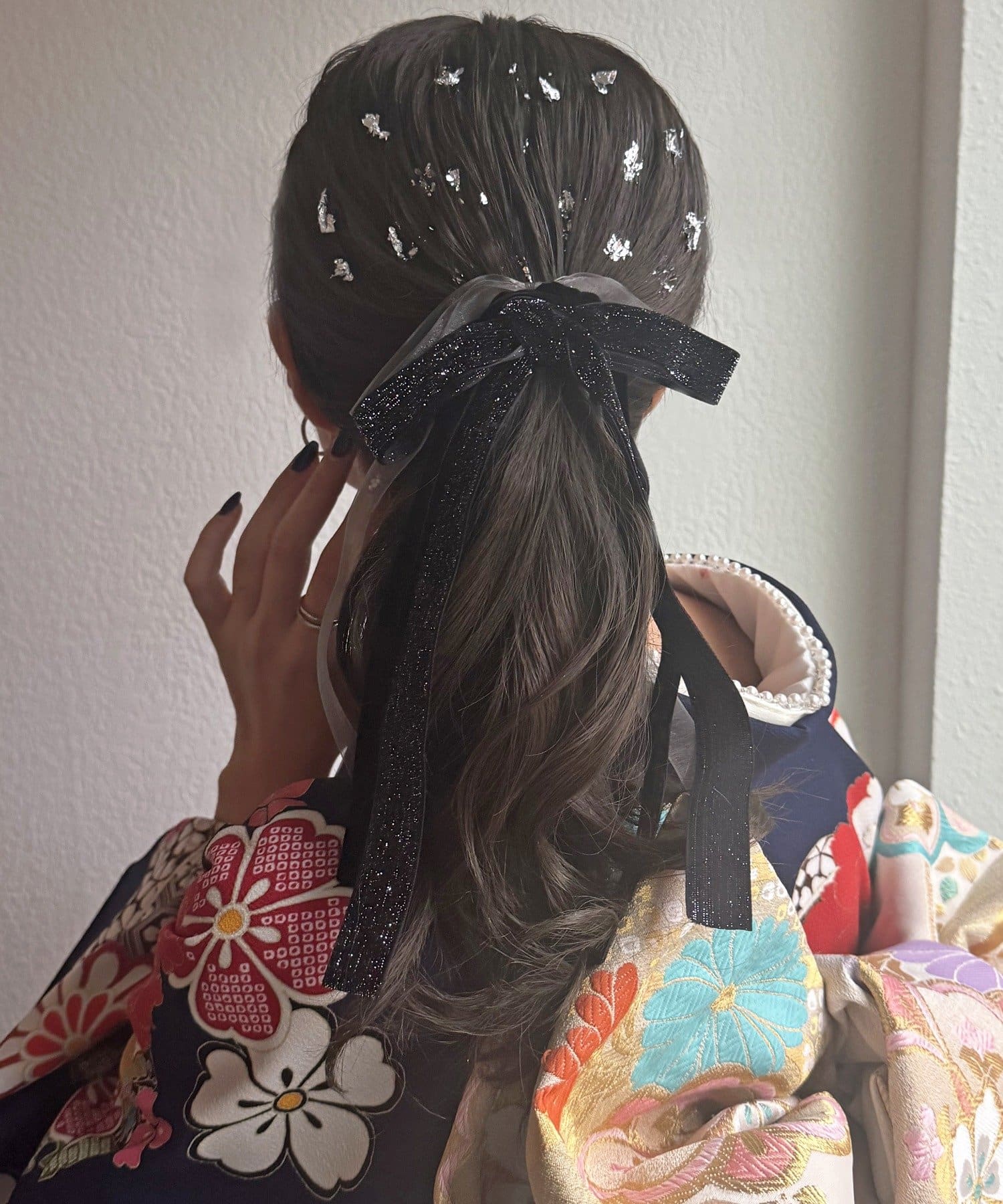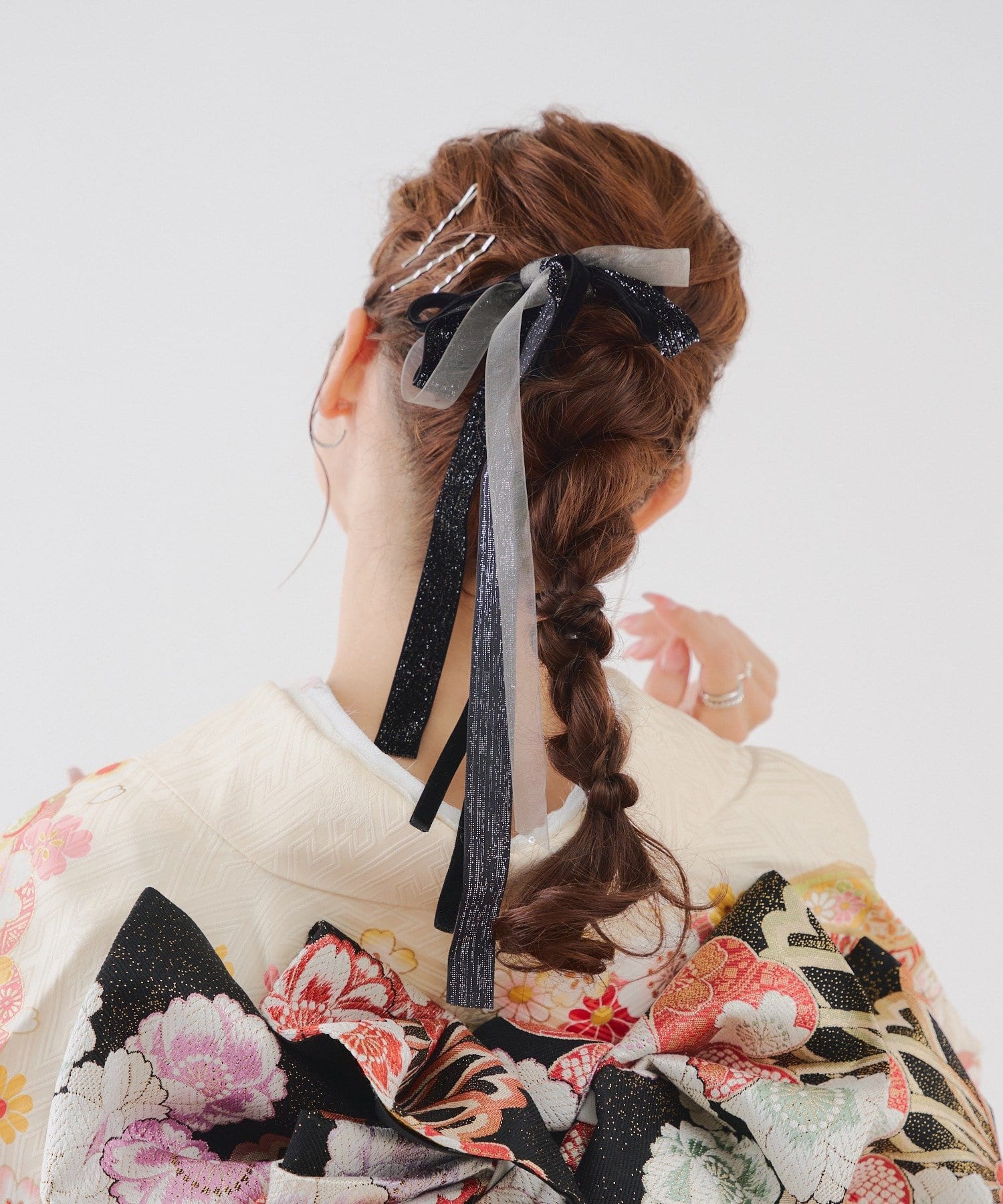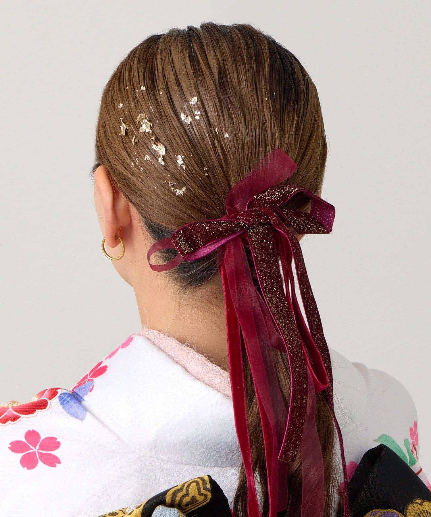 お好きな位置に付けることができ、どんなヘアスタイルにも使いやすい便利なアイテムです。