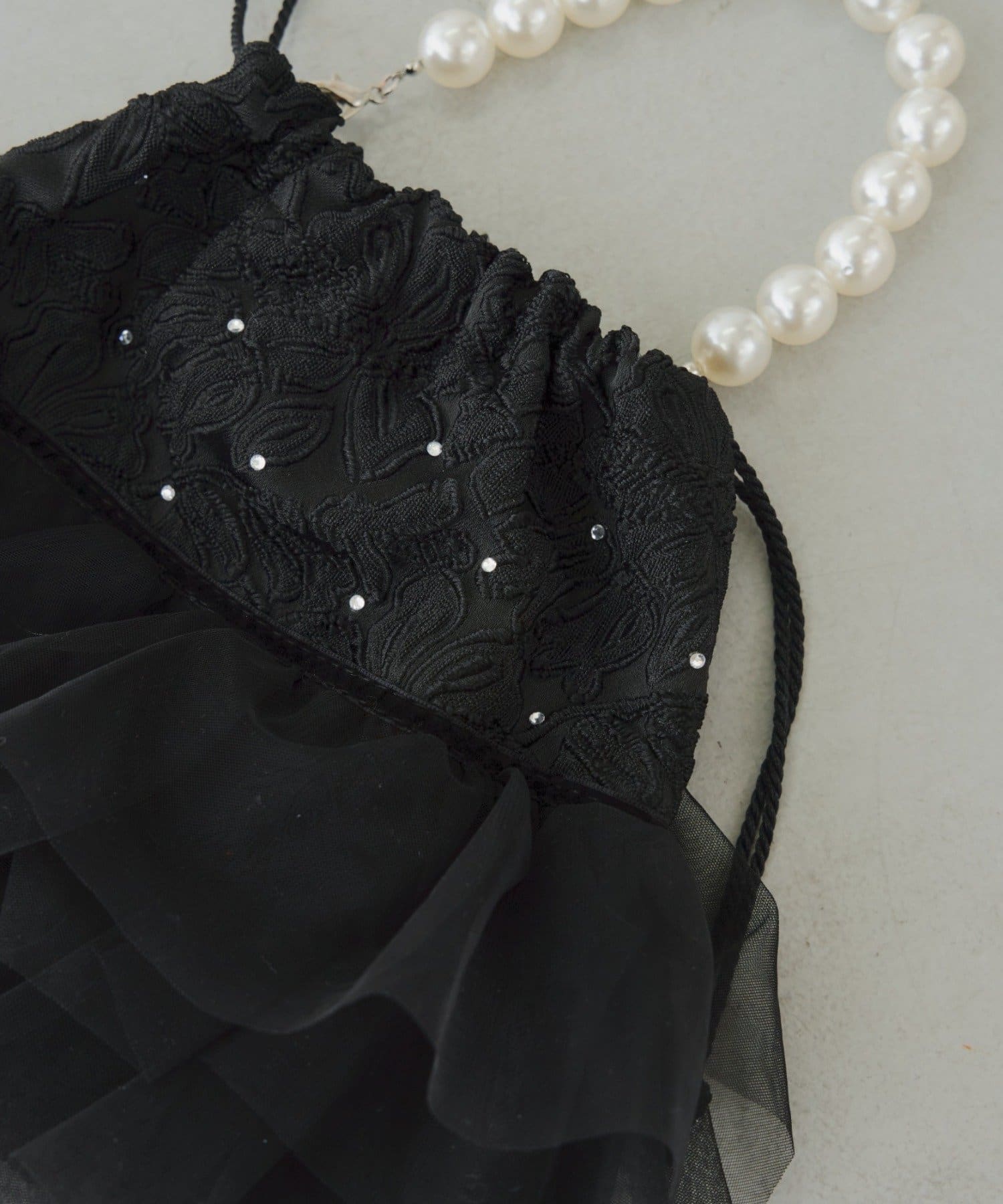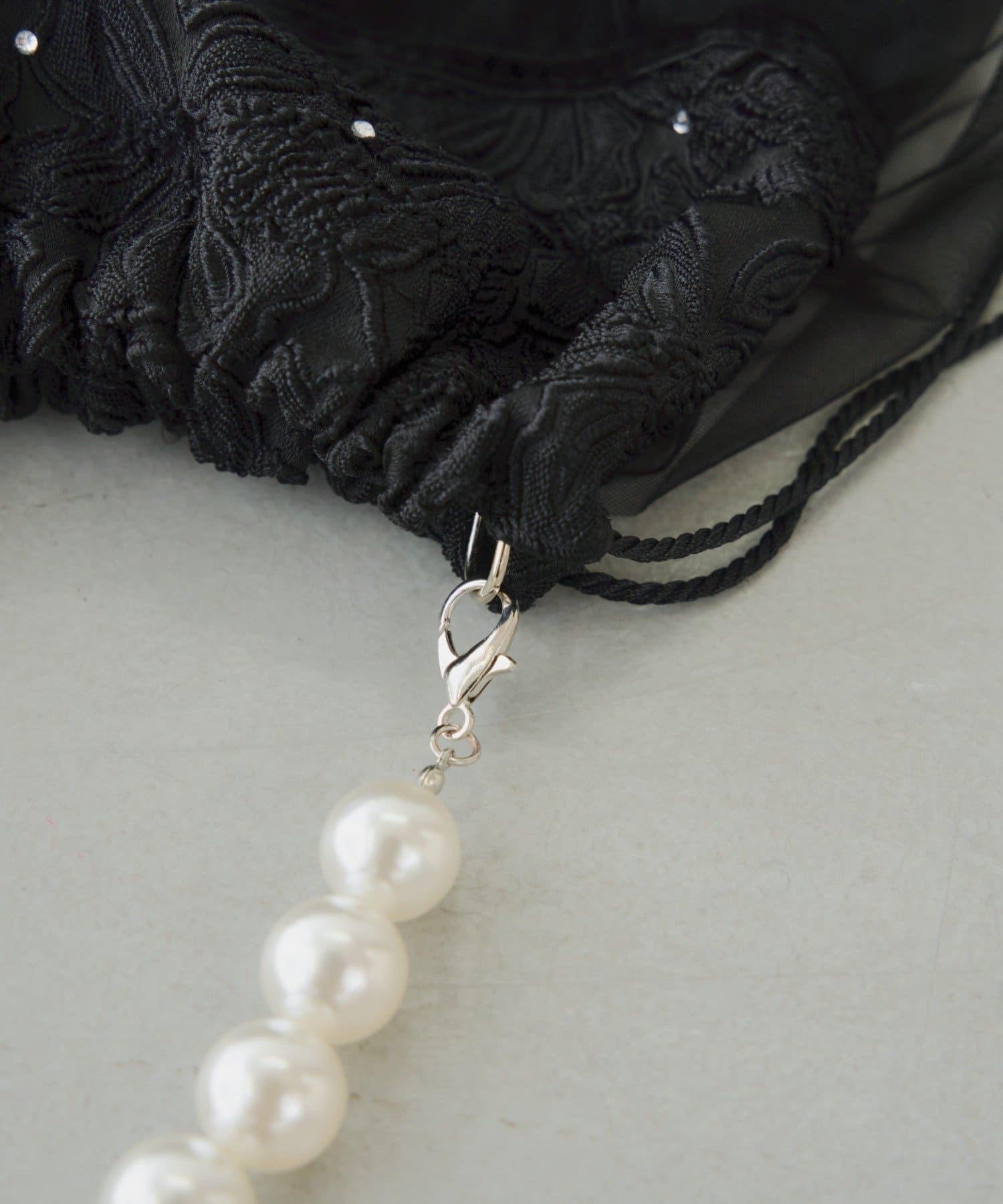 〇パールの持ち手は取り外し可能で巾着ポーチとしても◎