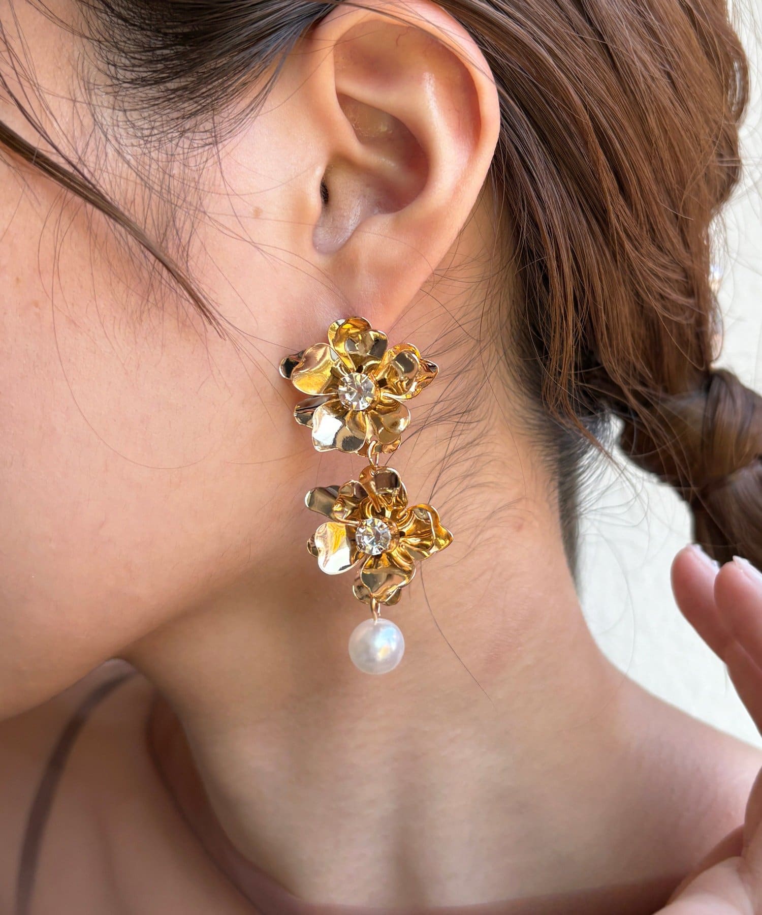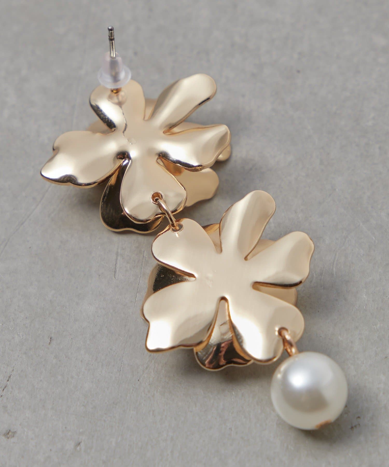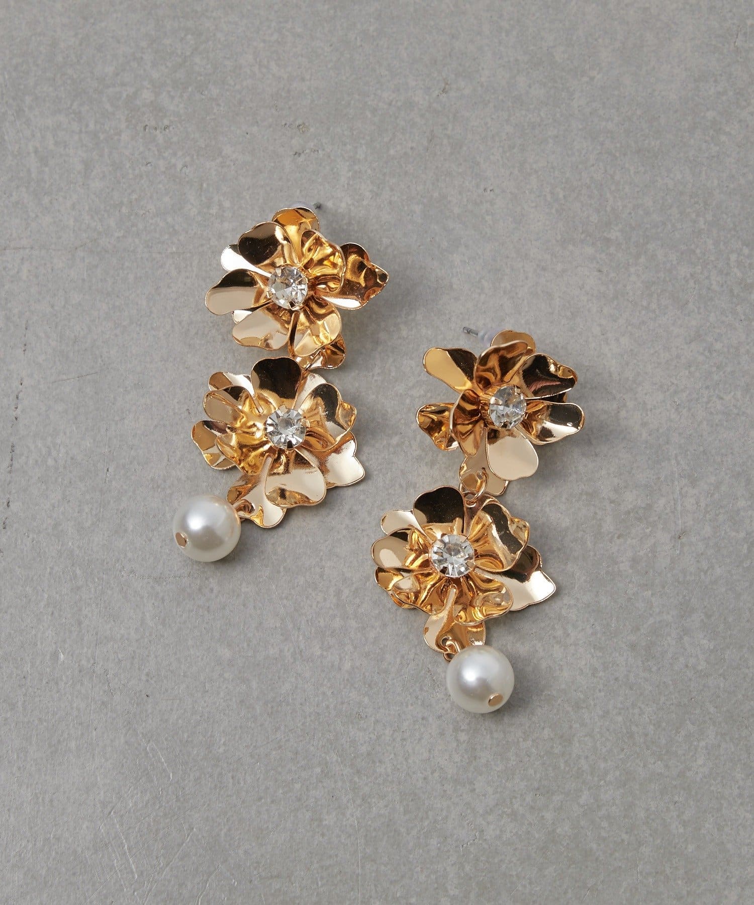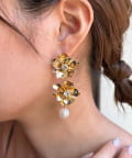 顔回りに華やかな印象を与えてくれる大ぶりなフラワーピアス。