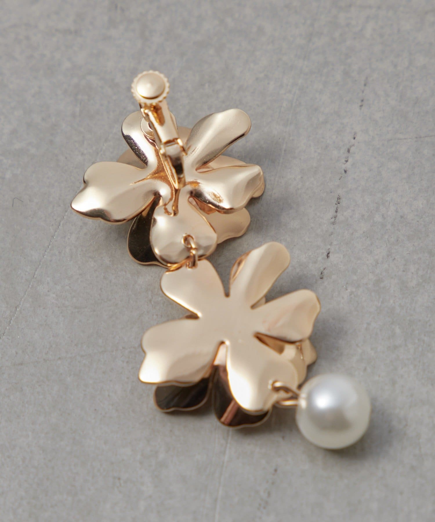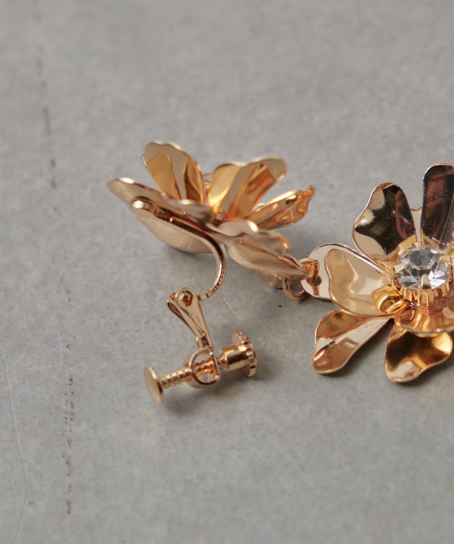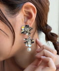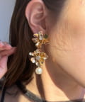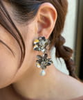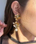 顔回りに華やかな印象を与えてくれる大ぶりなフラワーイヤリング。