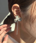 顔回りに華やかな印象を与えてくれる大ぶりなフラワーイヤリング。