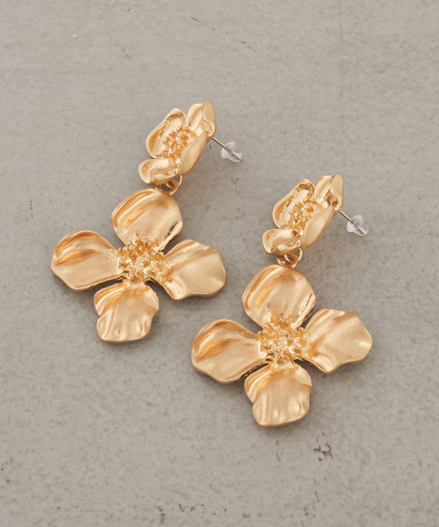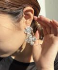 顔回りに華やかな印象を与えてくれる大ぶりなフラワーピアス。