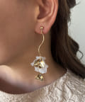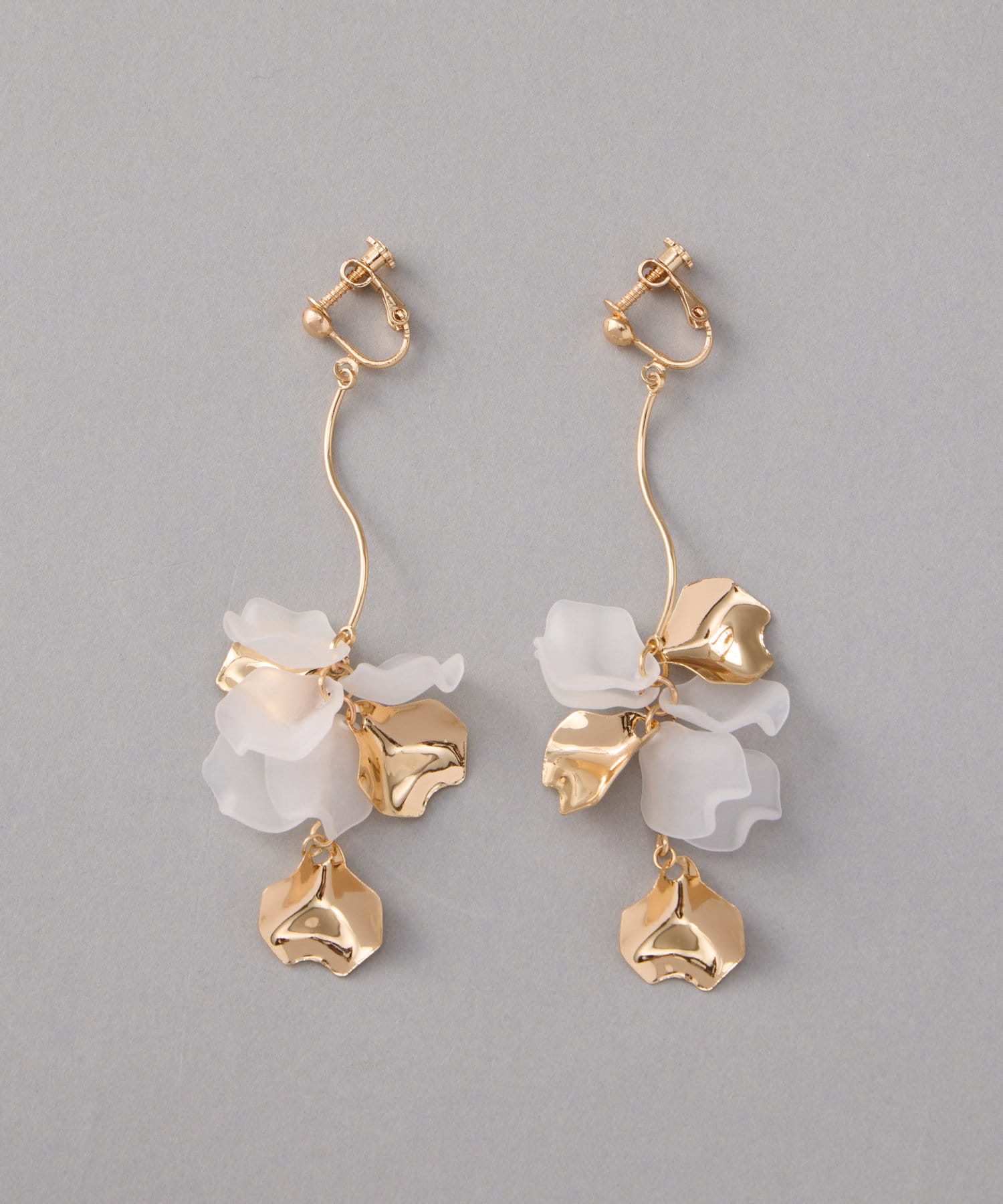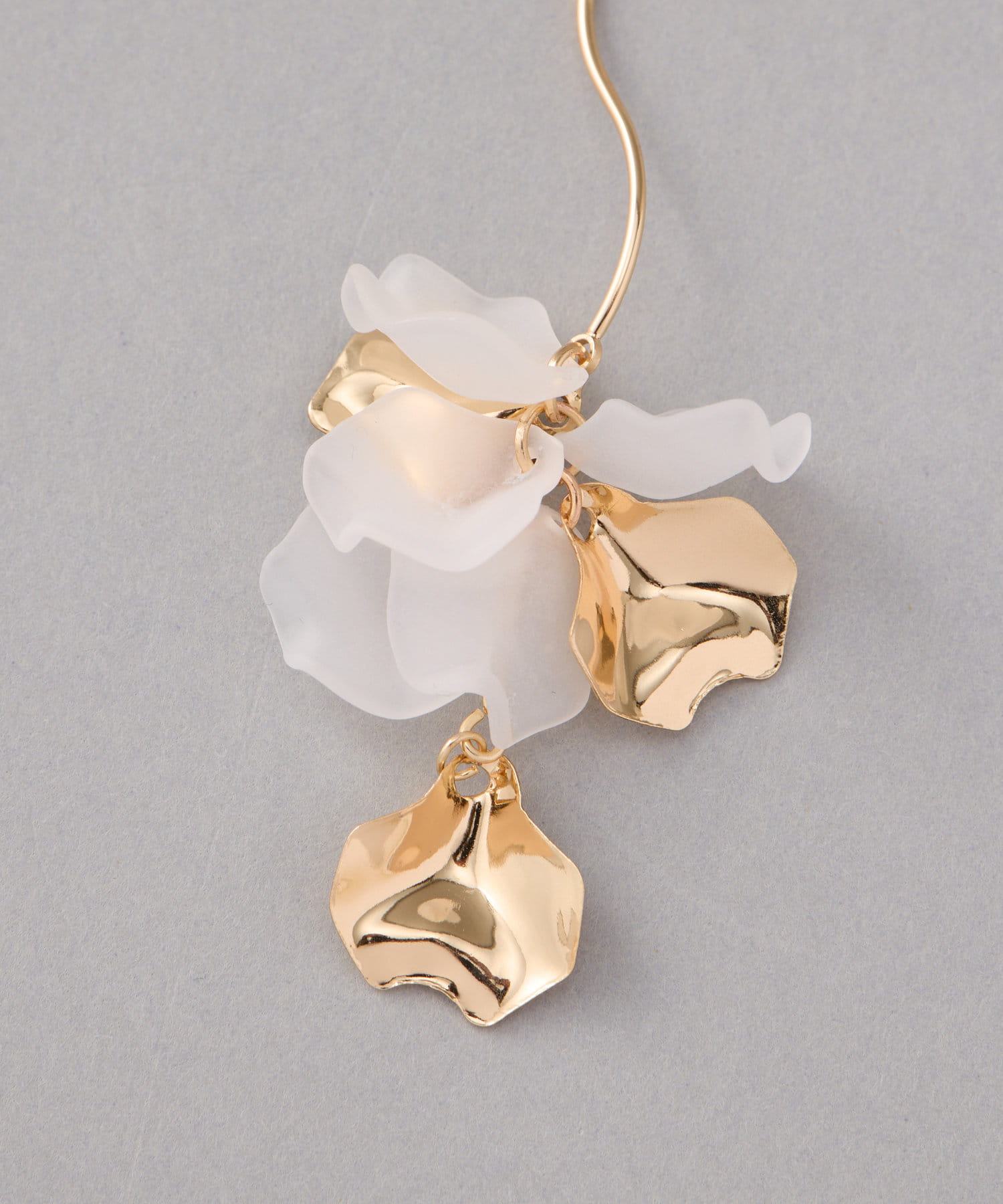 顔回りに華やかな印象を与えてくれる大ぶりなフラワーイヤリング。