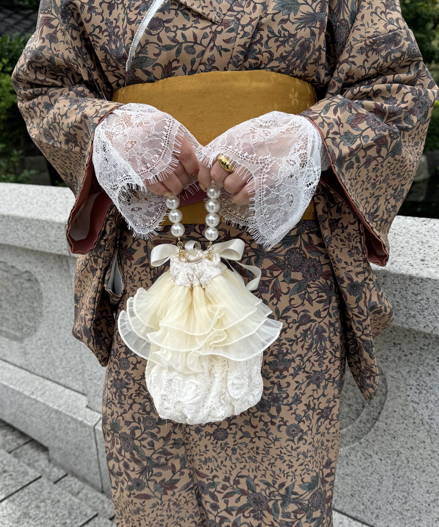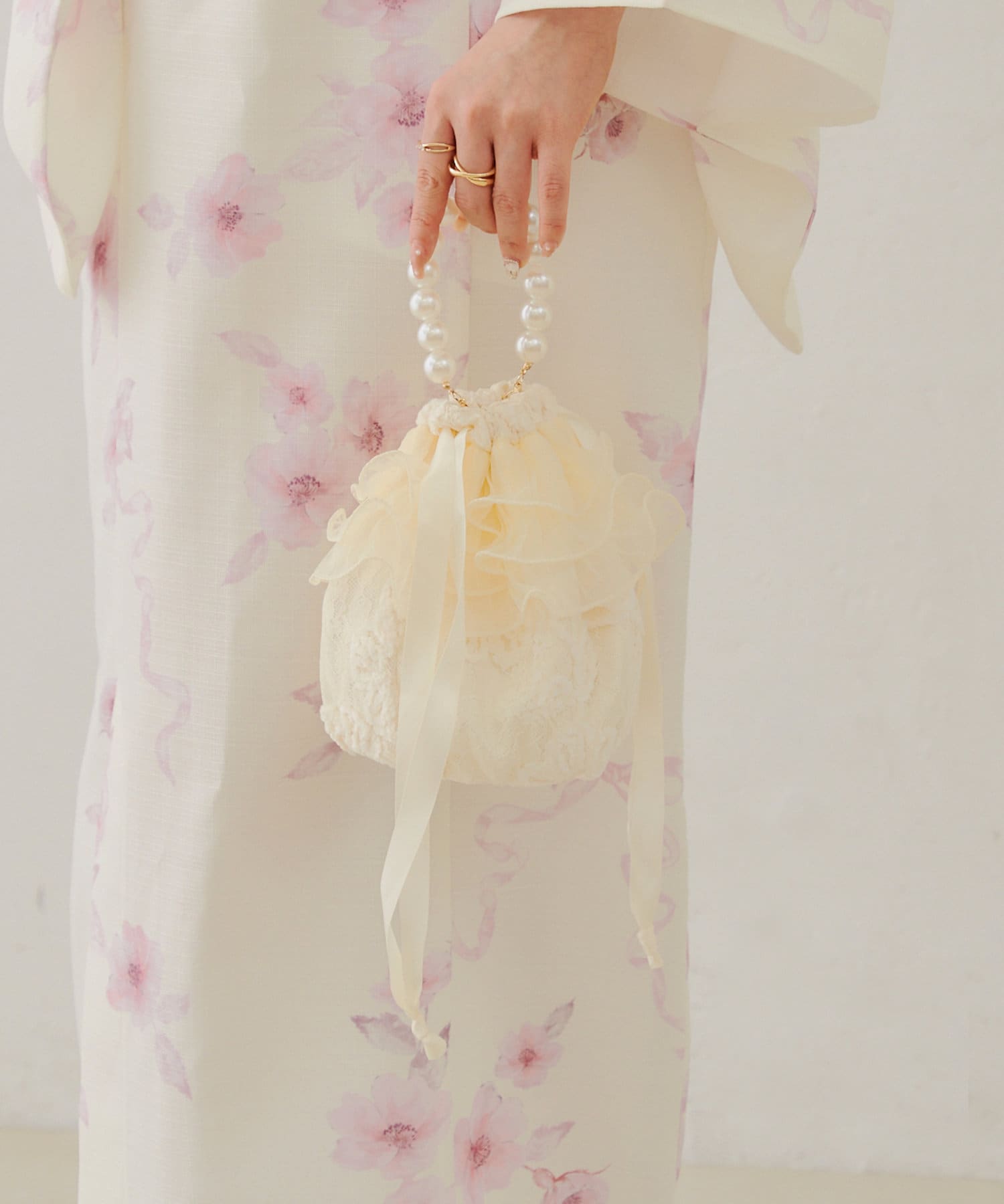 【浴衣・和装におすすめ】フリル巾着バッグ