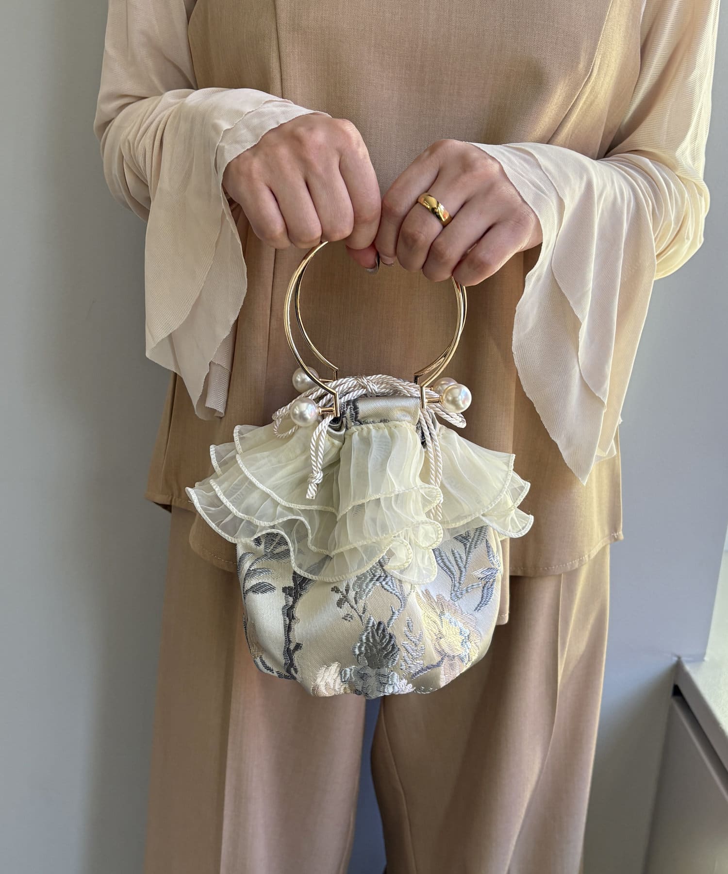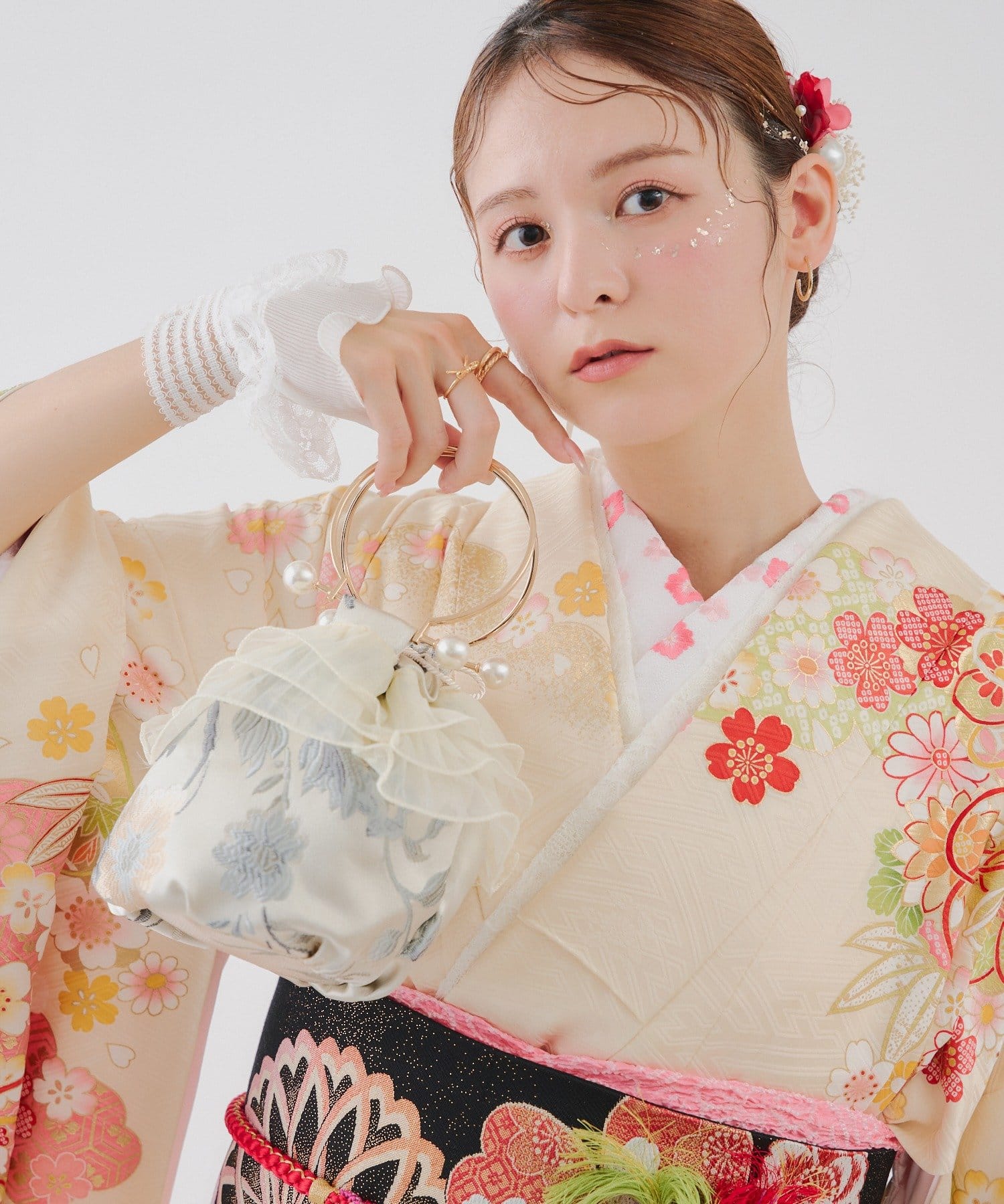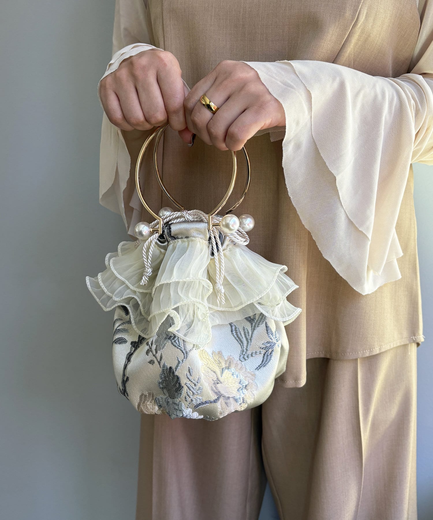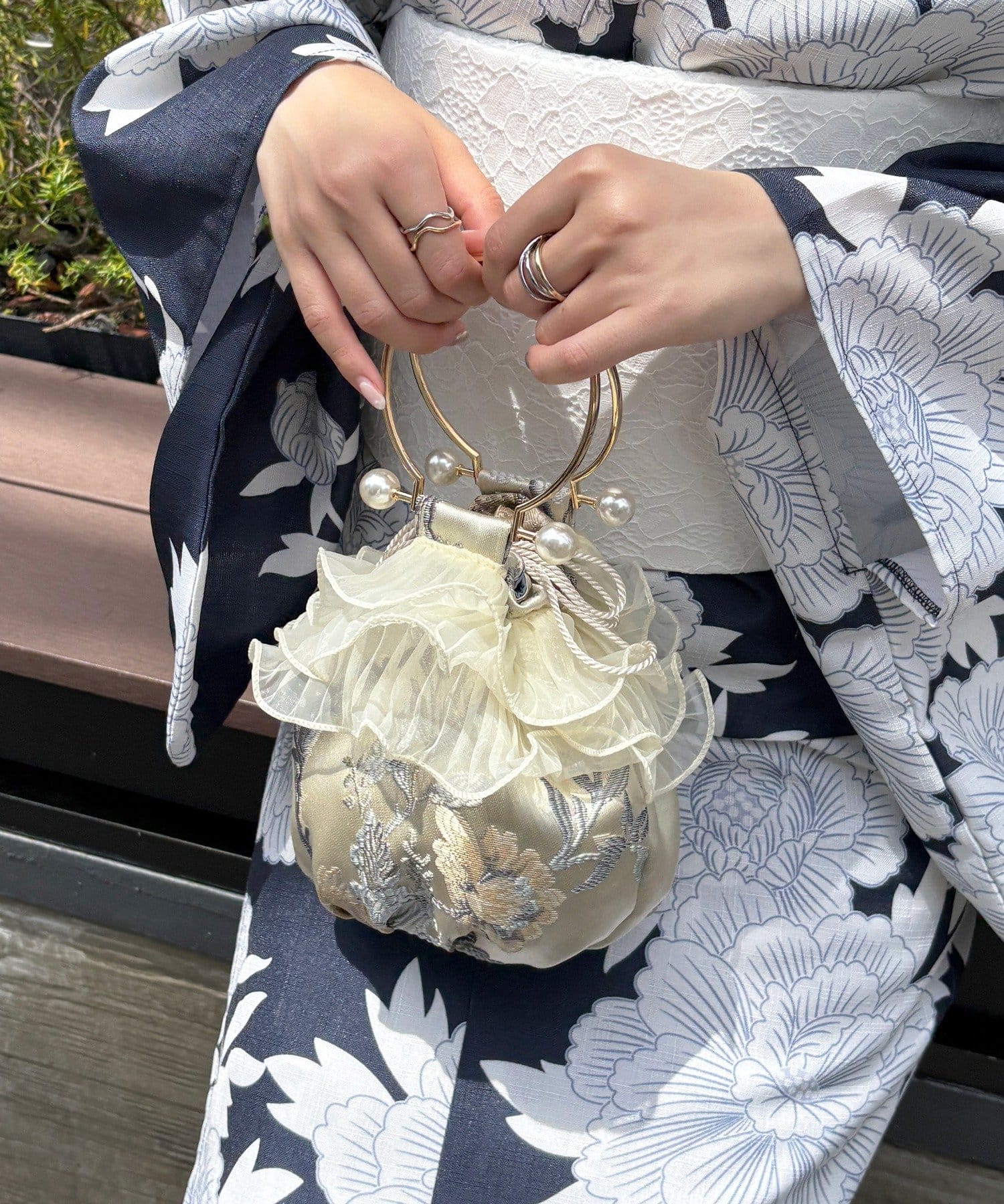 【人気の為再入荷】【浴衣・和装におすすめ】刺繍花柄巾着バッグ