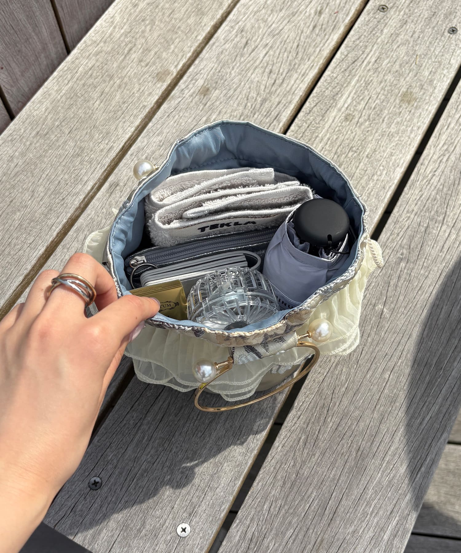 小さめのお財布・リップなどを持ち運ぶのにちょうど良いサイズ感です。