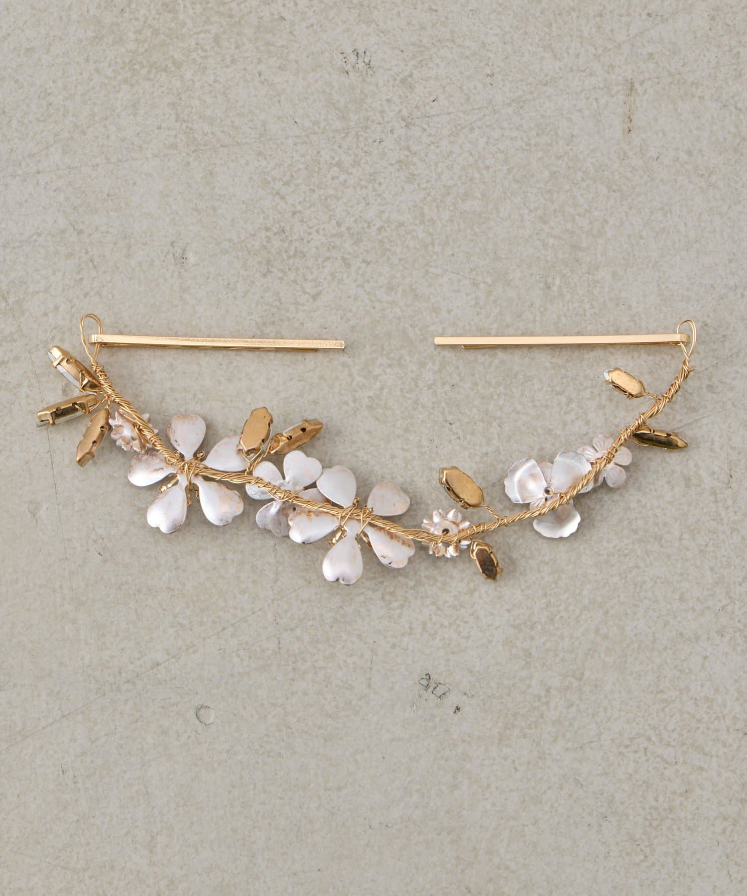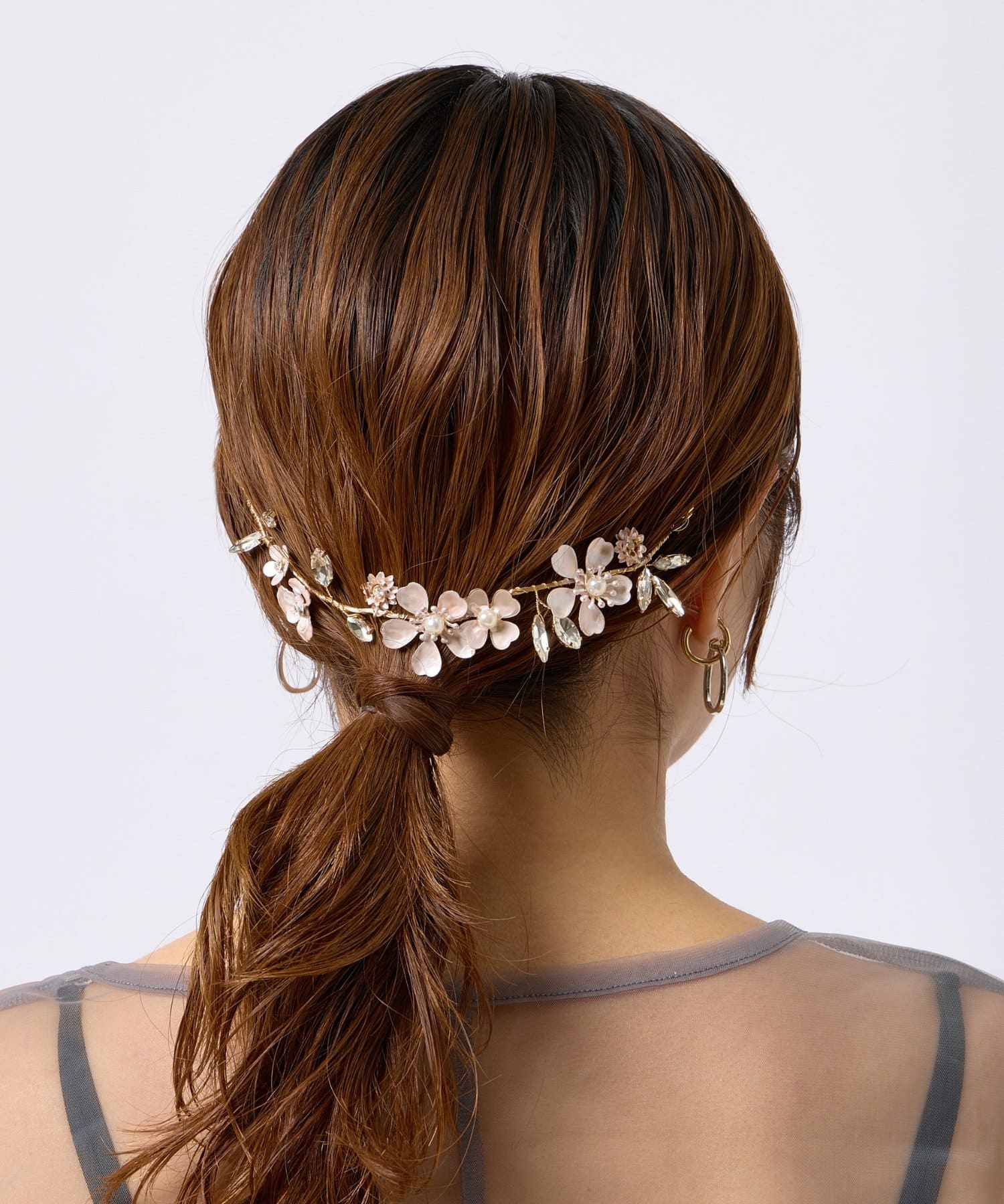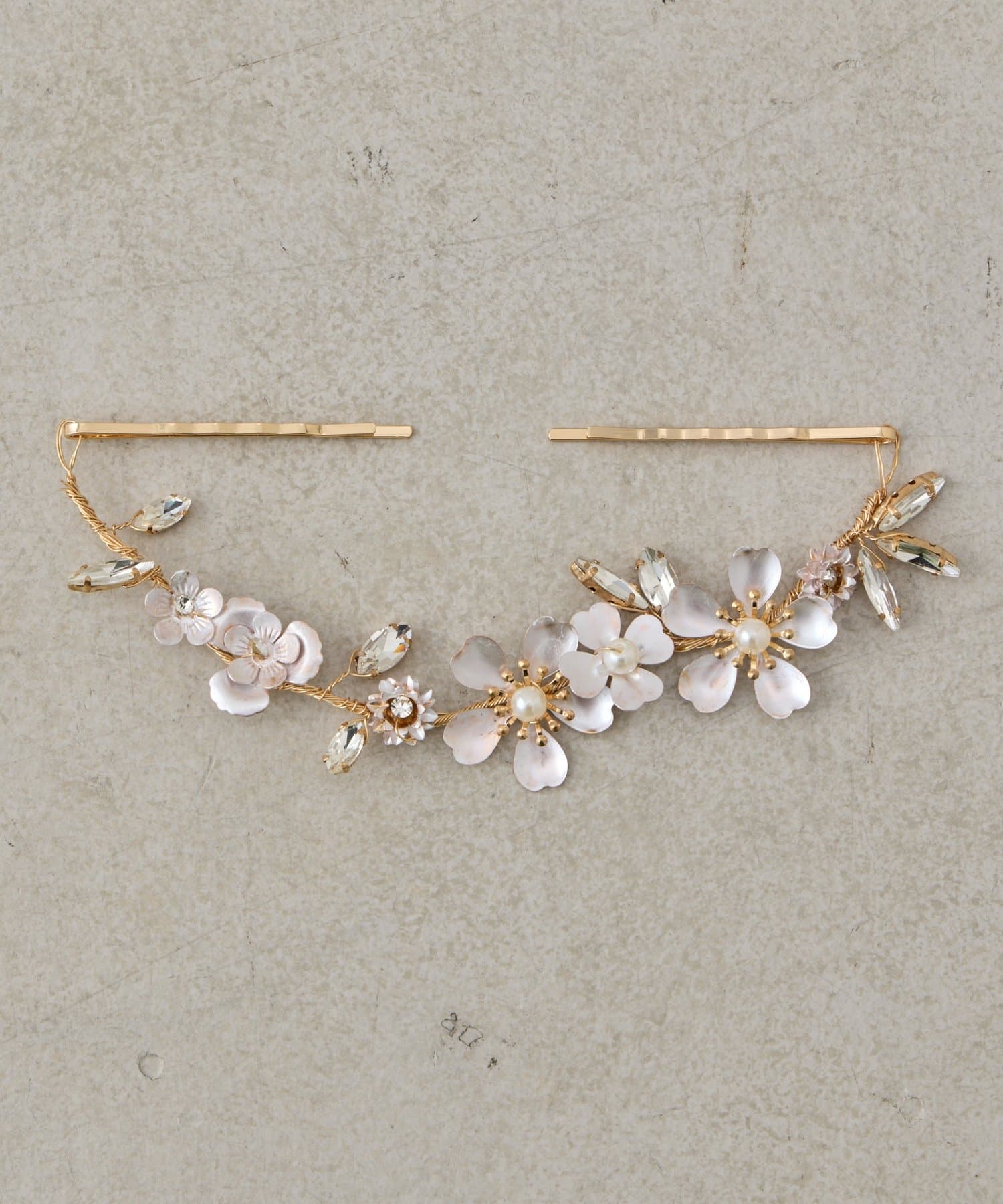フラワーモチーフとパールが可憐な雰囲気に仕上げるアイテム。