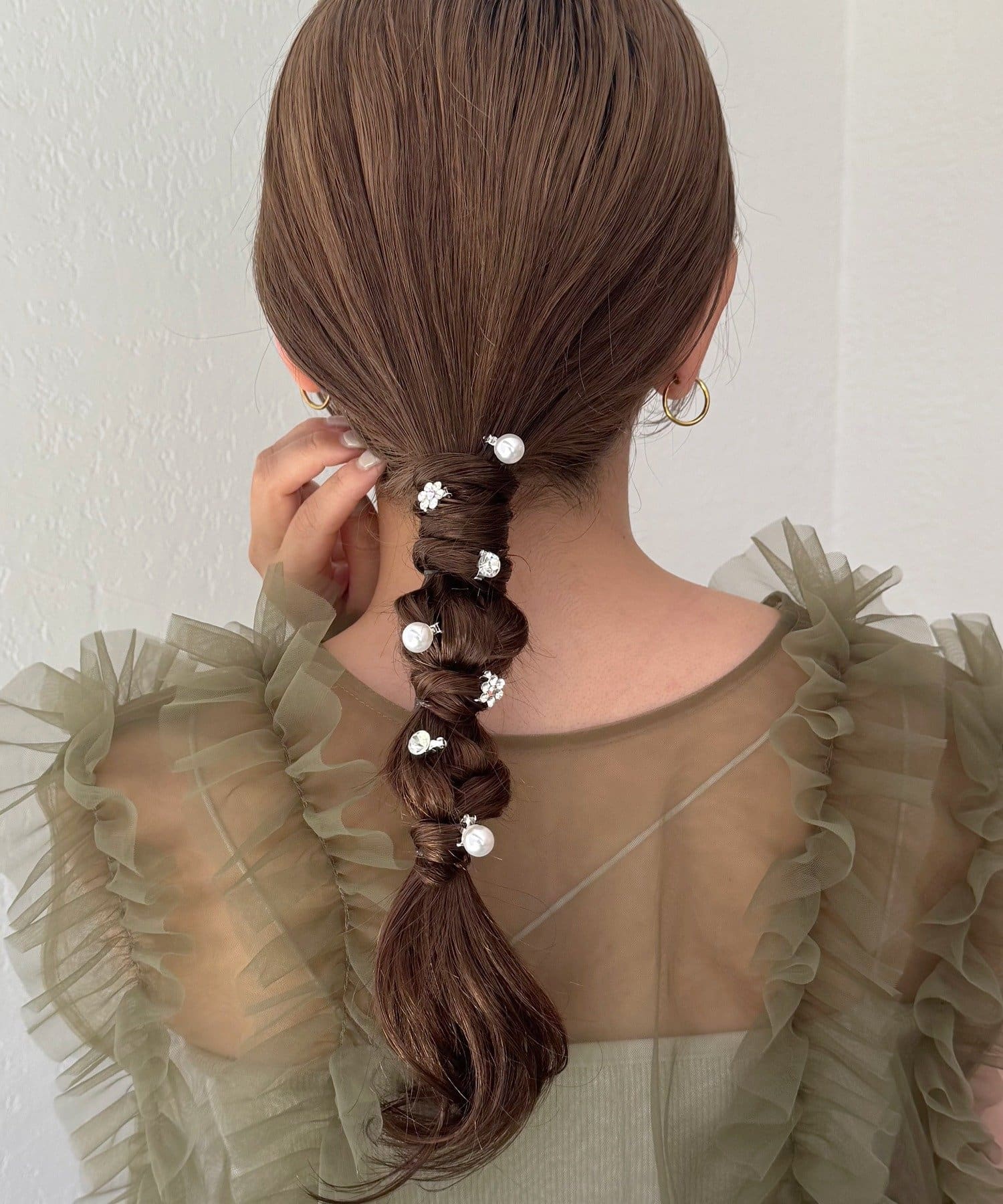 まとめた髪や編み込んだ髪に挟むだけで簡単に使えるアイテム◎