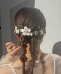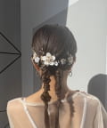 ワイヤー仕様になっているため、アップスタイルに沿わせたり、編みおろしに絡ませたりとアレンジも自由自在。