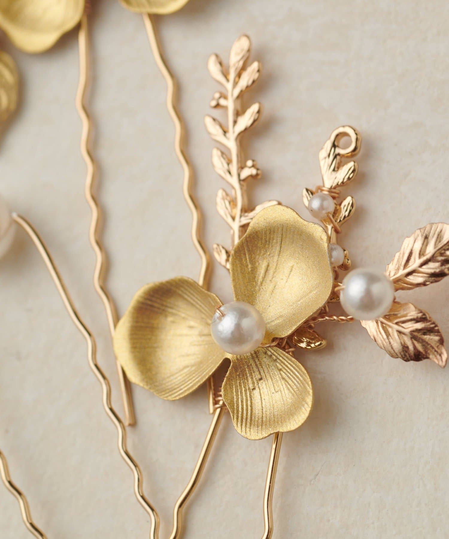アップスタイルにまとめてつければ主役級の華やかさに。サイドや後れ毛にさりげなく散らせば、繊細で可憐な印象を演出できます。