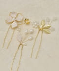 セットで豪華につけるのはもちろん、いくつか散らしてつけたり、お手持ちのヘアアクセサリーと組み合わせたりと、アレンジの幅が広がるのも嬉しいポイント。