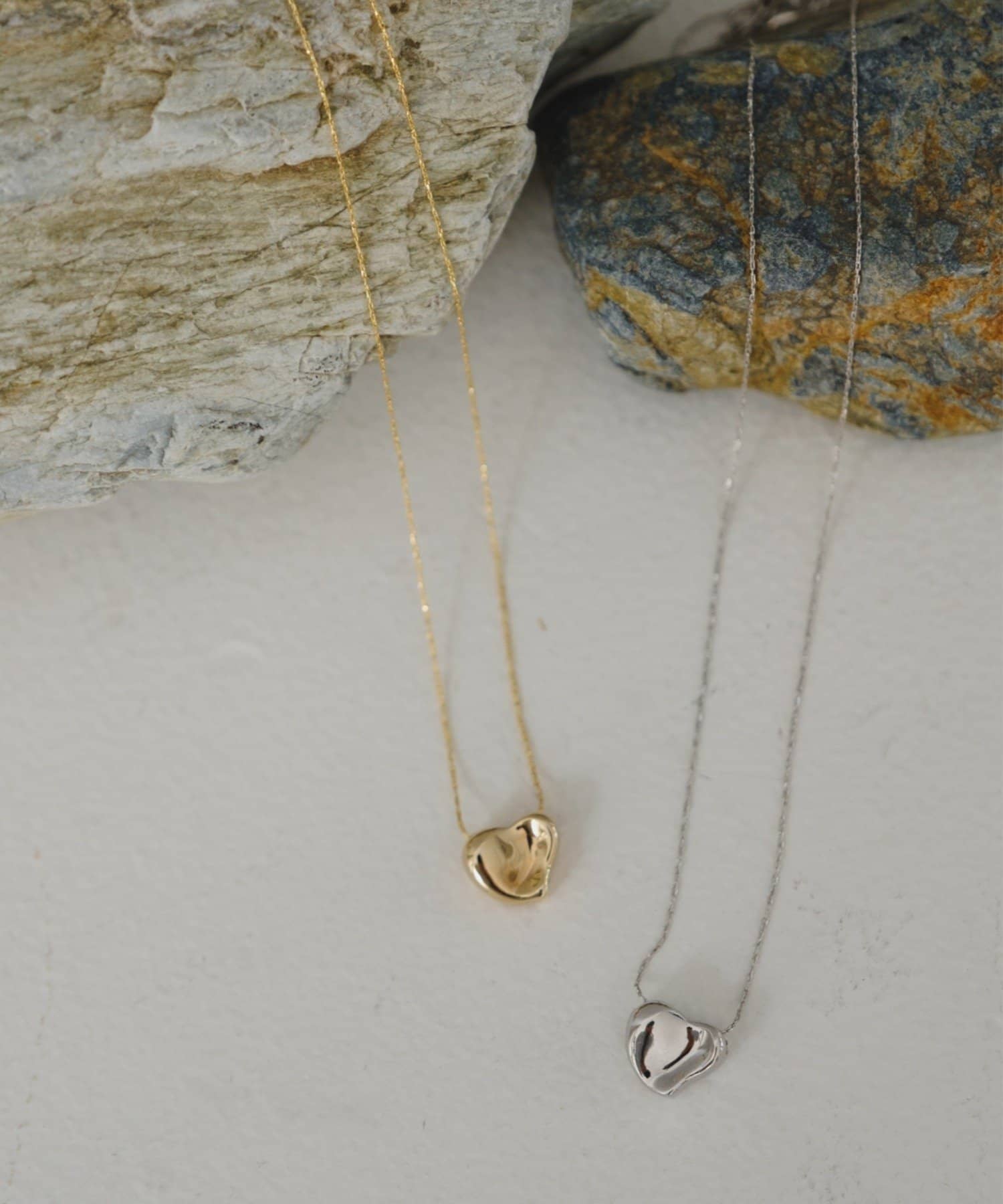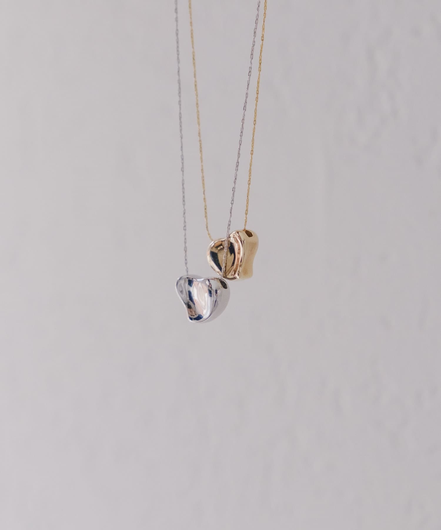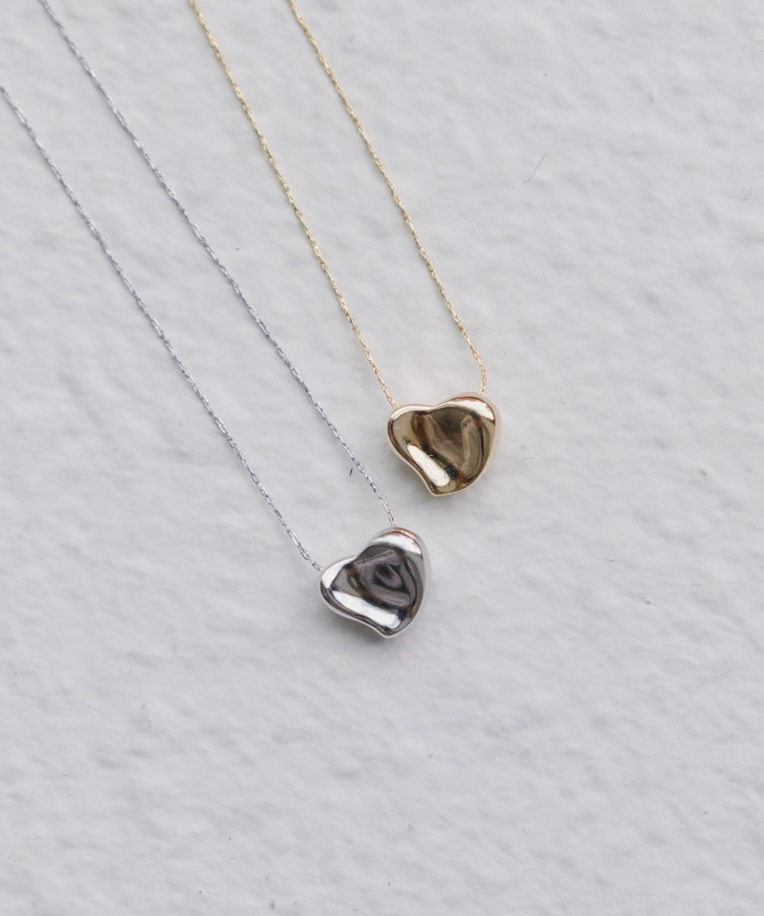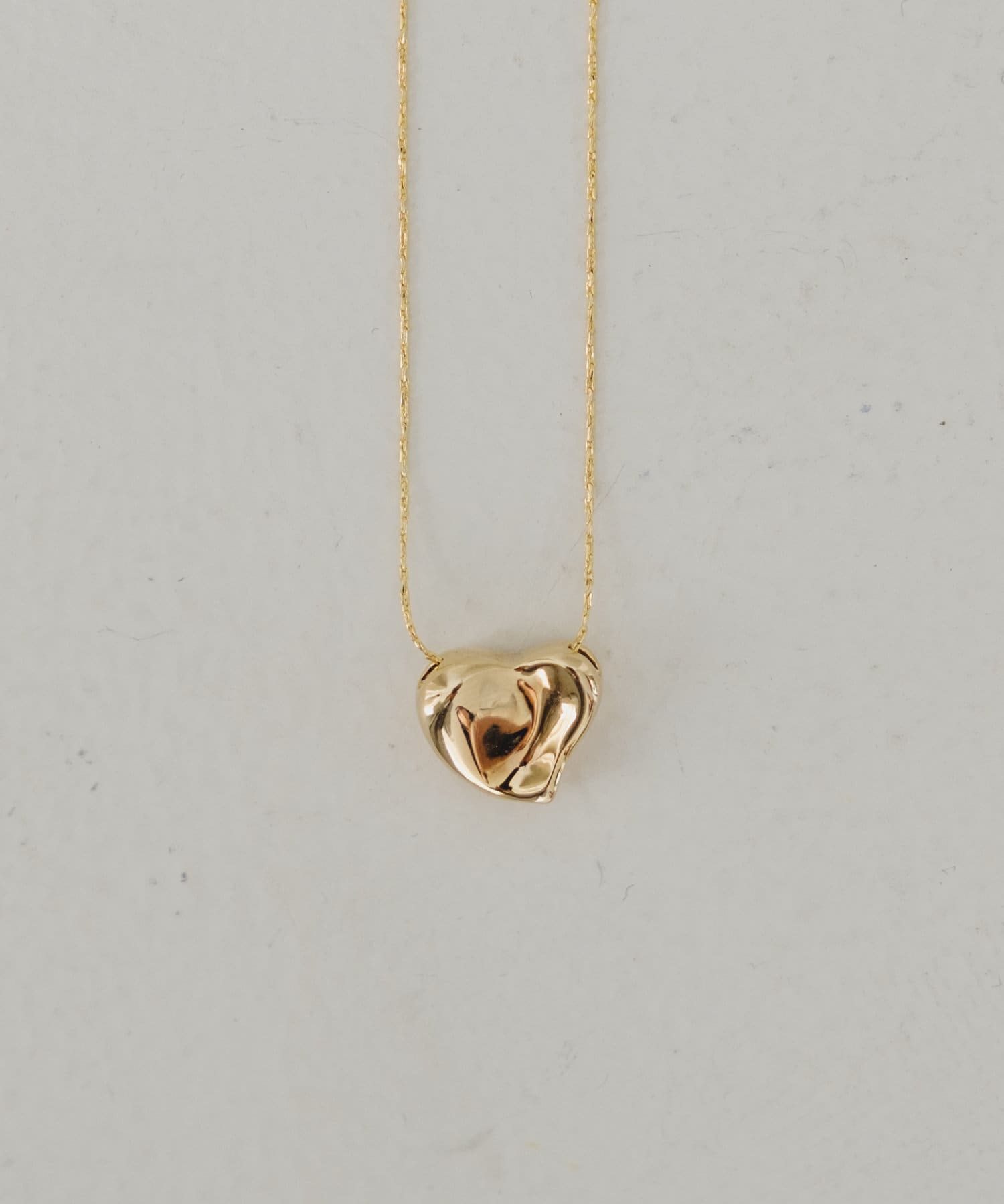 ぷっくりとした艶感あるゆがみハートがポイントのネックレス。