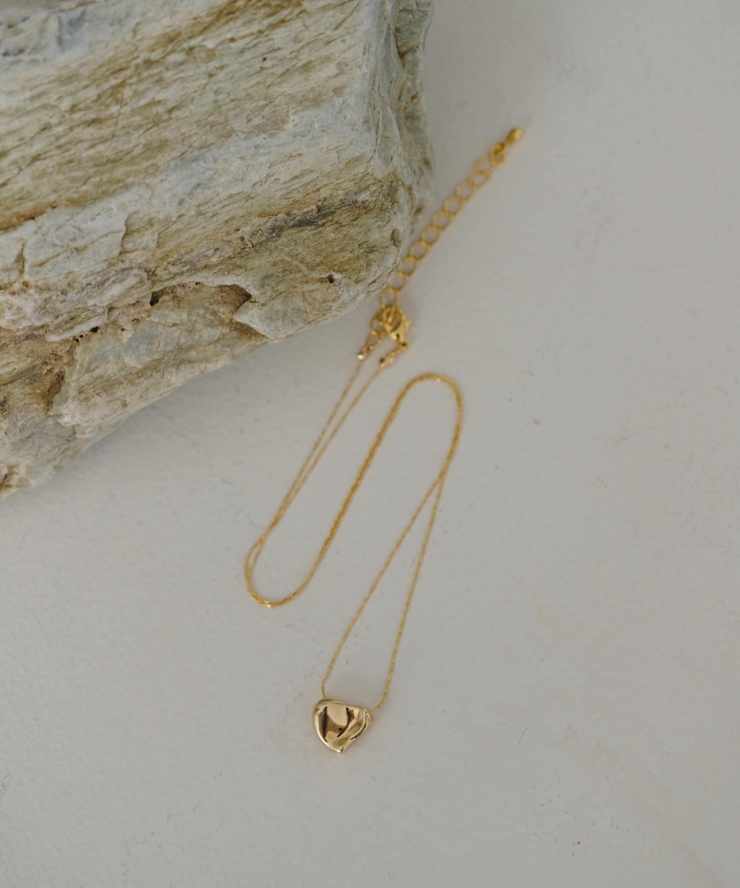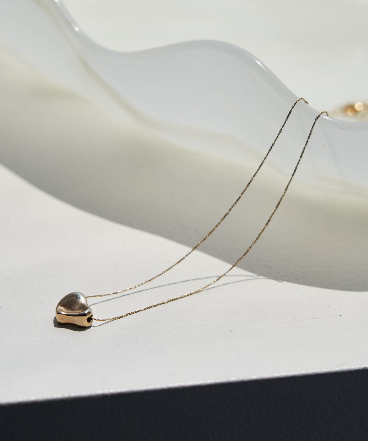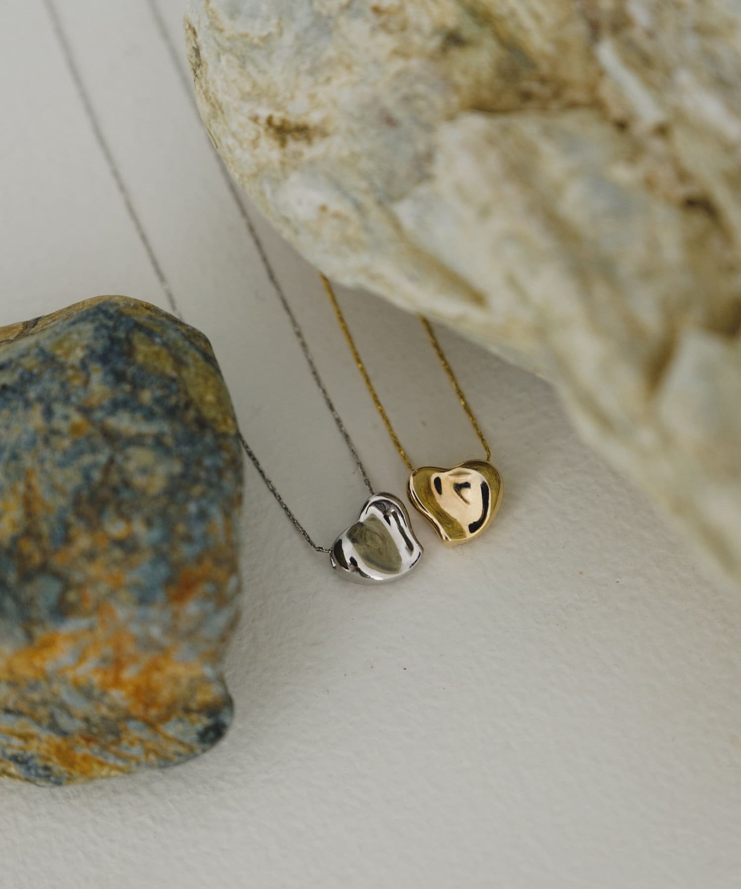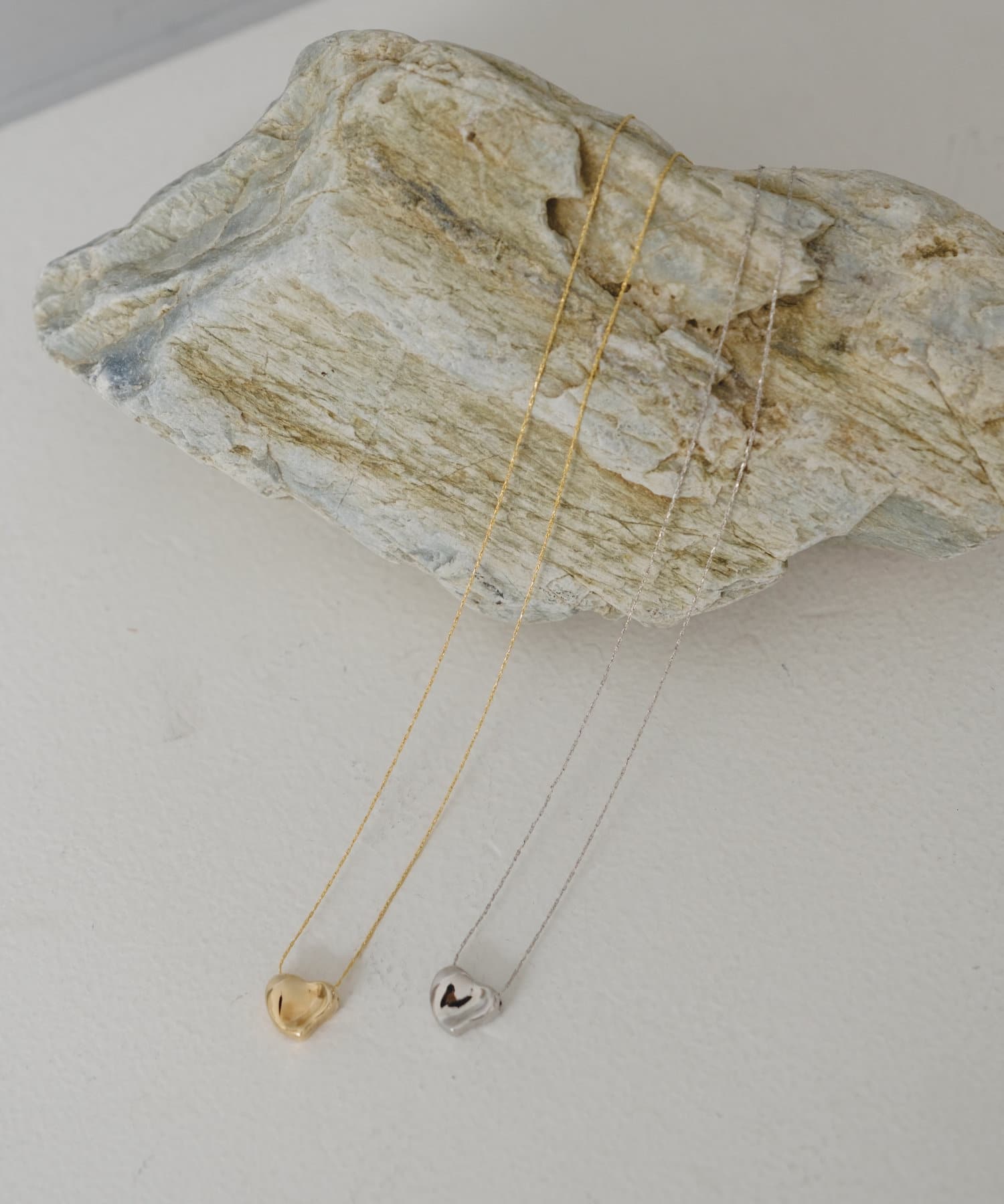 ぷっくりとした艶感あるゆがみハートがポイントのネックレス。