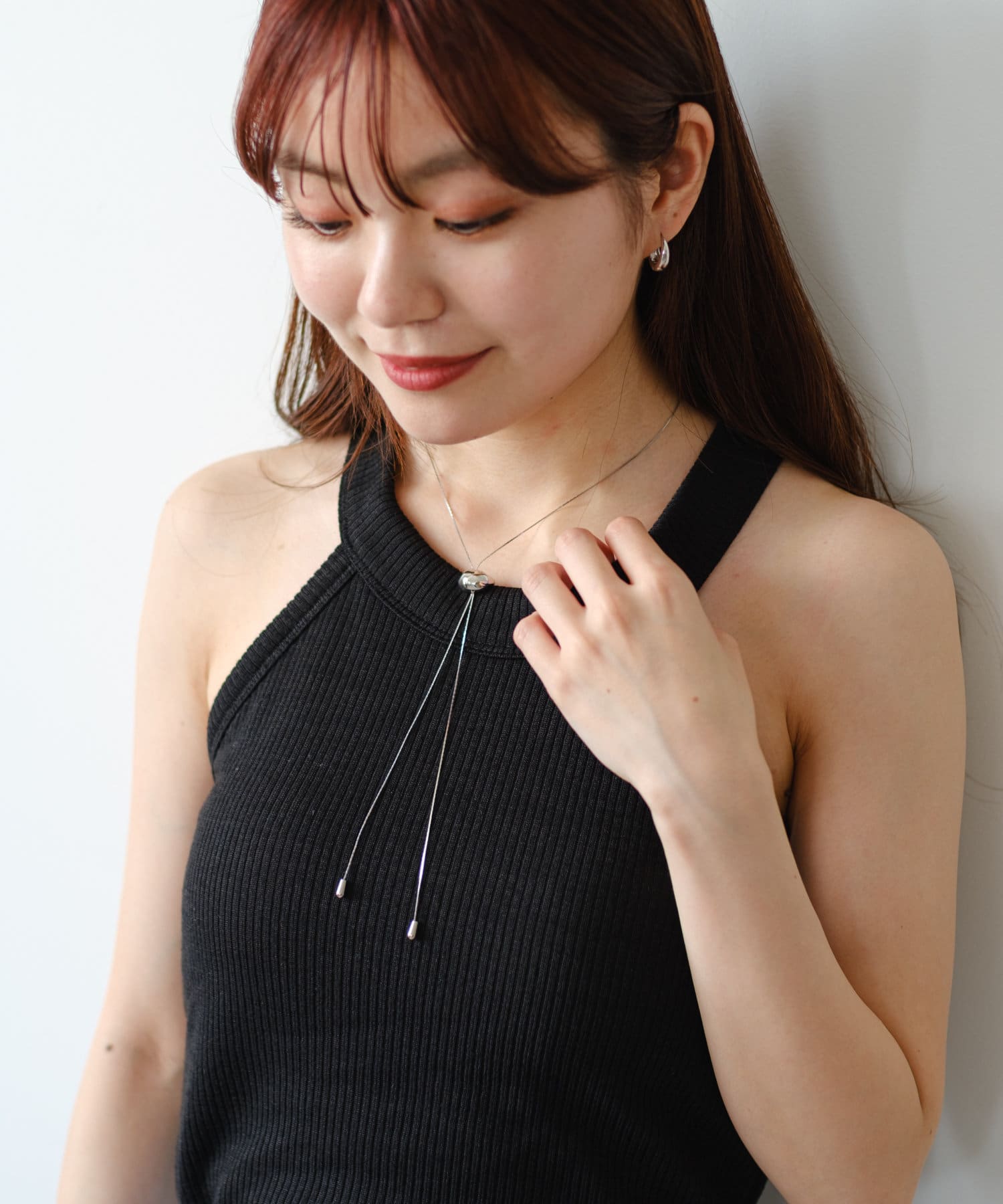 ロングネックレスとしてはもちろん、スライド調節でお好みの長さにアレンジが可能です。