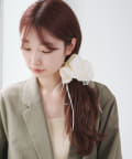 ボリューム感たっぷりで、シンプルなまとめ髪を華やかな印象に。