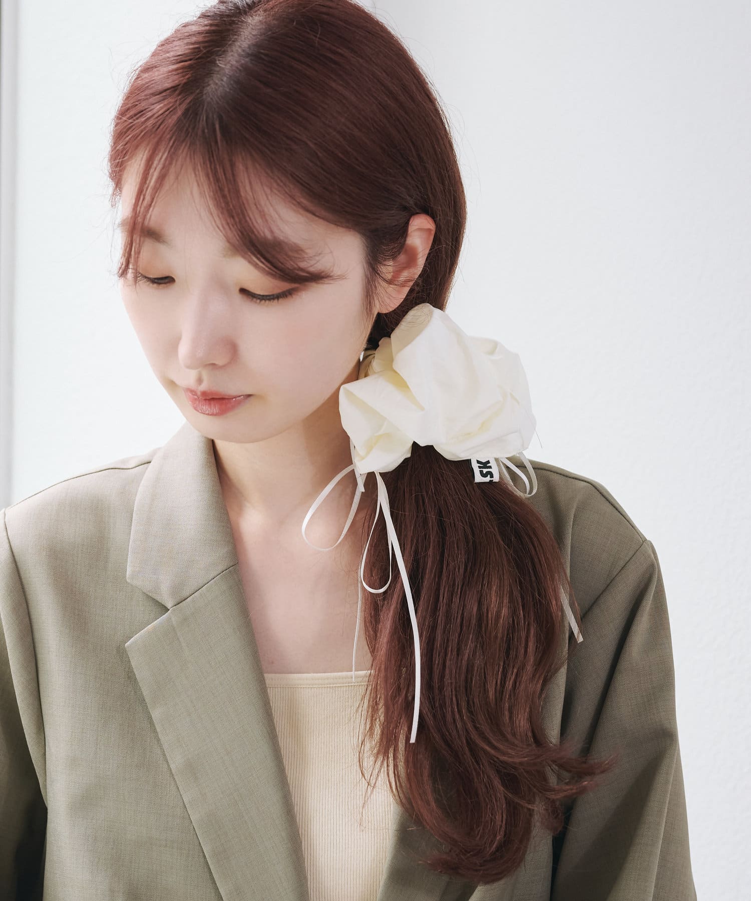 軽やかなリボンが、甘くなりすぎず、大人っぽいバランスが叶います。