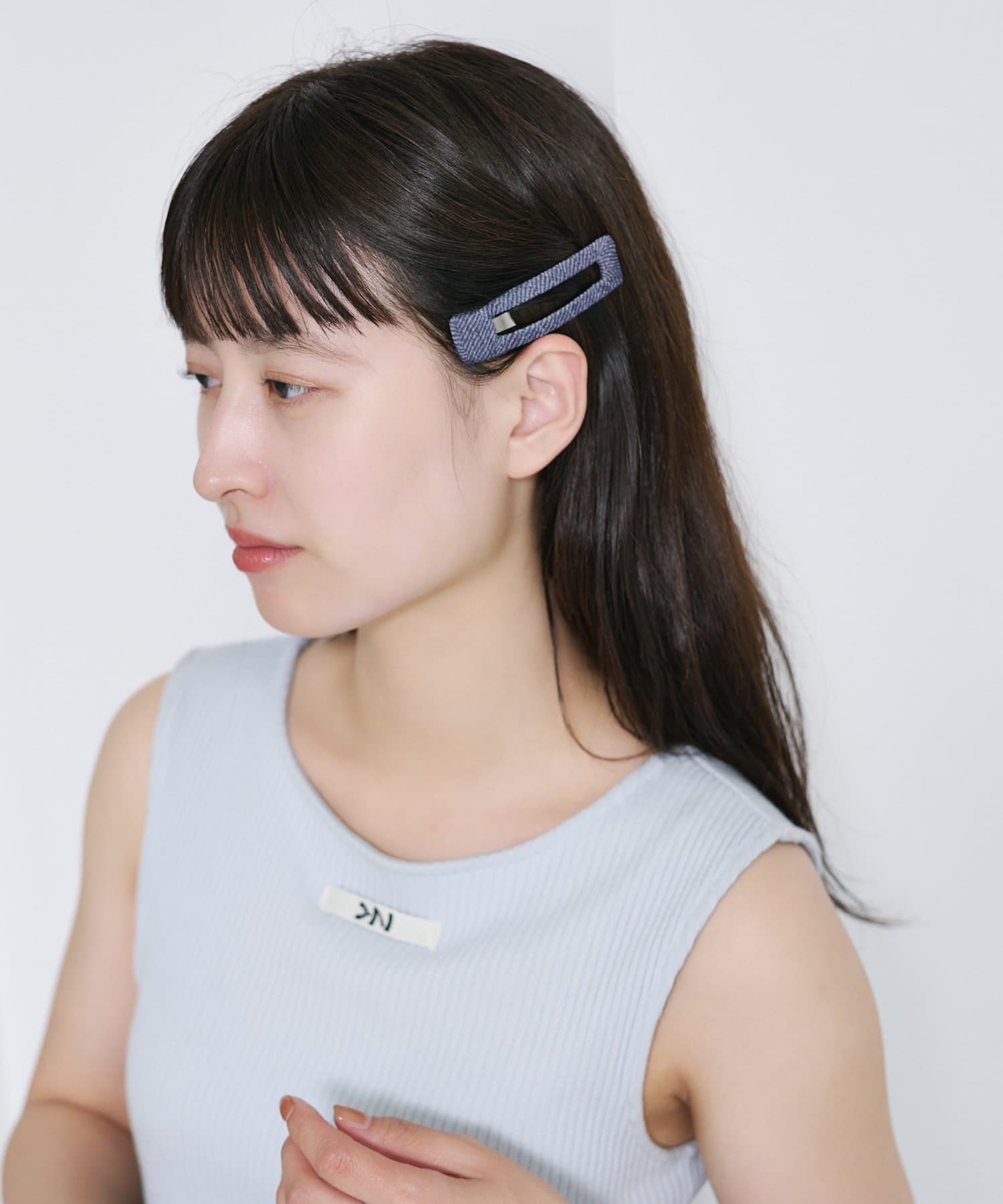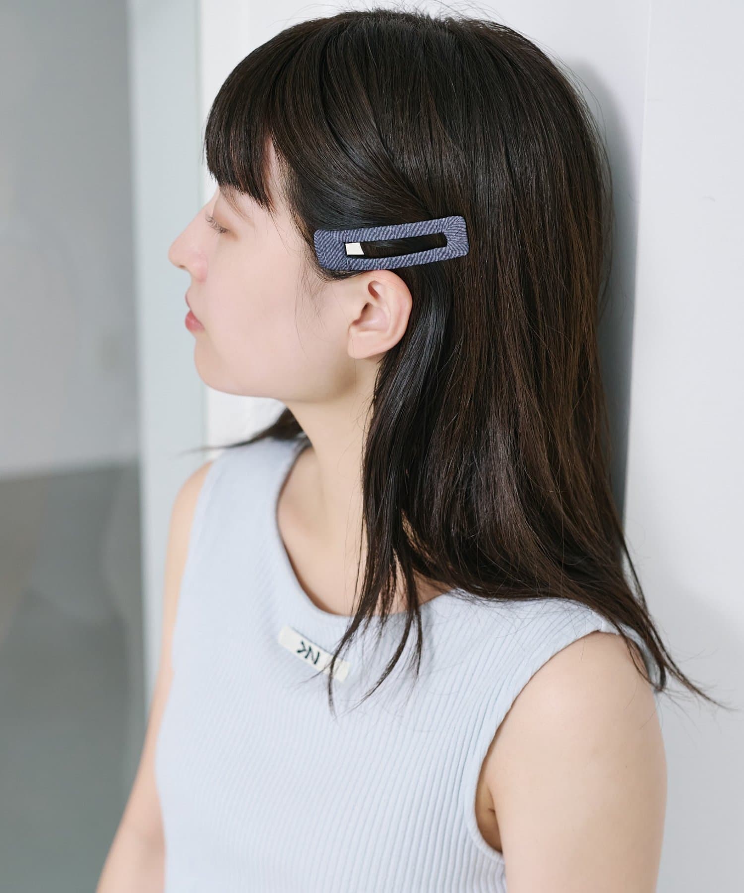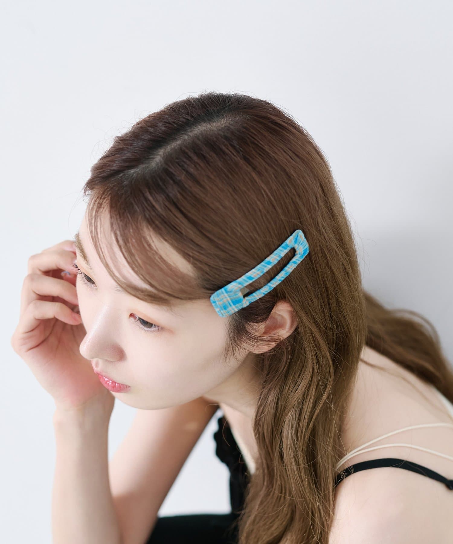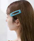 ポップなカラーと大ぶりなスクエア型デザインが、シンプルなヘアスタイルにアクセントをプラスしてくれます。
