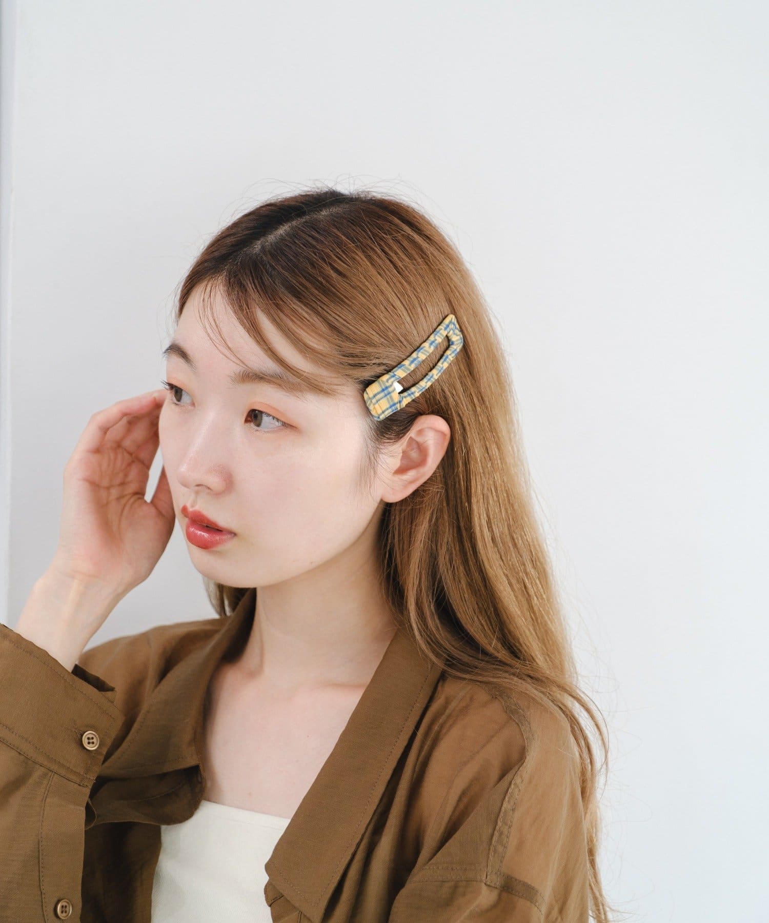 パッと目を惹く、チェック柄で楽しむアクセントヘアピン。