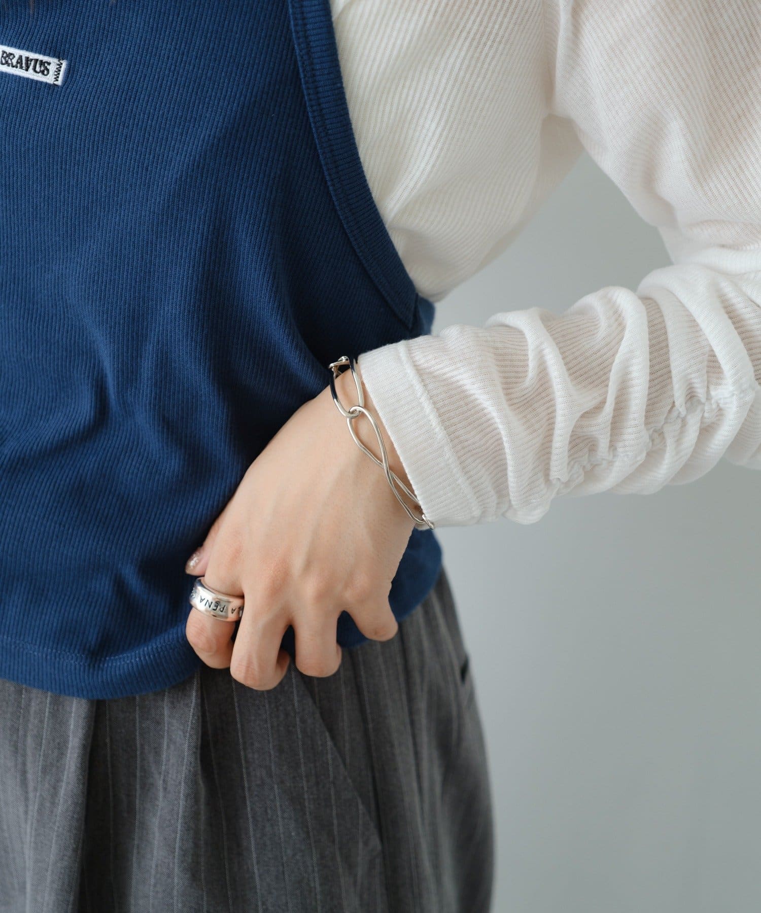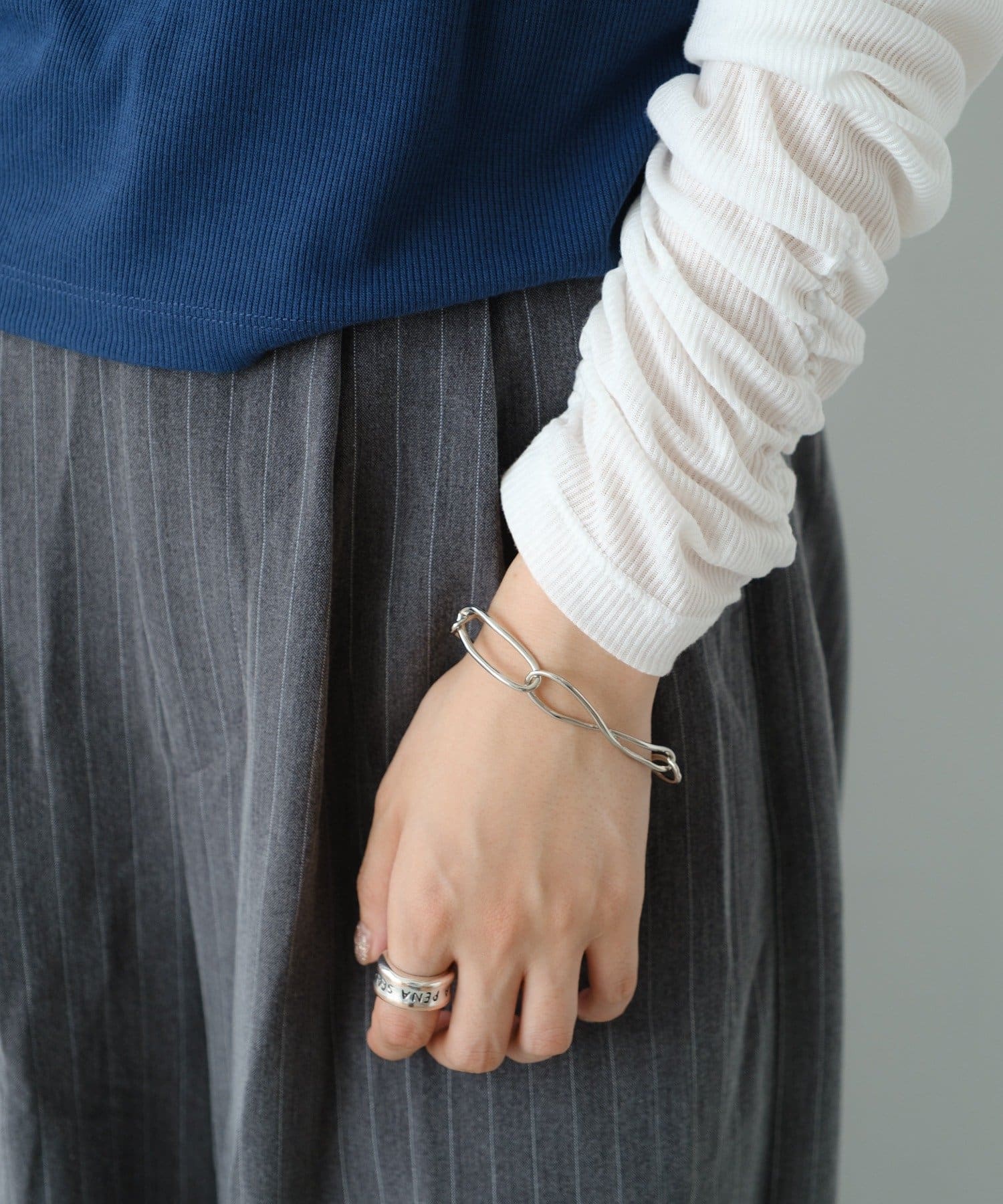 不揃いなフォルムが魅力のランダムチェーンブレス。程よいボリューム感と洗練されたシルバーの輝きが、手元に抜け感と存在感をプラスします。