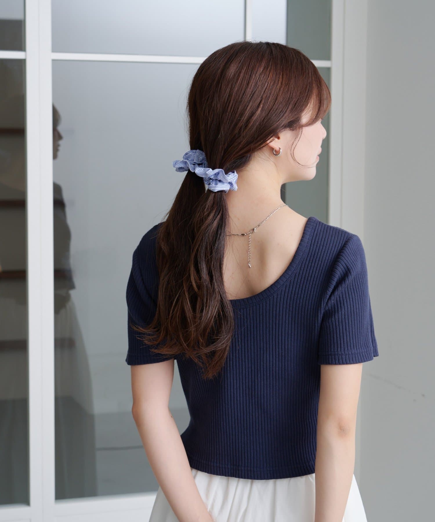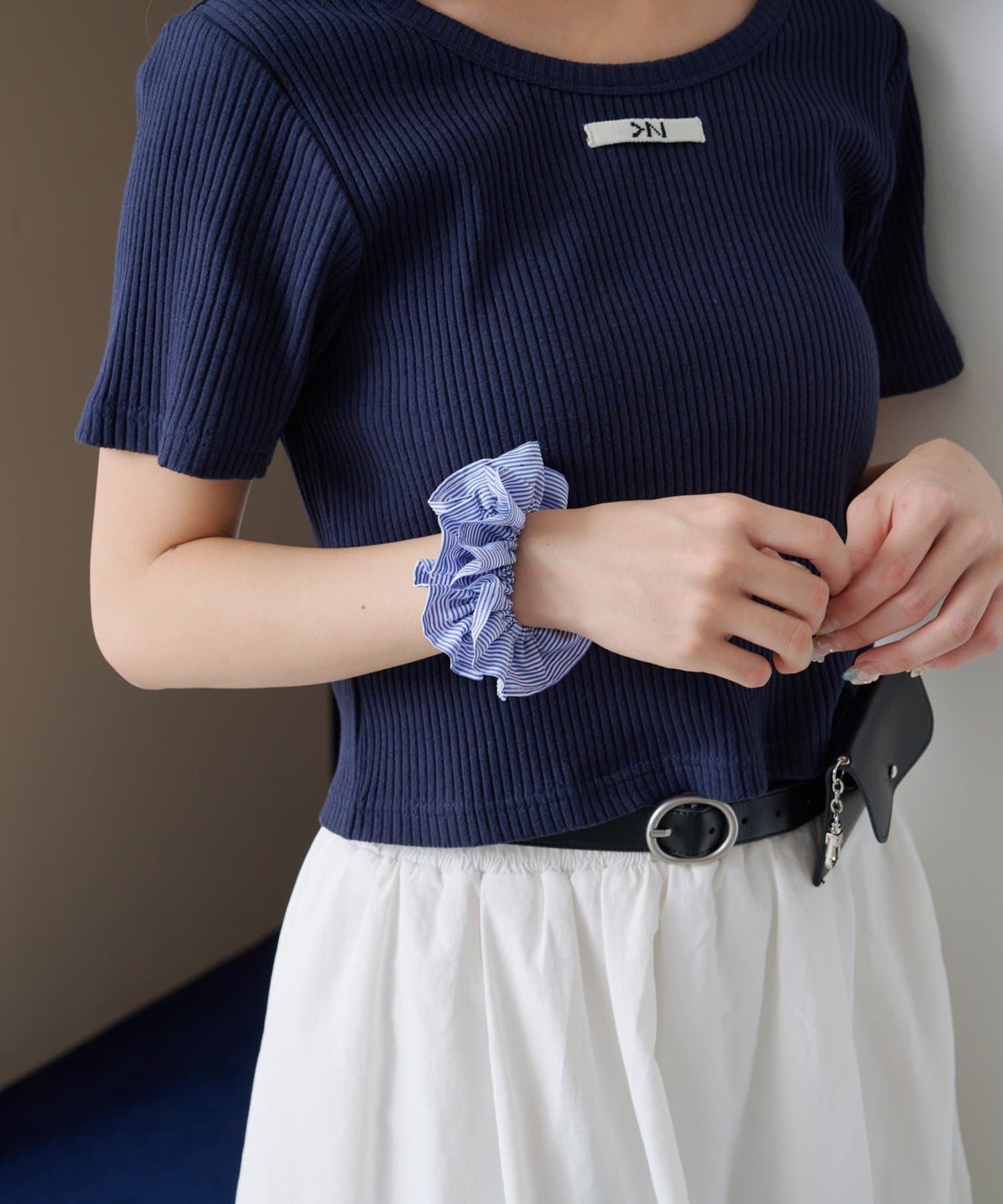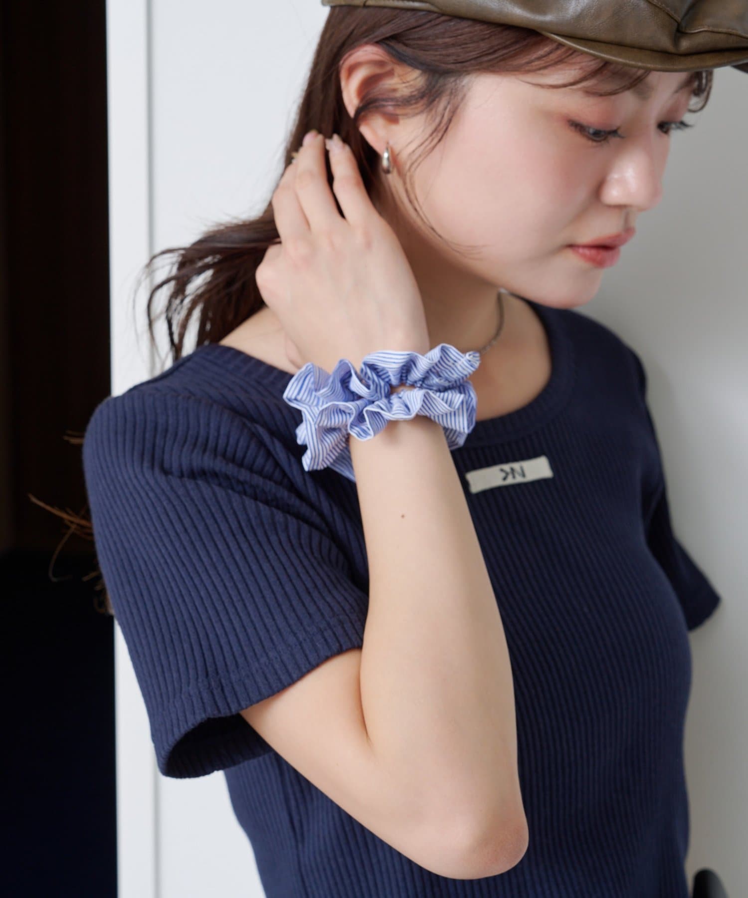 爽やかなストライプ柄がポイントのミニシュシュ。