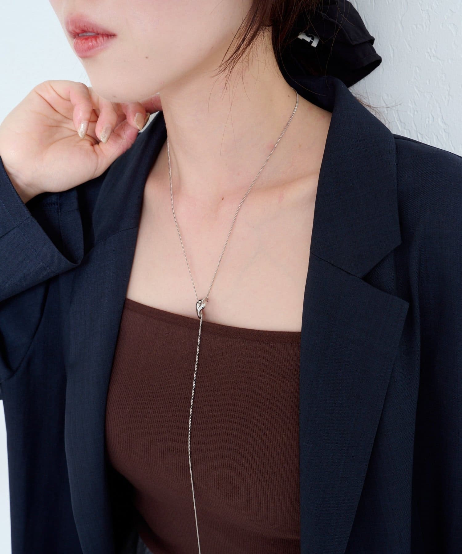 ミニマルながら存在感のあるリングモチーフが目を引くタイネックレス。